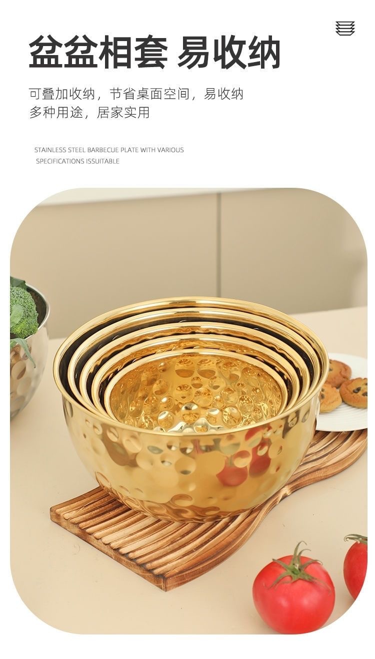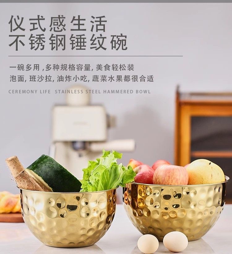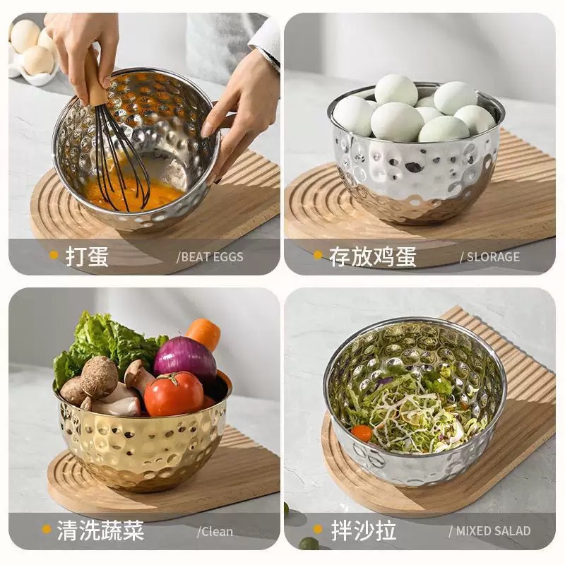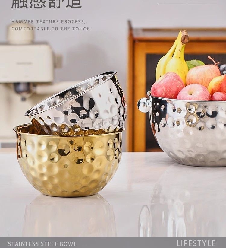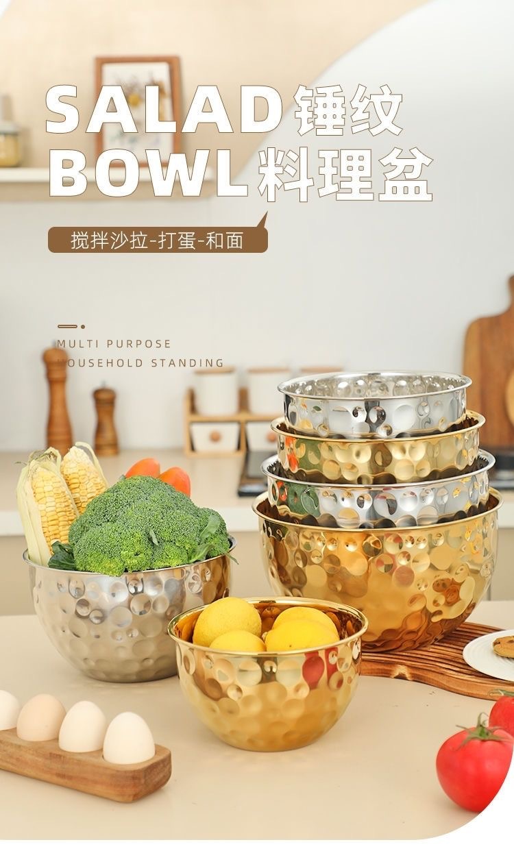跨境不锈钢锤纹沙拉盆加深烘焙和面打蛋盆酒吧ktv水果盆碗料理盆