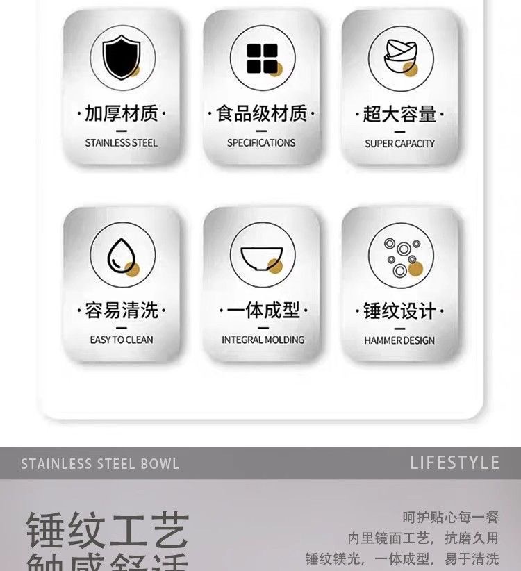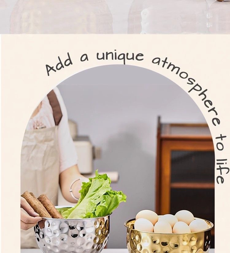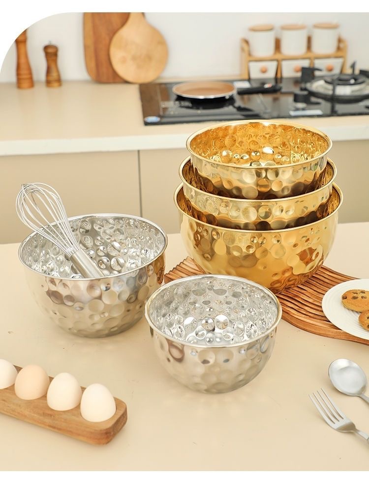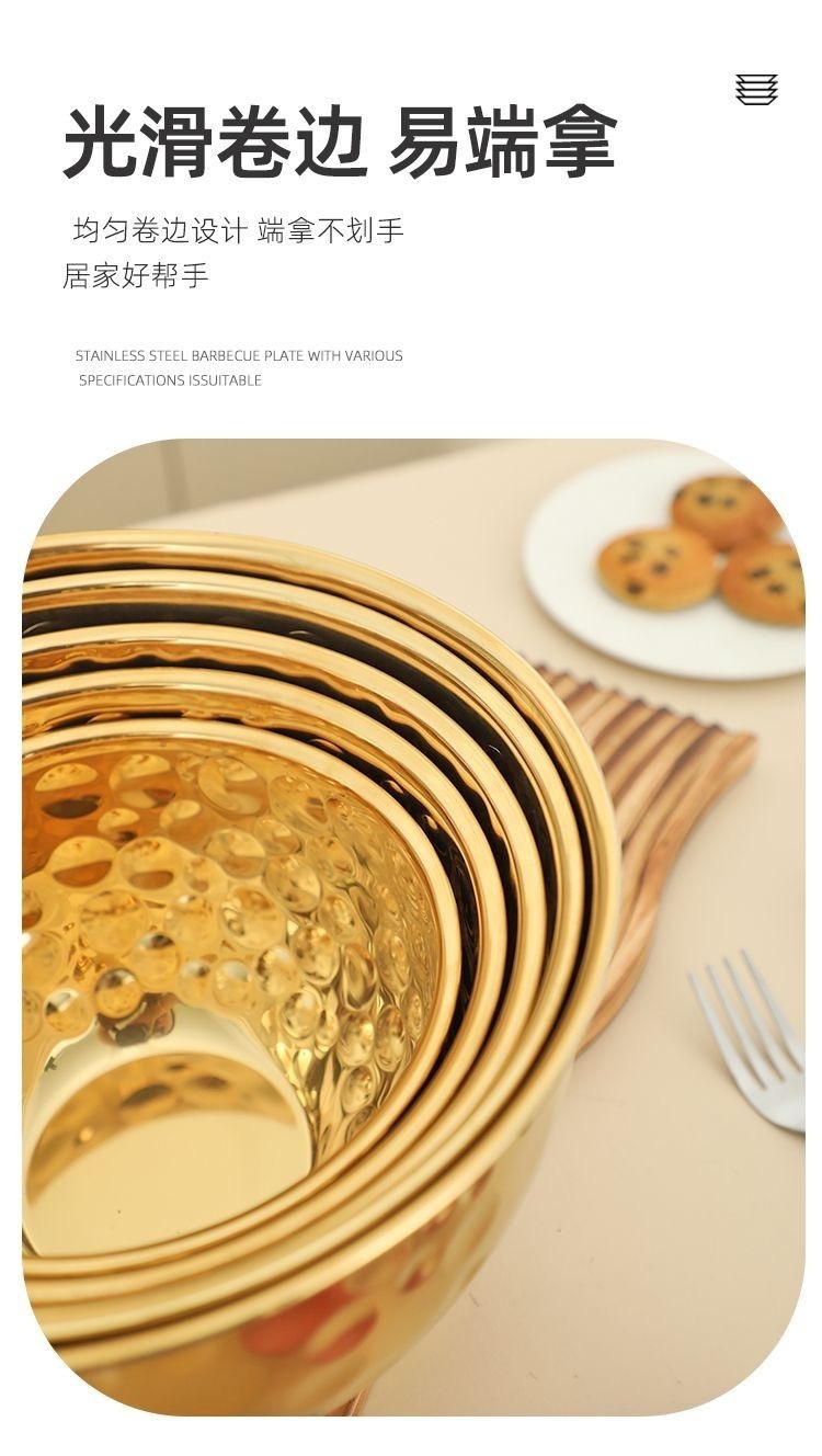 跨境不锈钢锤纹沙拉盆加深烘焙和面打蛋盆酒吧ktv水果盆碗料理盆