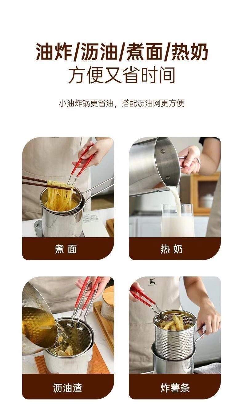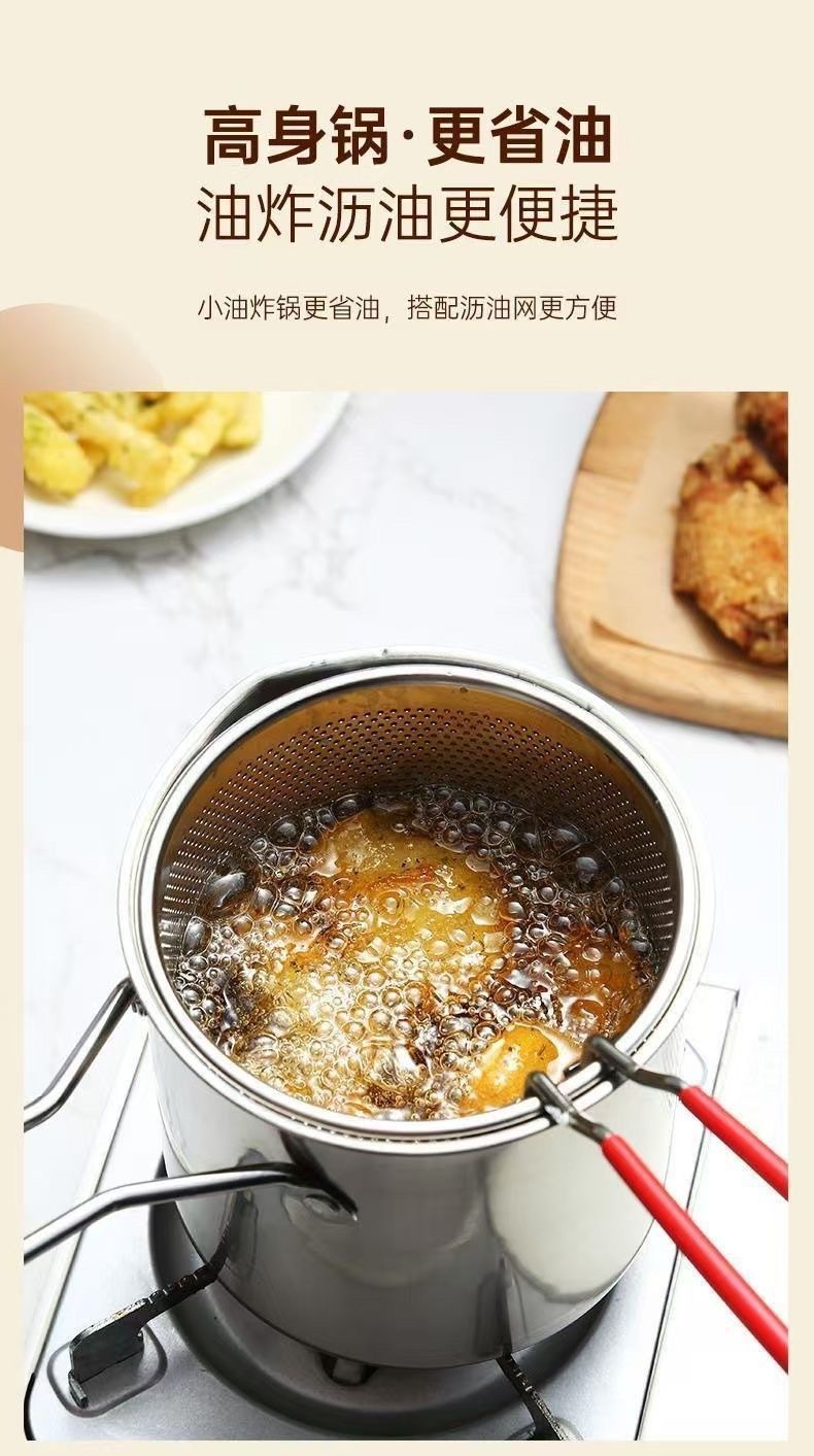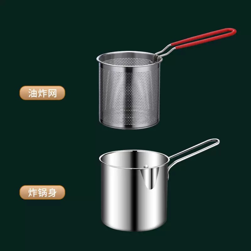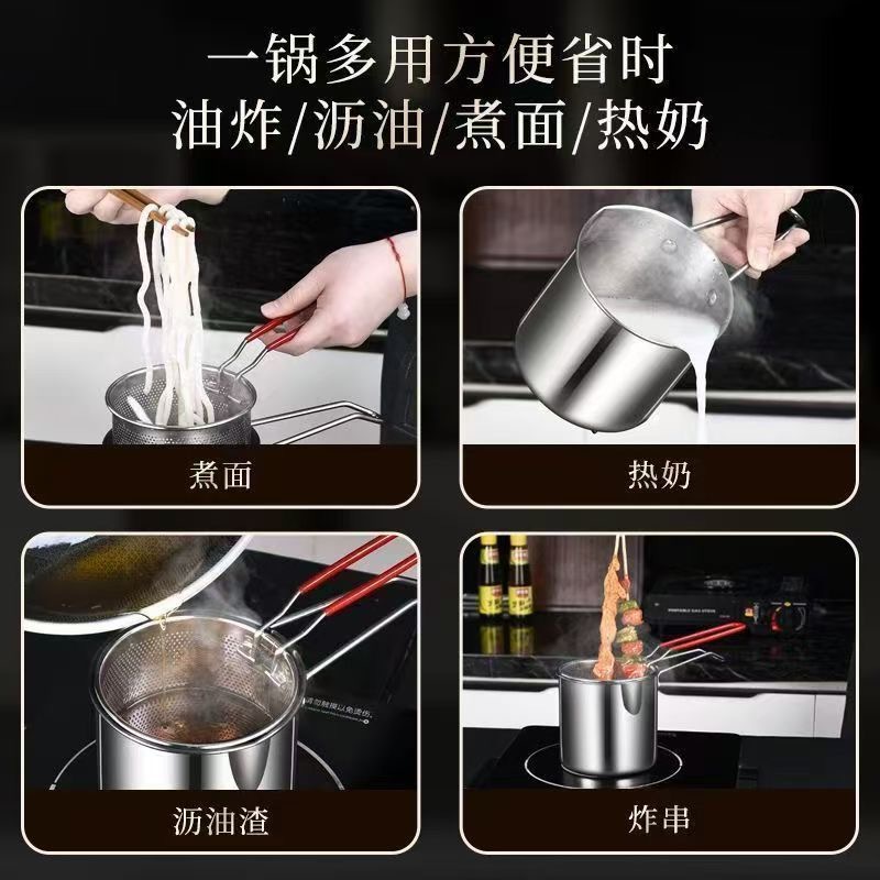 跨境油炸锅家用商用不锈钢迷你小炸锅小奶锅带滤网单柄省油小油锅