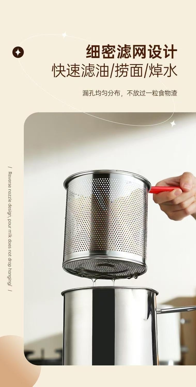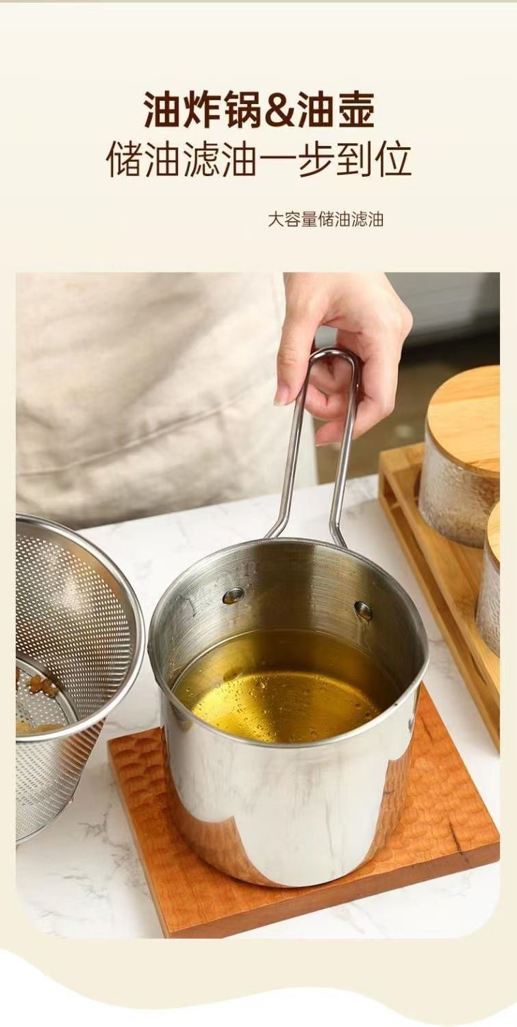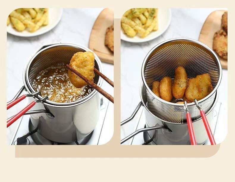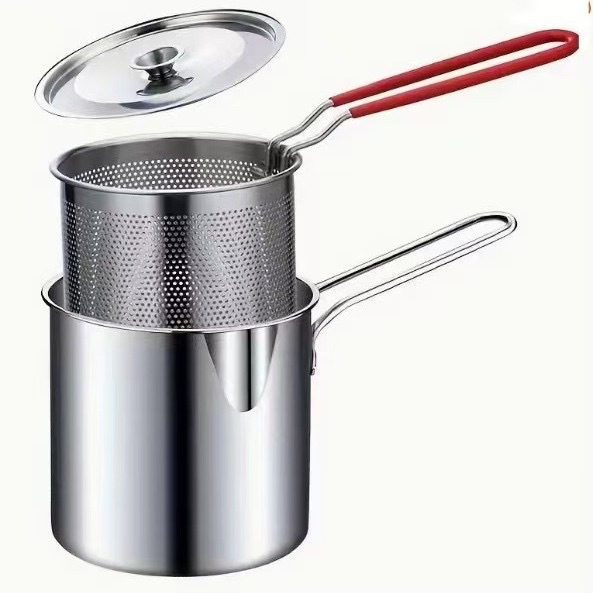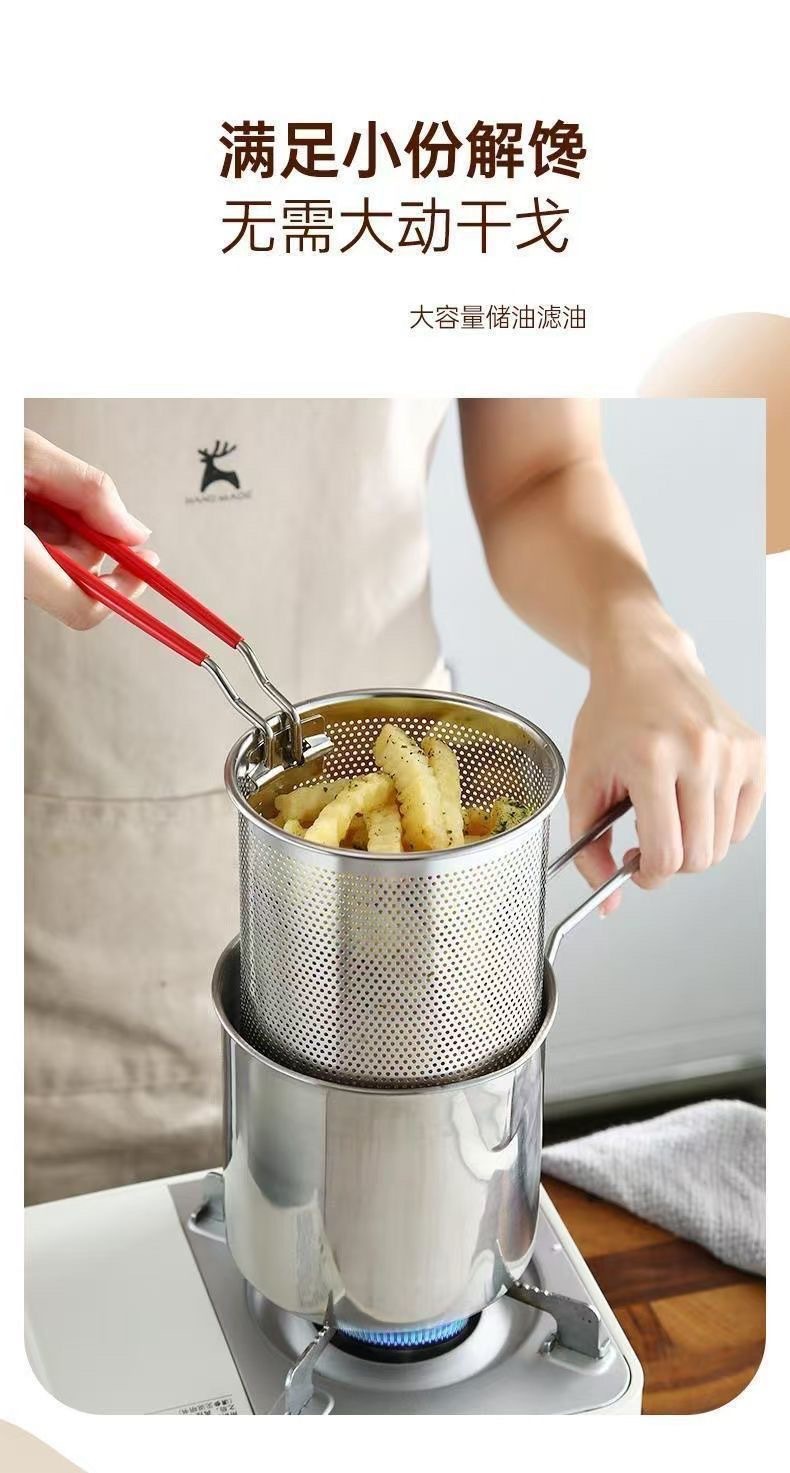 跨境油炸锅家用商用不锈钢迷你小炸锅小奶锅带滤网单柄省油小油锅