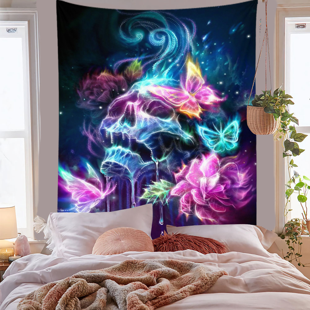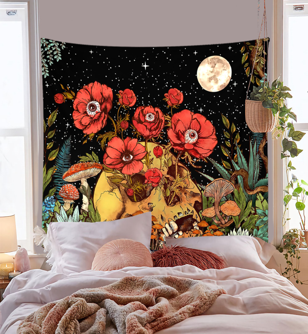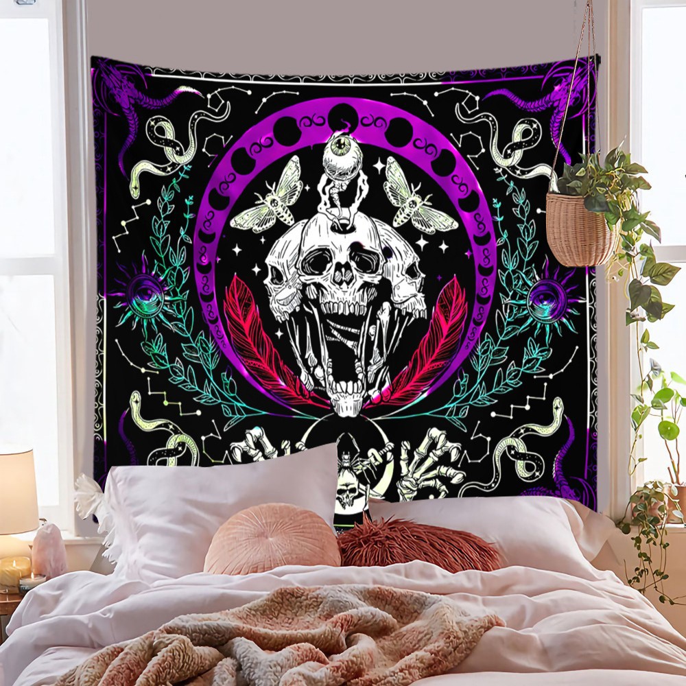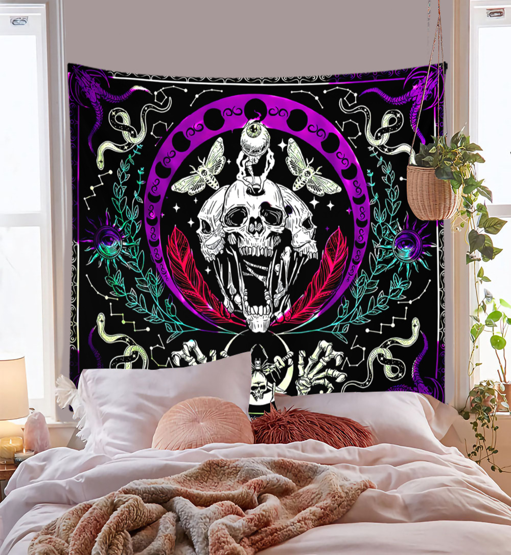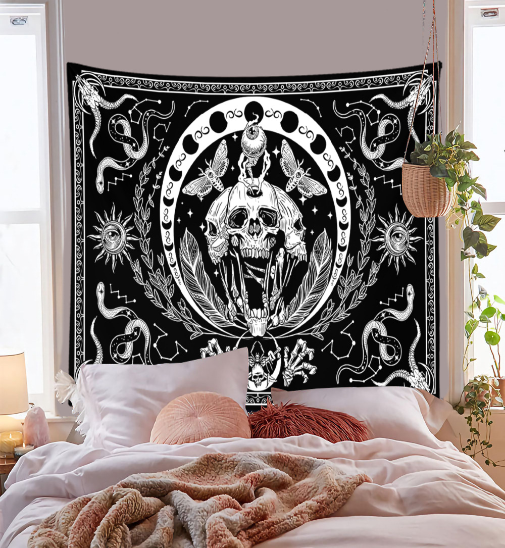 亚马逊跨境家居创意波西米亚风挂布民宿装饰背景布神秘骷髅头挂毯