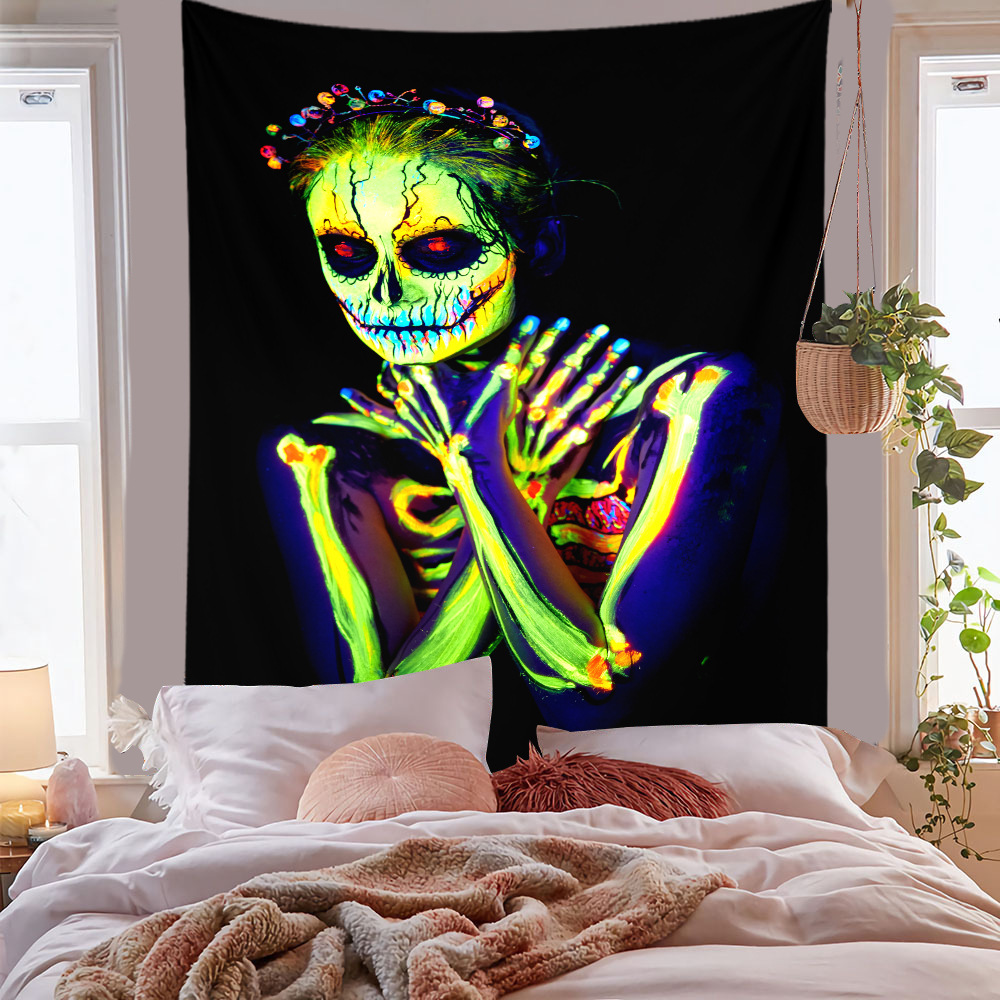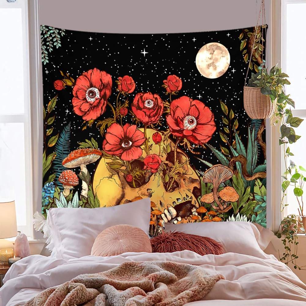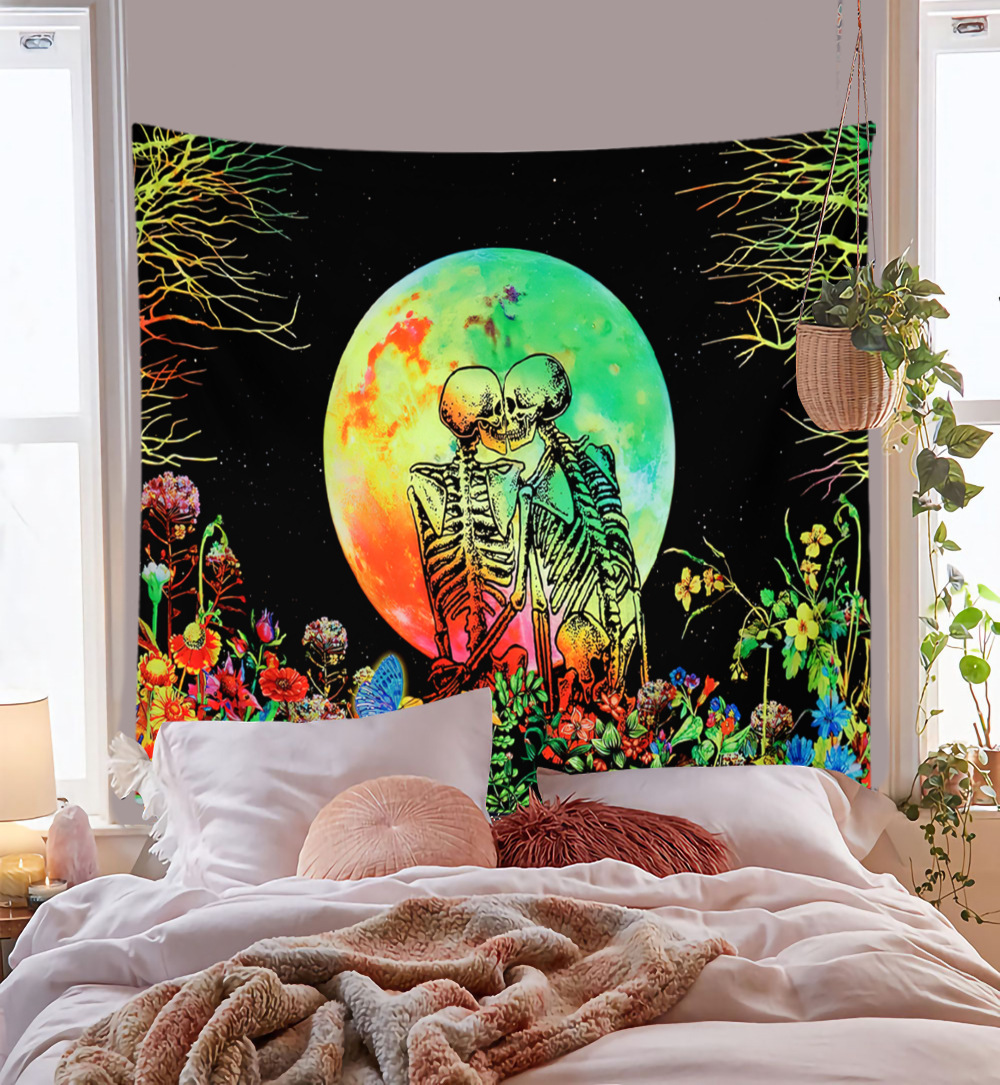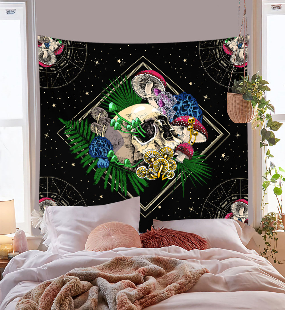 亚马逊跨境家居创意波西米亚风挂布民宿装饰背景布神秘骷髅头挂毯