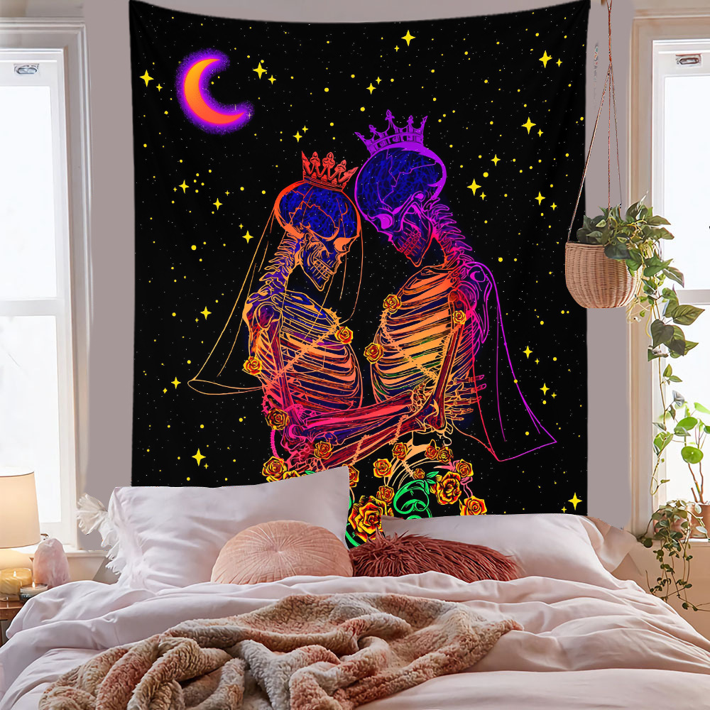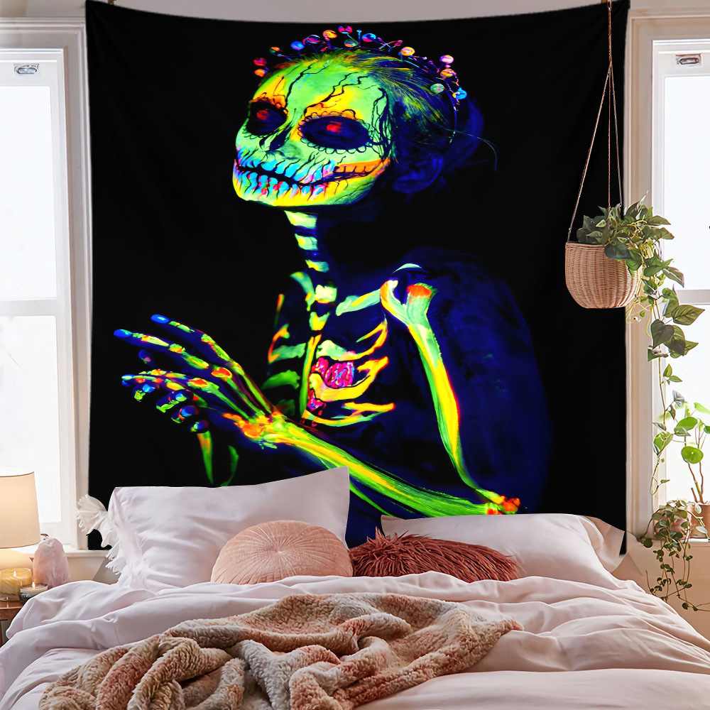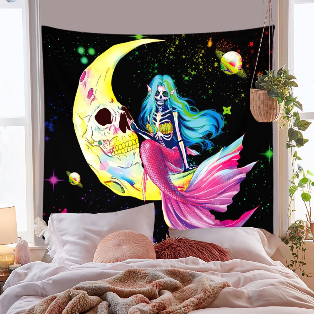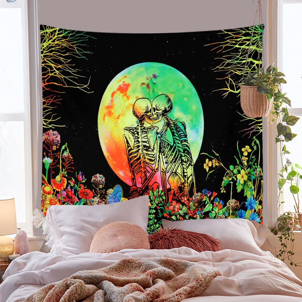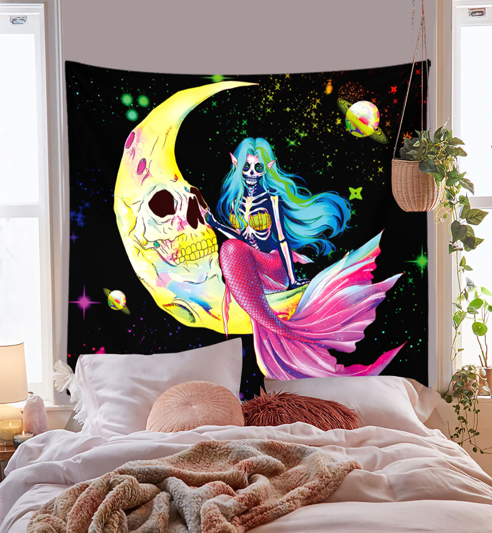 亚马逊跨境家居创意波西米亚风挂布民宿装饰背景布神秘骷髅头挂毯