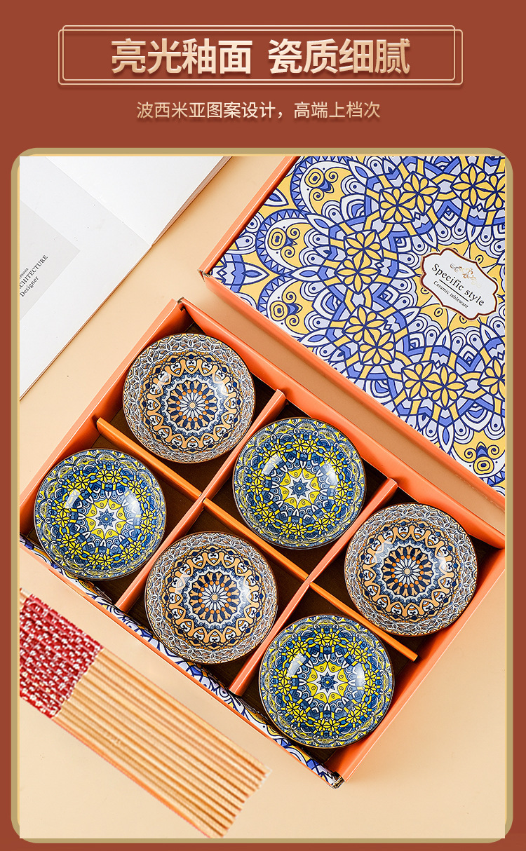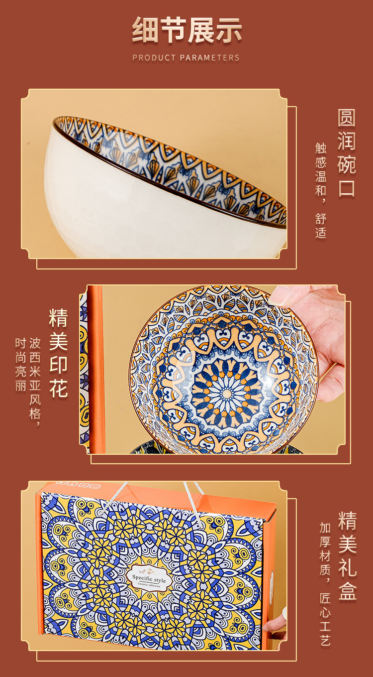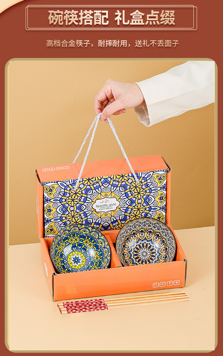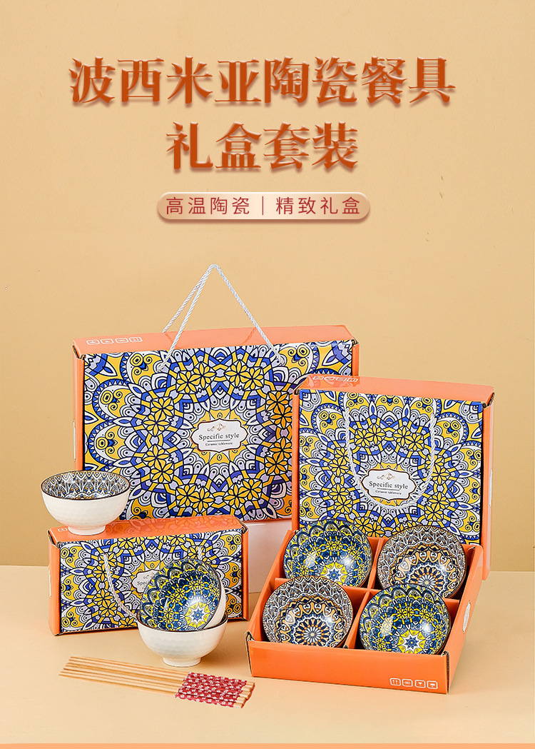 跨境外贸波西米亚陶瓷餐具碗筷套装开业伴手礼礼品碗套碗碗具套装