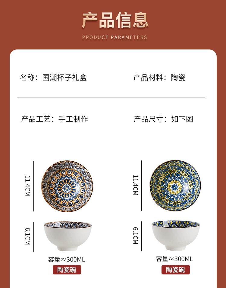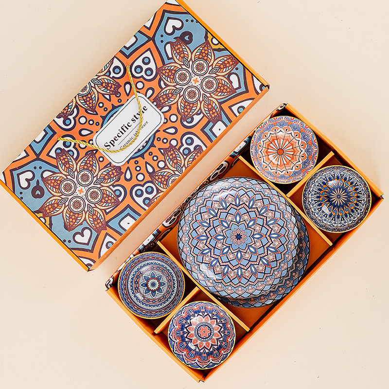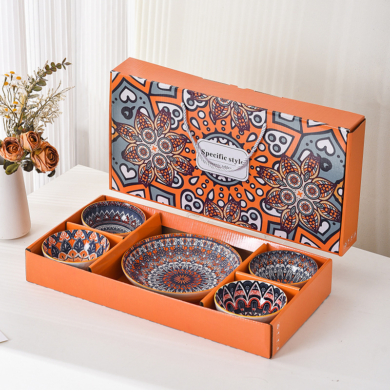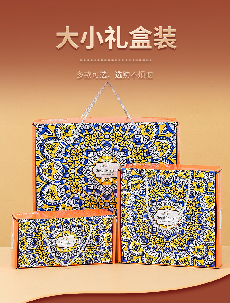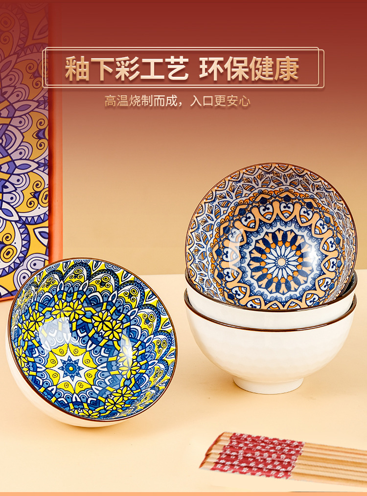 跨境外贸波西米亚陶瓷餐具碗筷套装开业伴手礼礼品碗套碗碗具套装