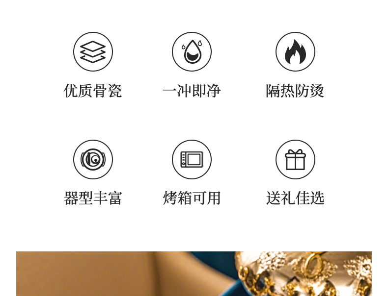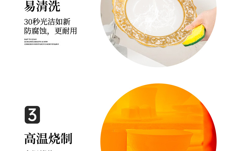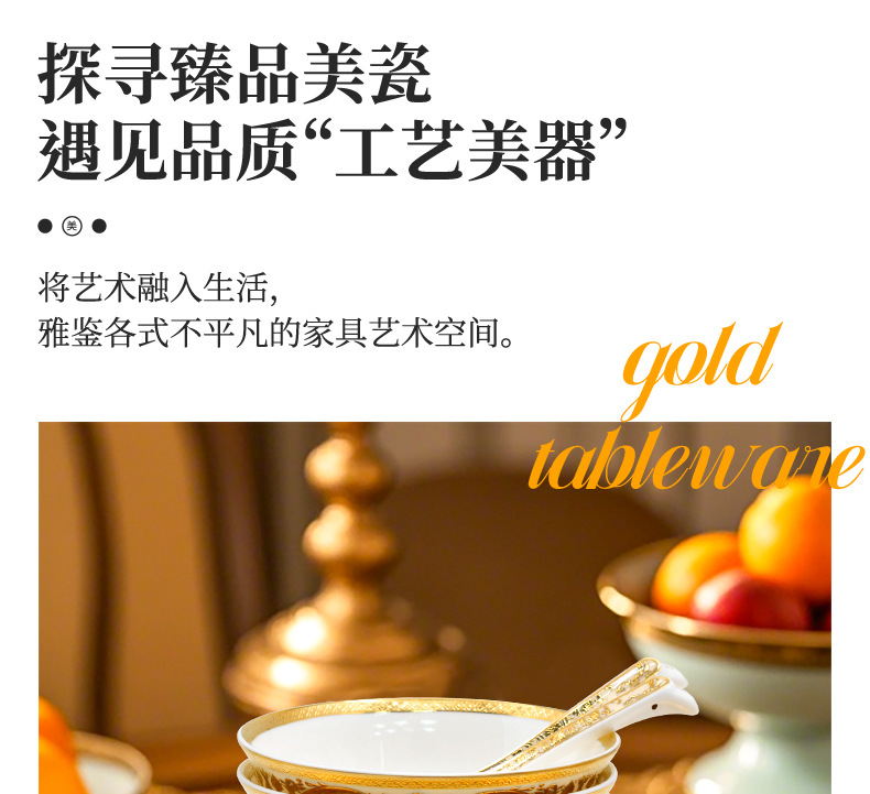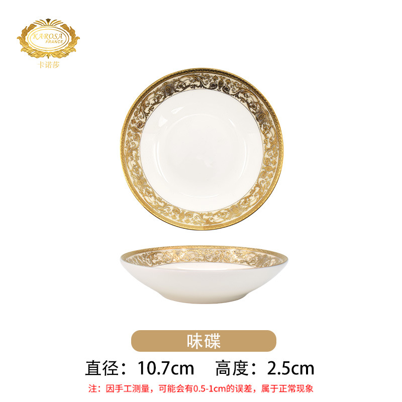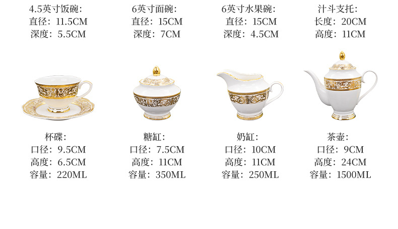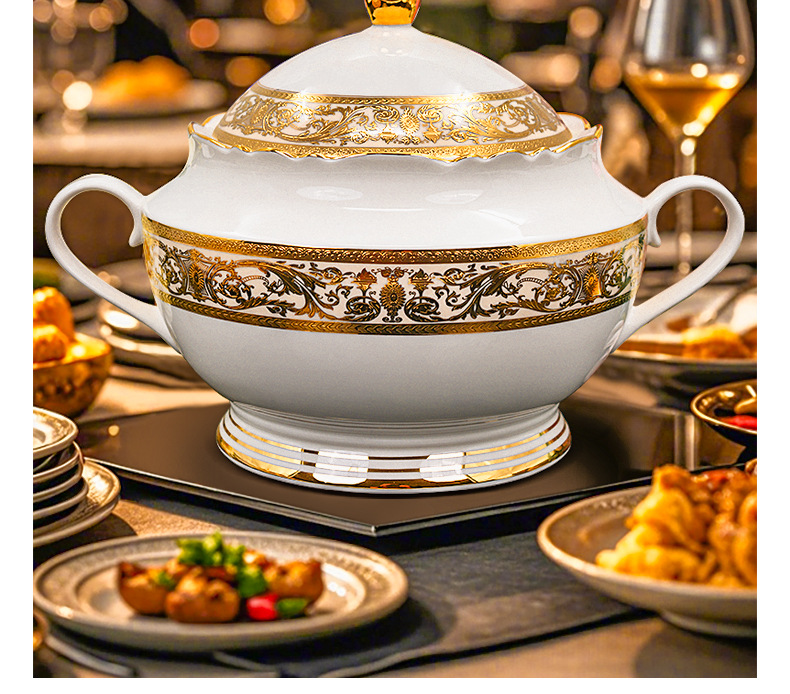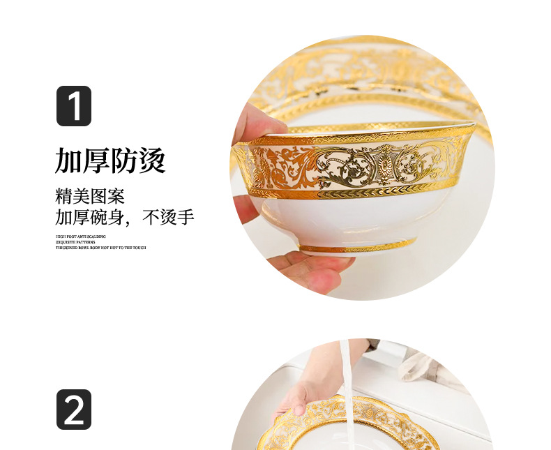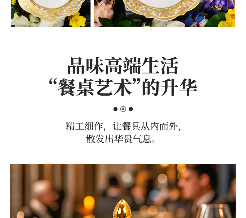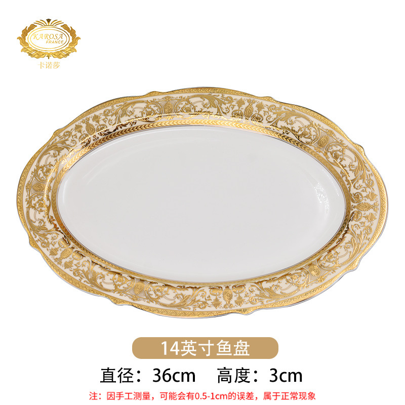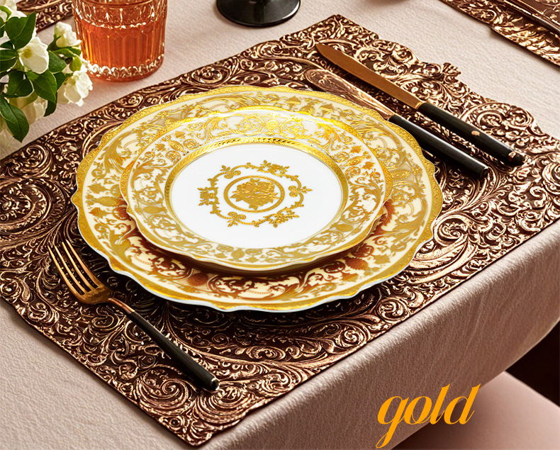 浮雕金色装饰餐具碗盘套装家用风格骨瓷餐具豪华瓷器餐具套装