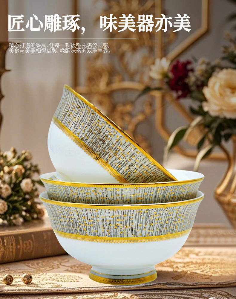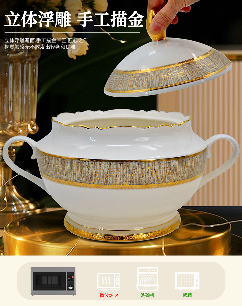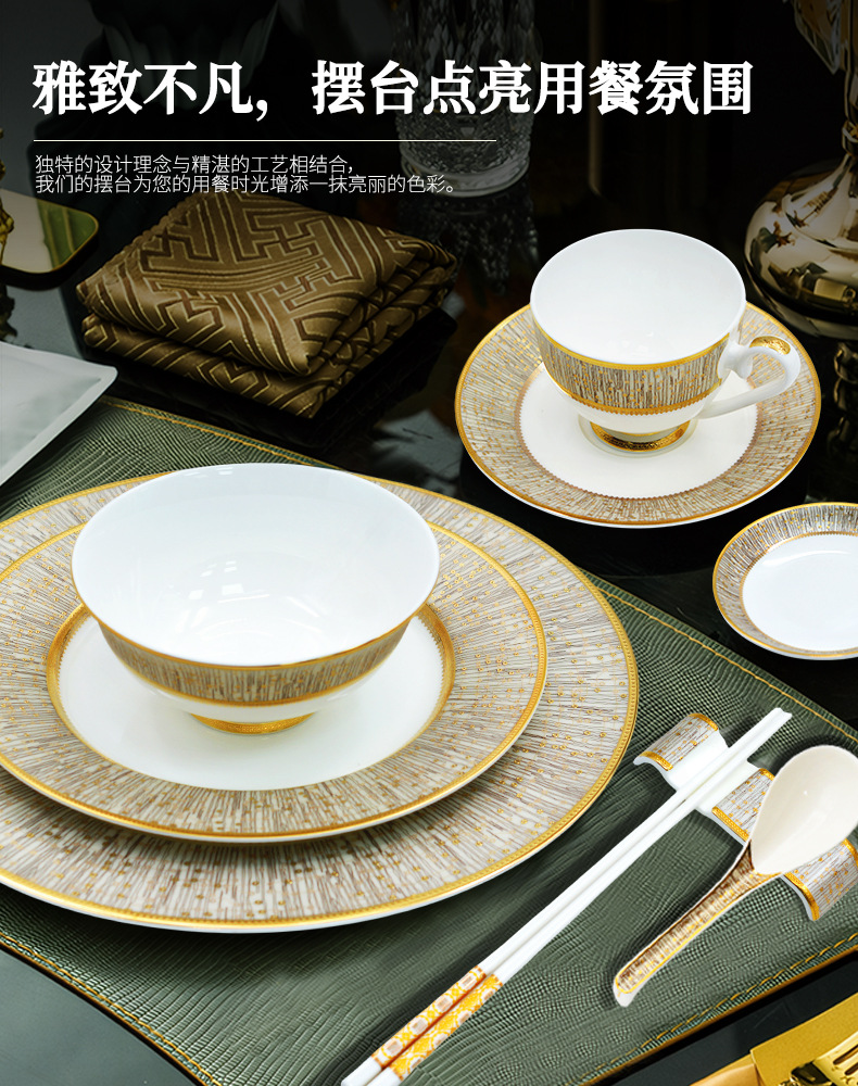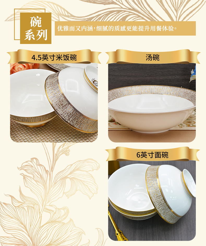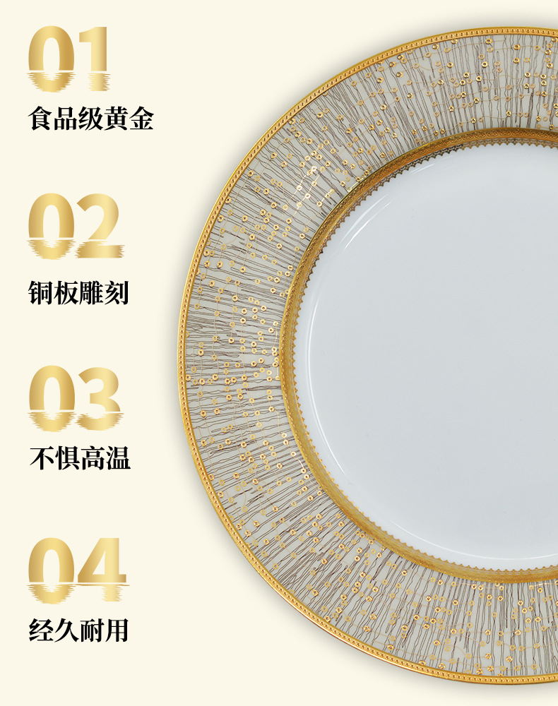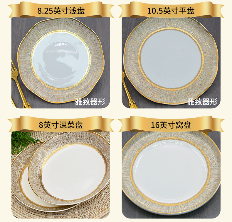 高端雕刻金骨瓷餐具套装轻奢高级感欧式高档酒店家用乔迁送礼碗碟