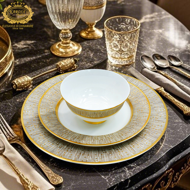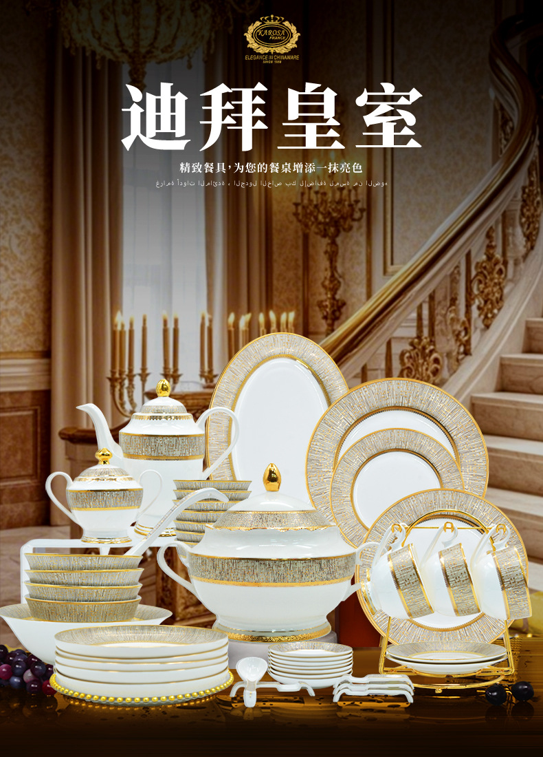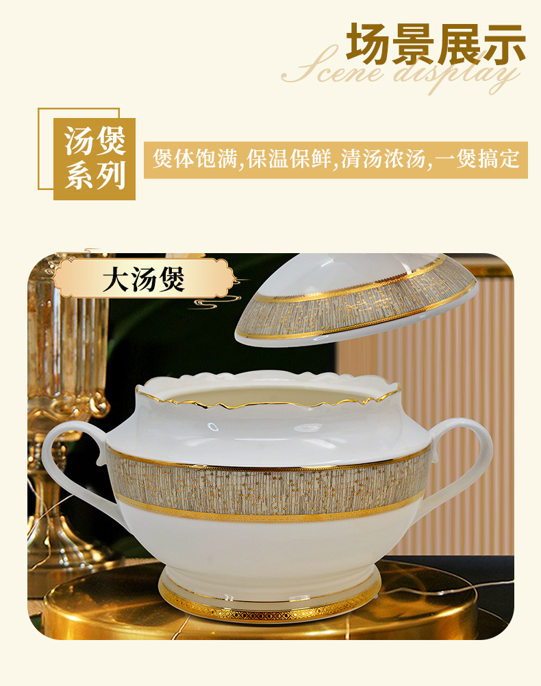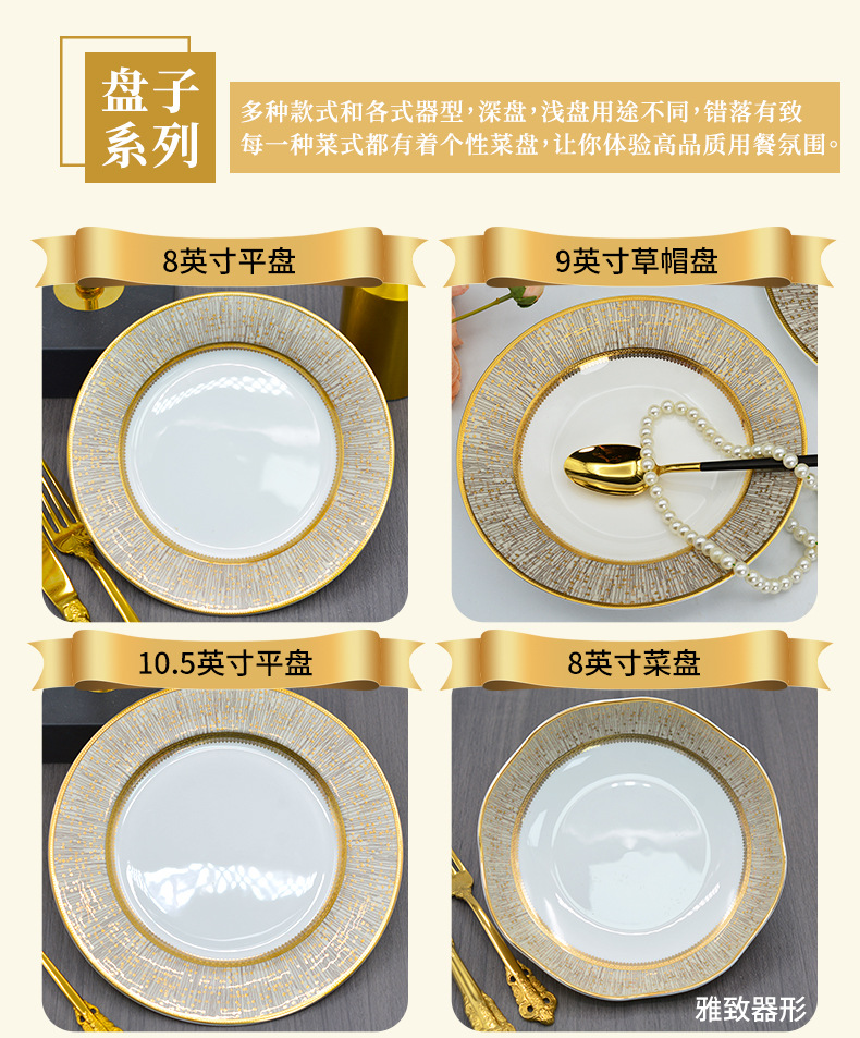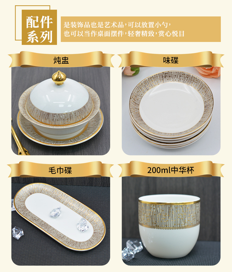 高端雕刻金骨瓷餐具套装轻奢高级感欧式高档酒店家用乔迁送礼碗碟