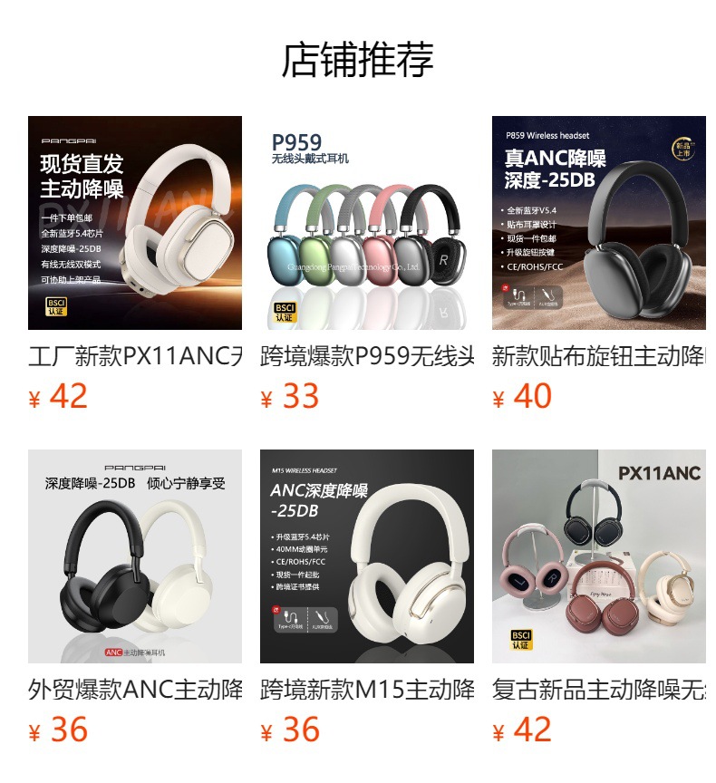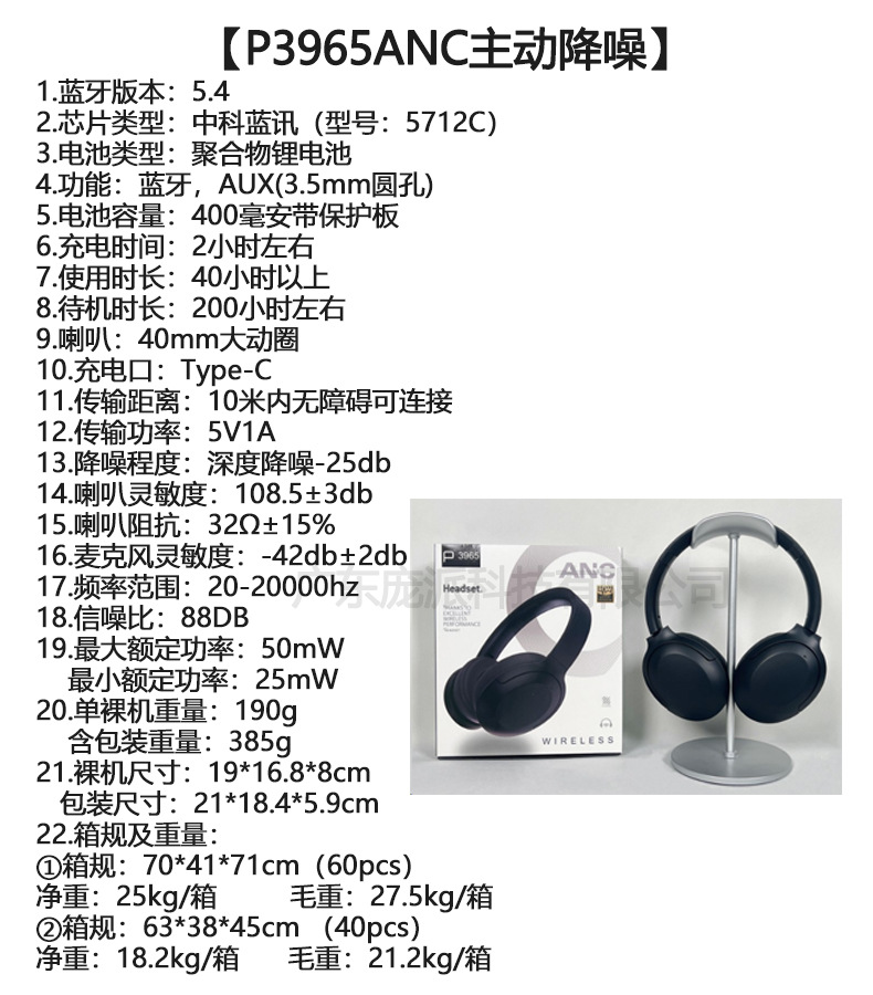 跨境新款P3965ANC主动降噪真无线头戴式蓝牙耳机折叠手机私模耳机