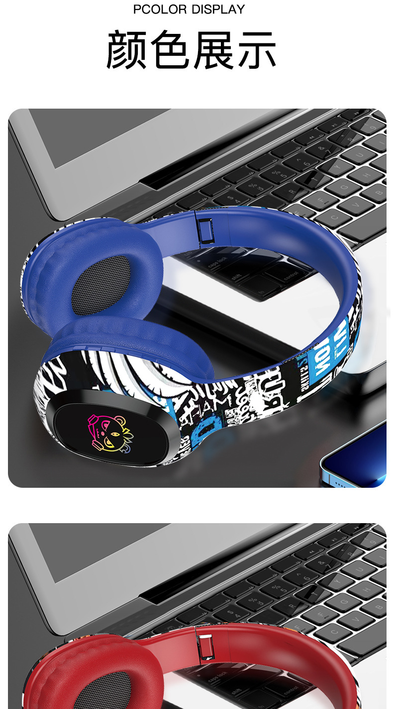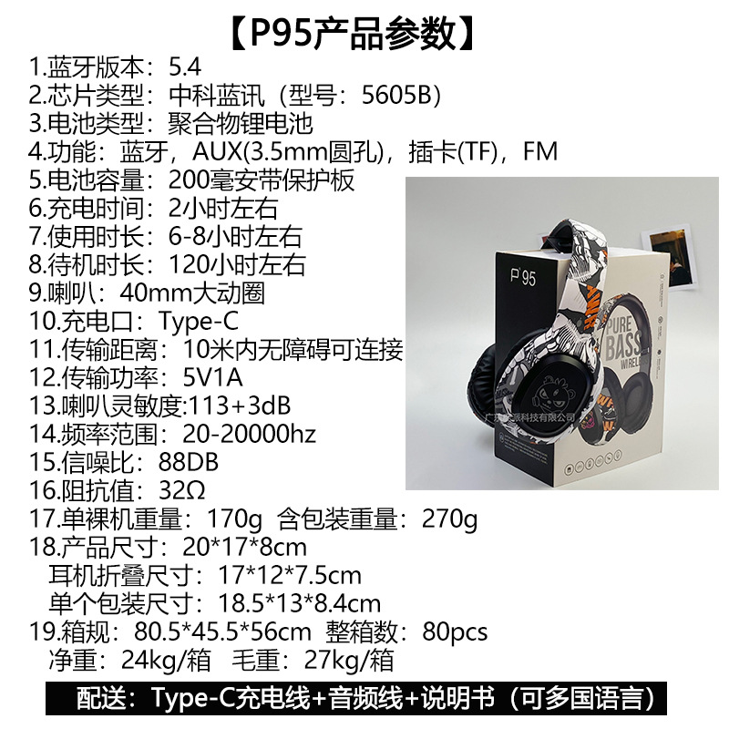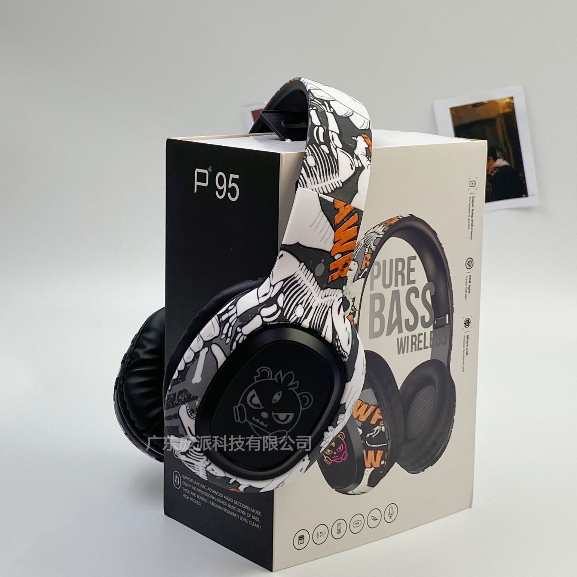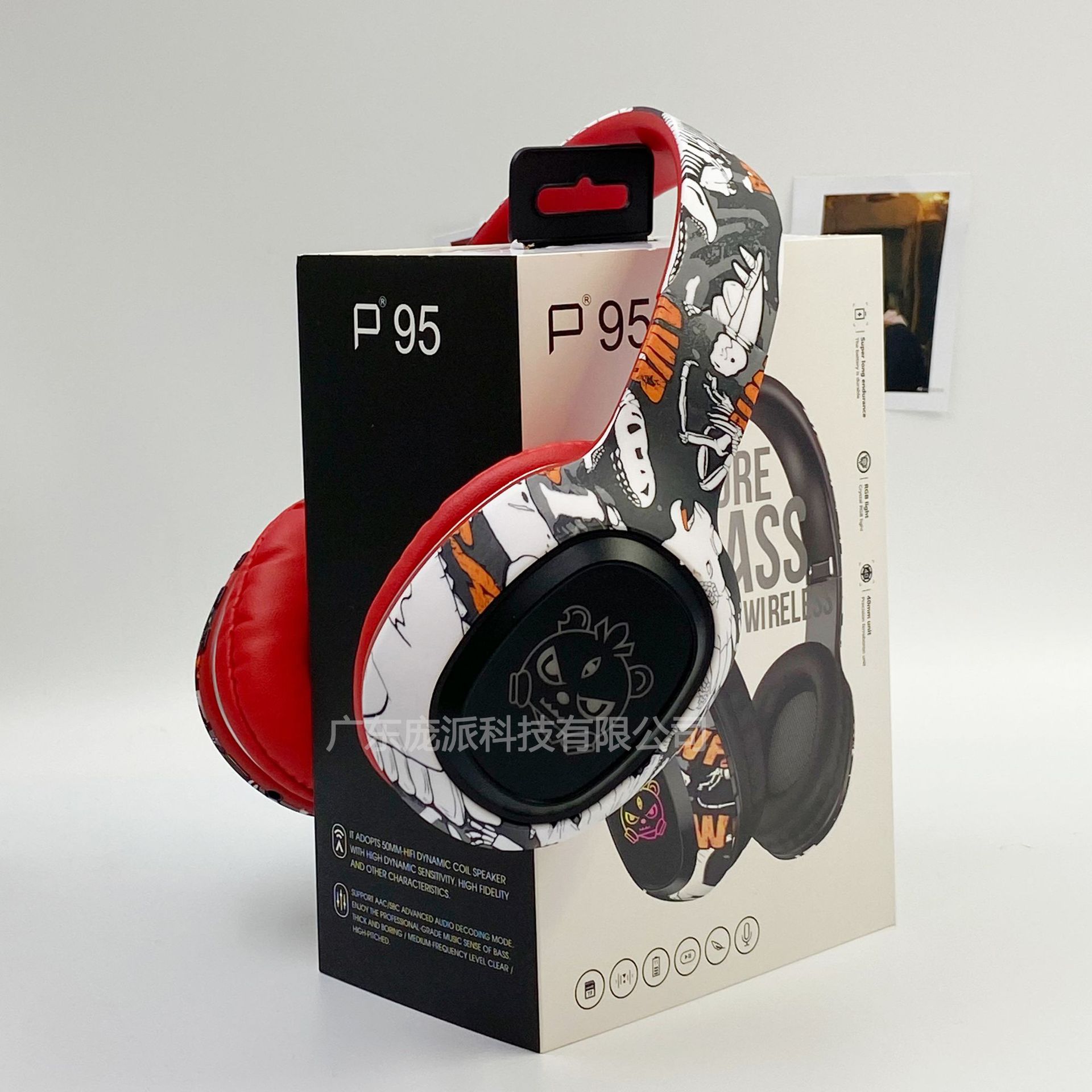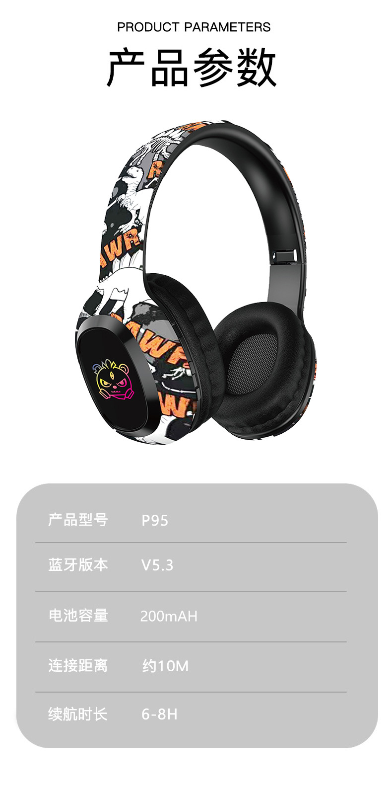 跨境涂鸦P95LED头戴式蓝牙耳机长续航真无线音乐运动手机厂家直销