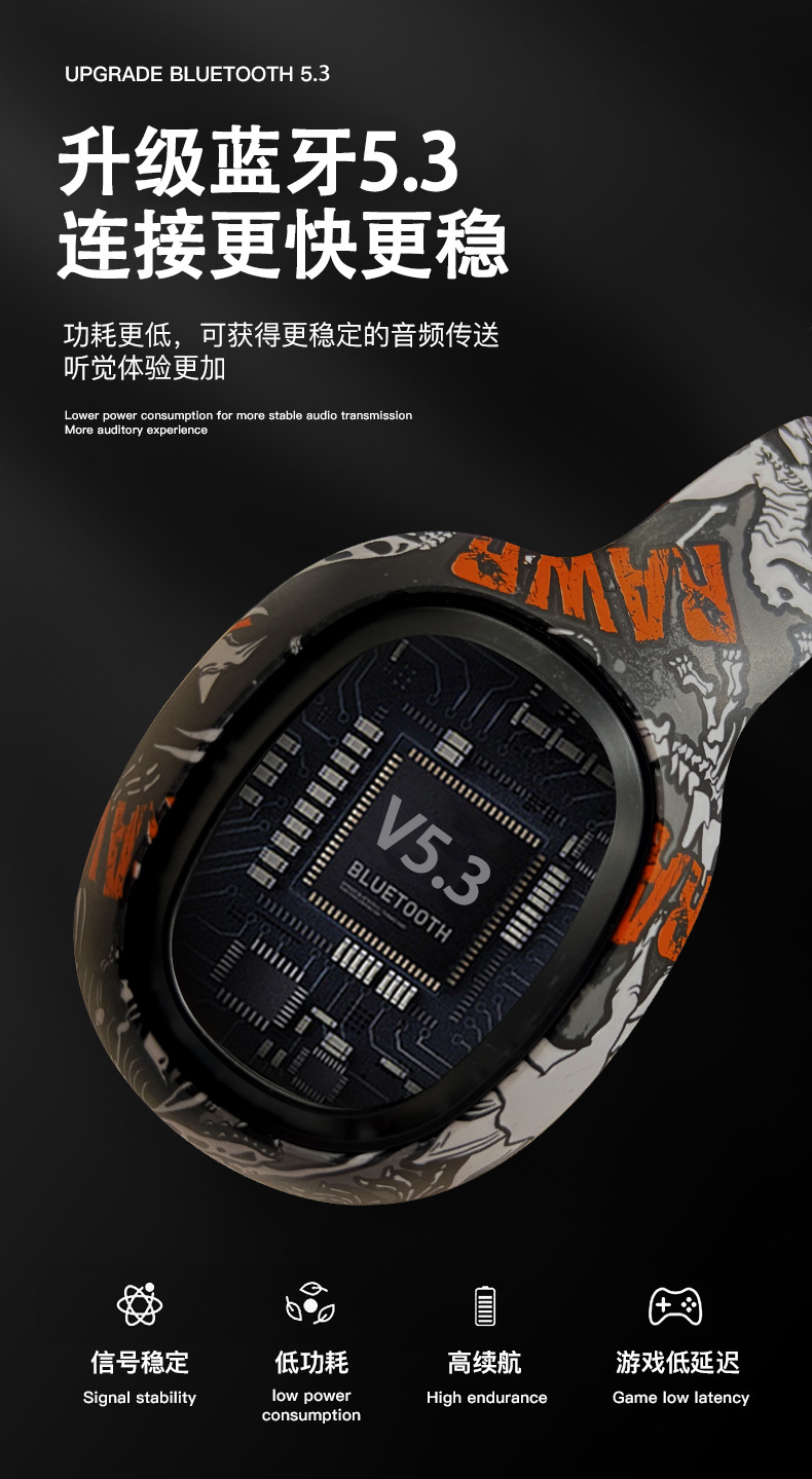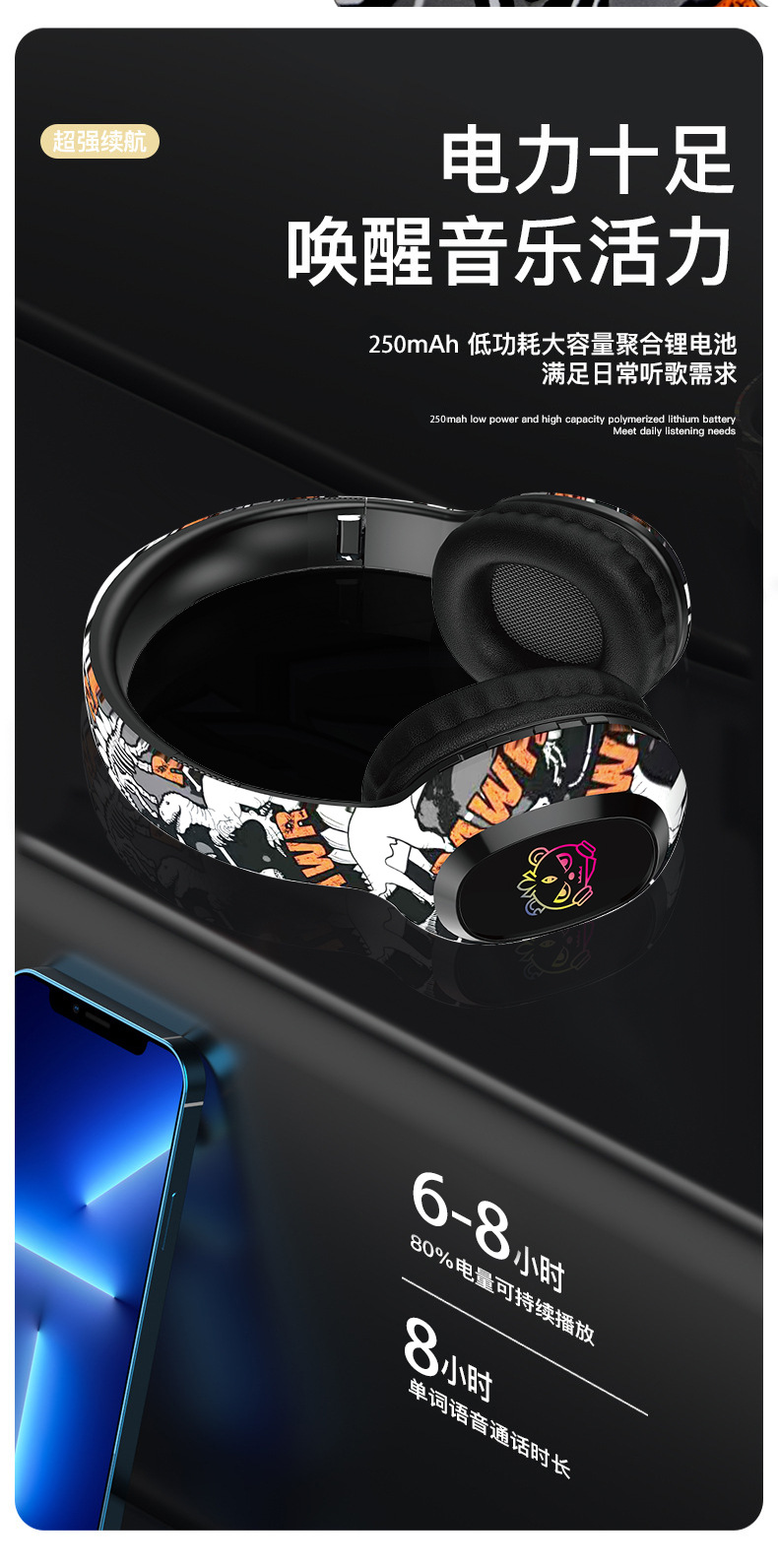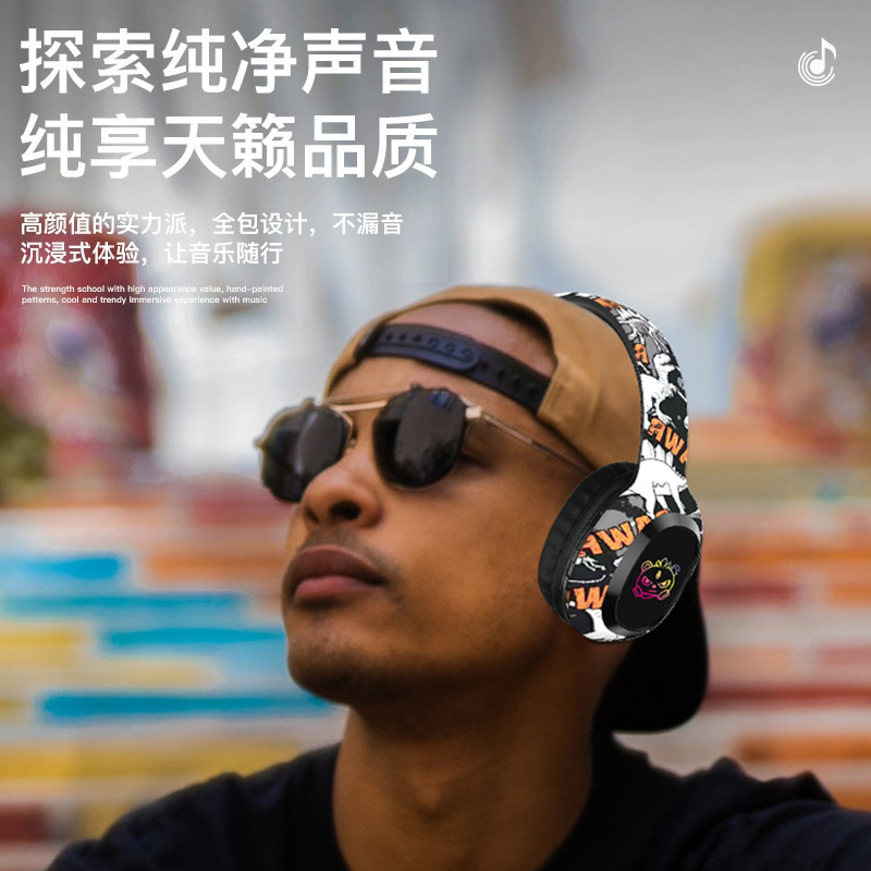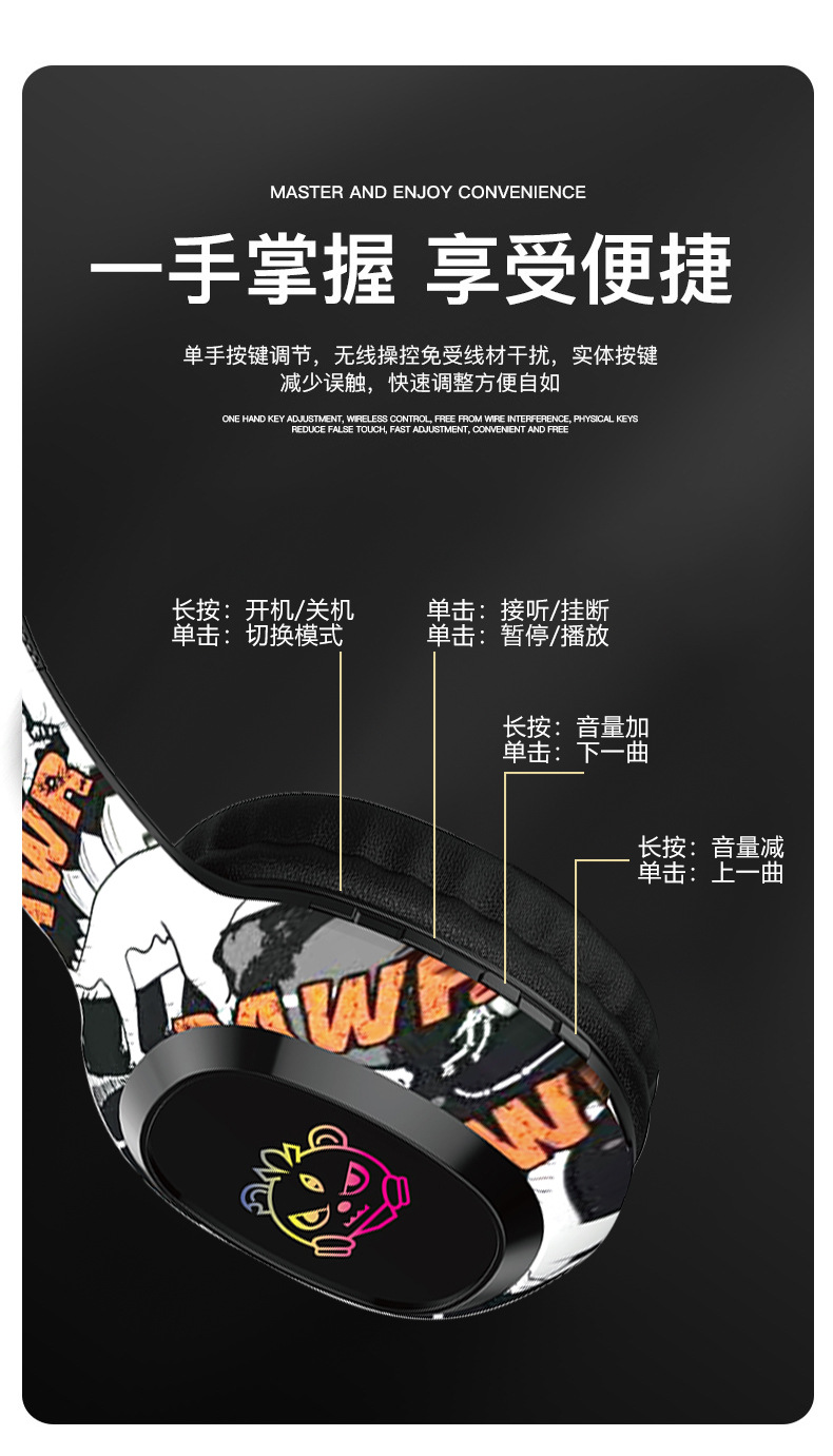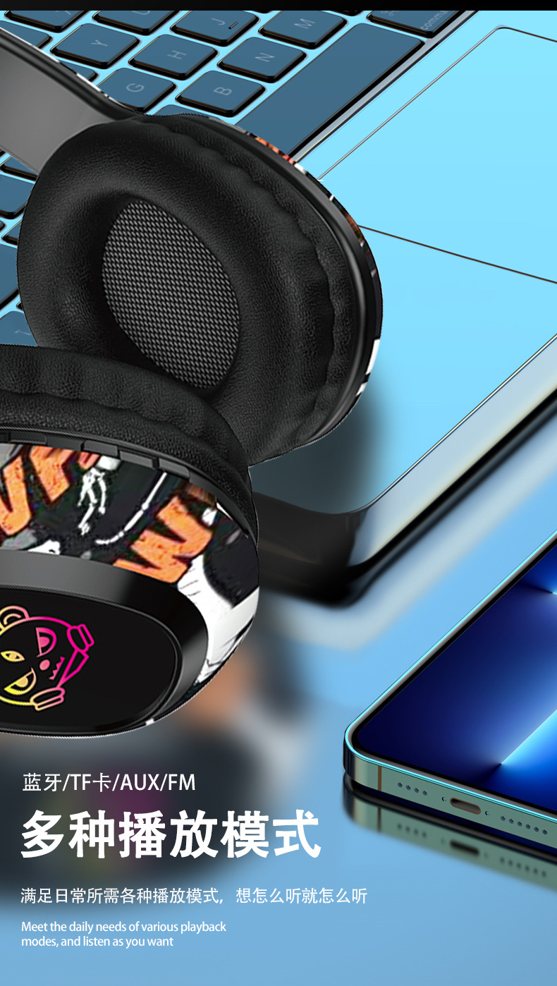 跨境涂鸦P95LED头戴式蓝牙耳机长续航真无线音乐运动手机厂家直销