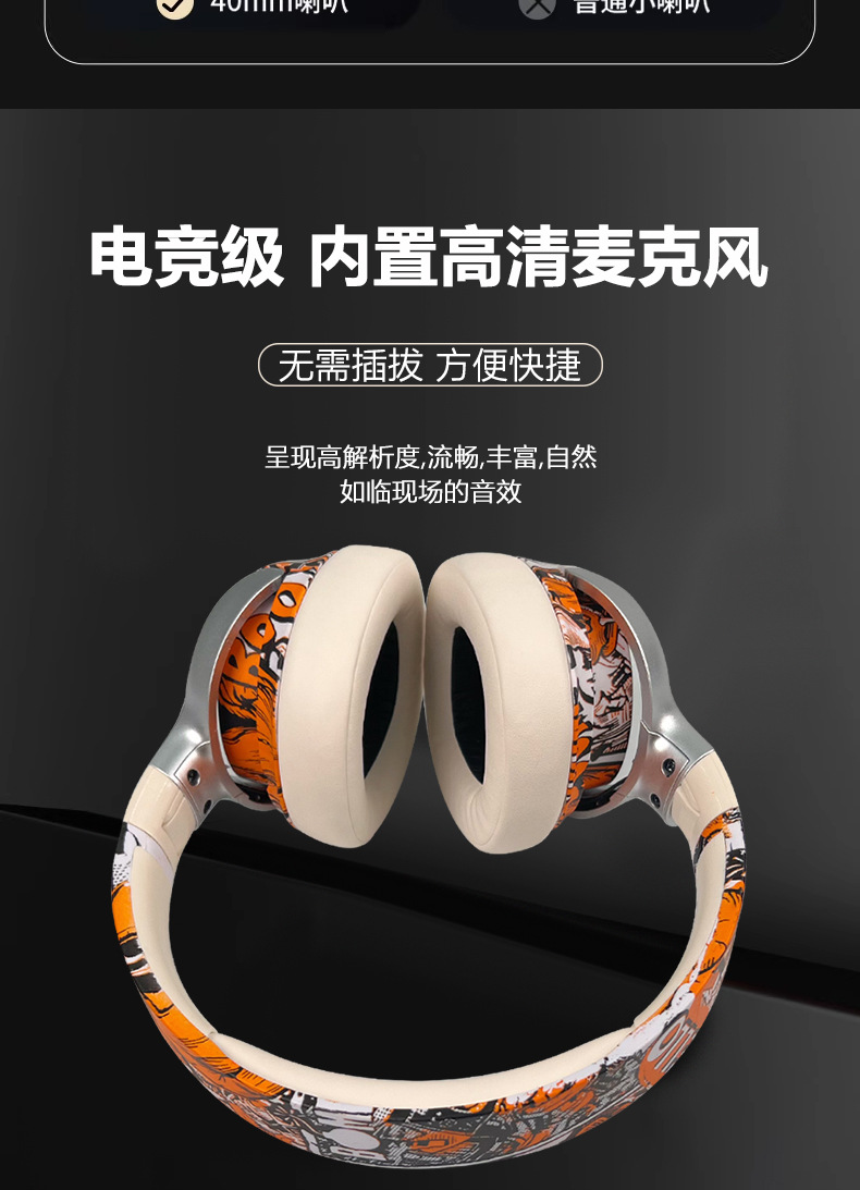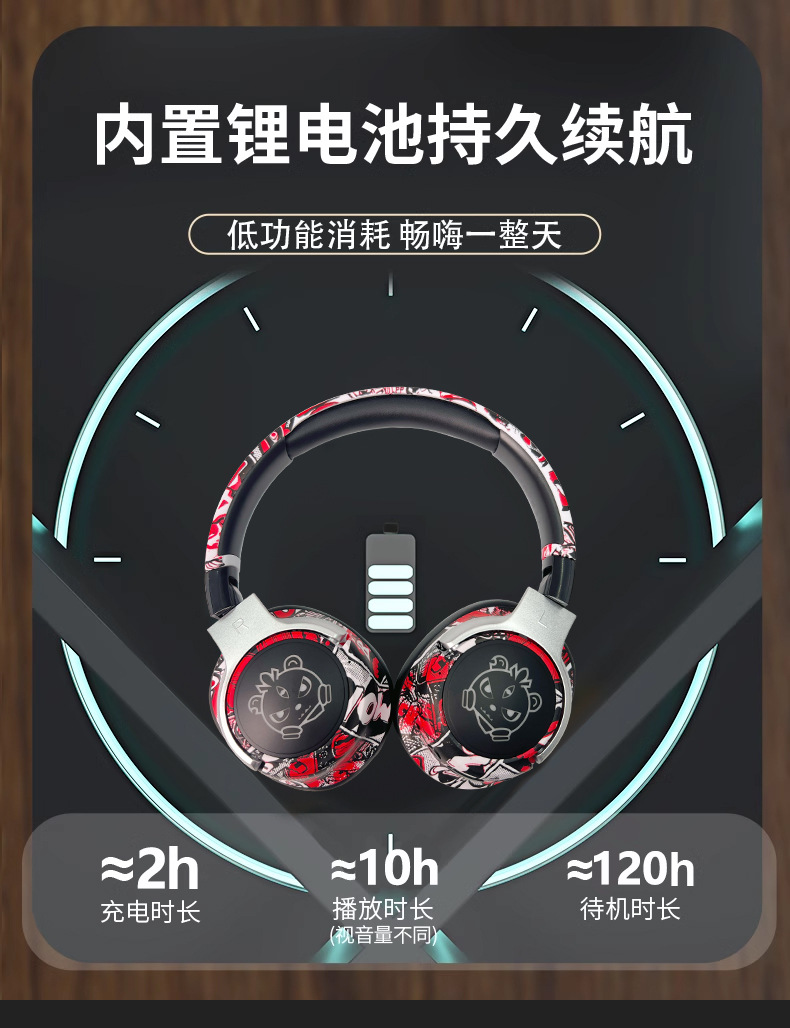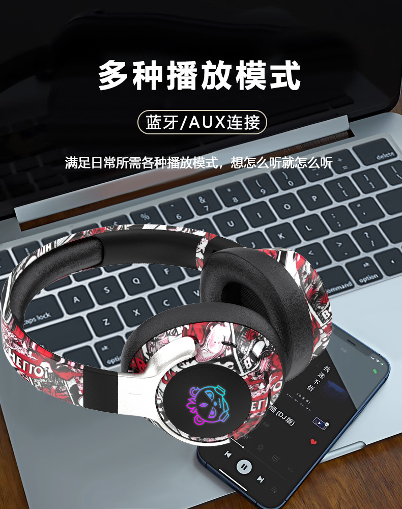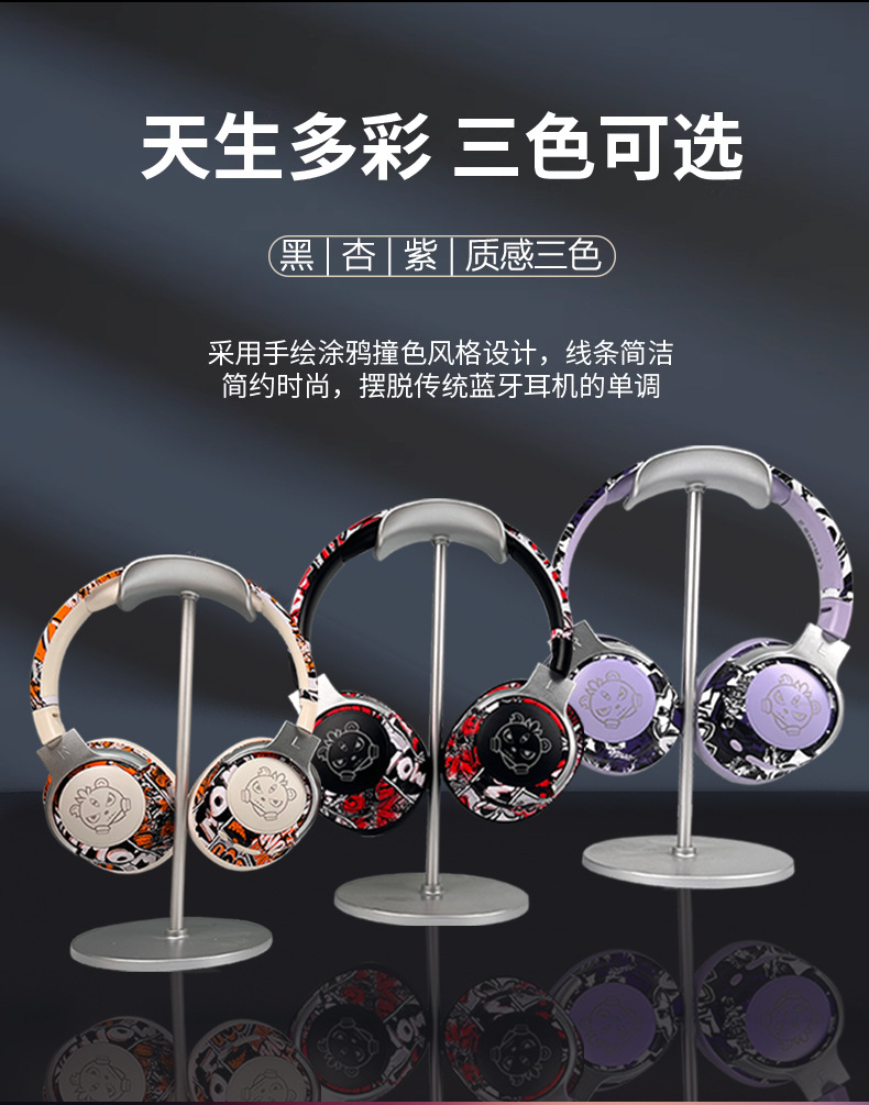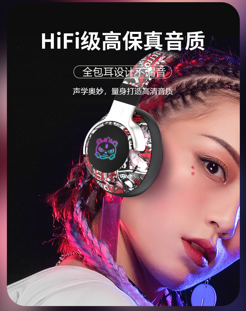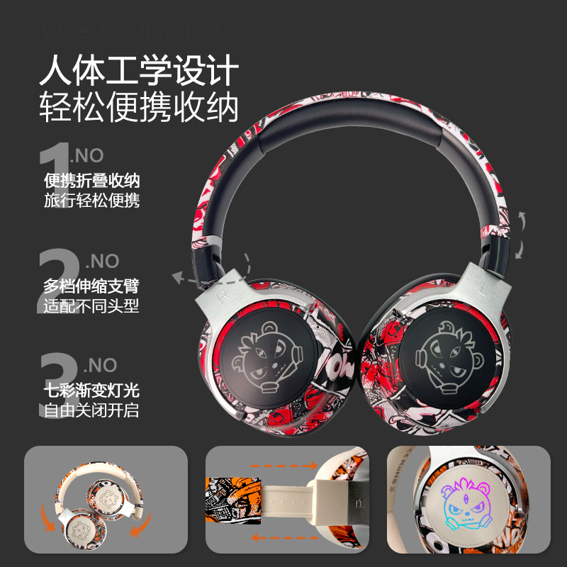 新款国潮涂鸦头戴式蓝牙耳机超长续航游戏真无线工厂批发跨境2026