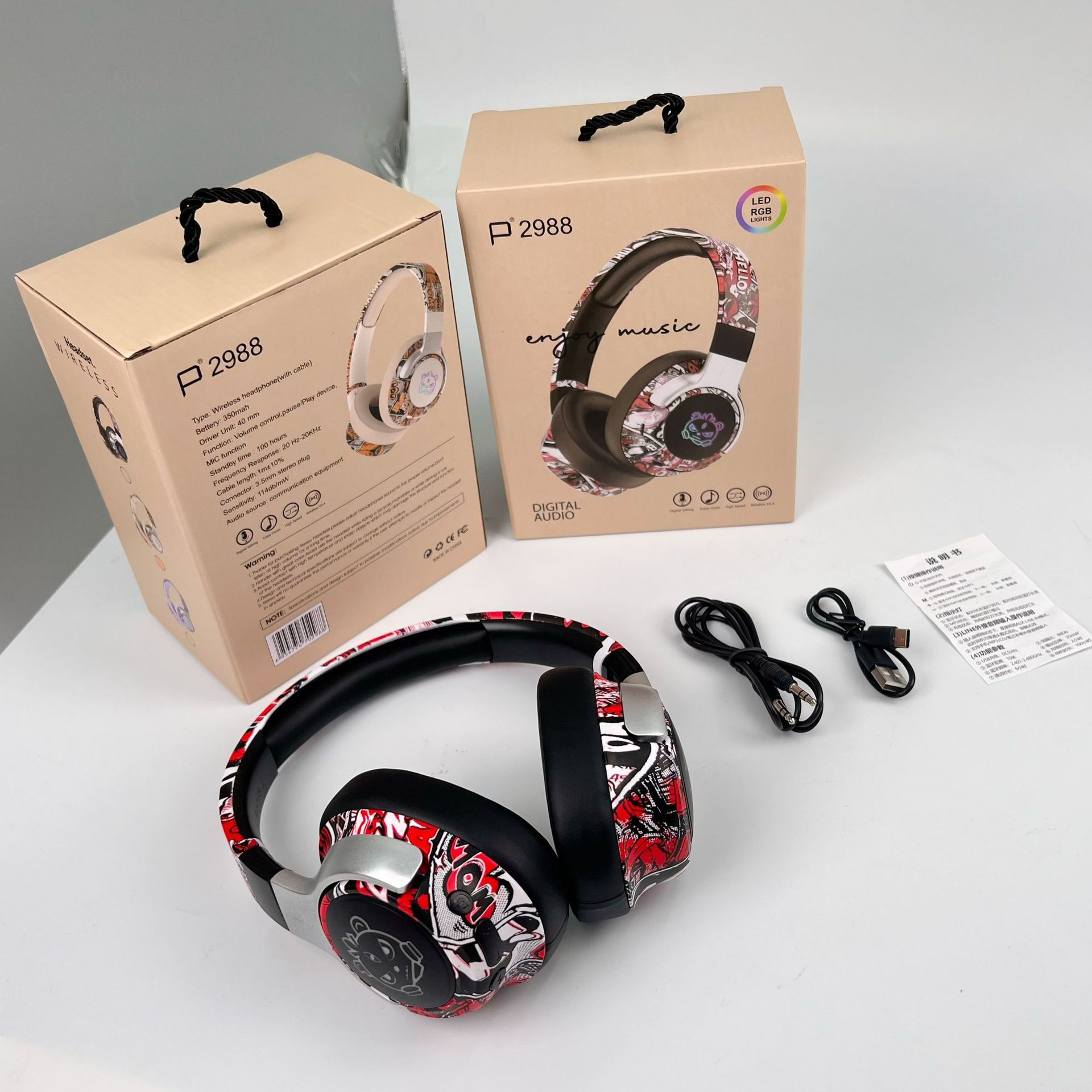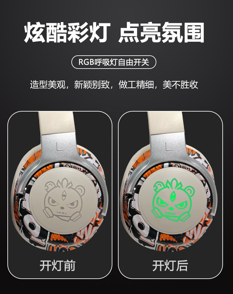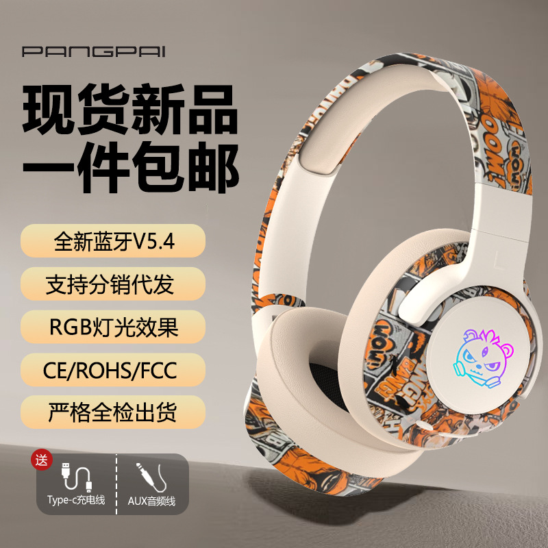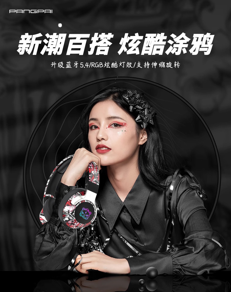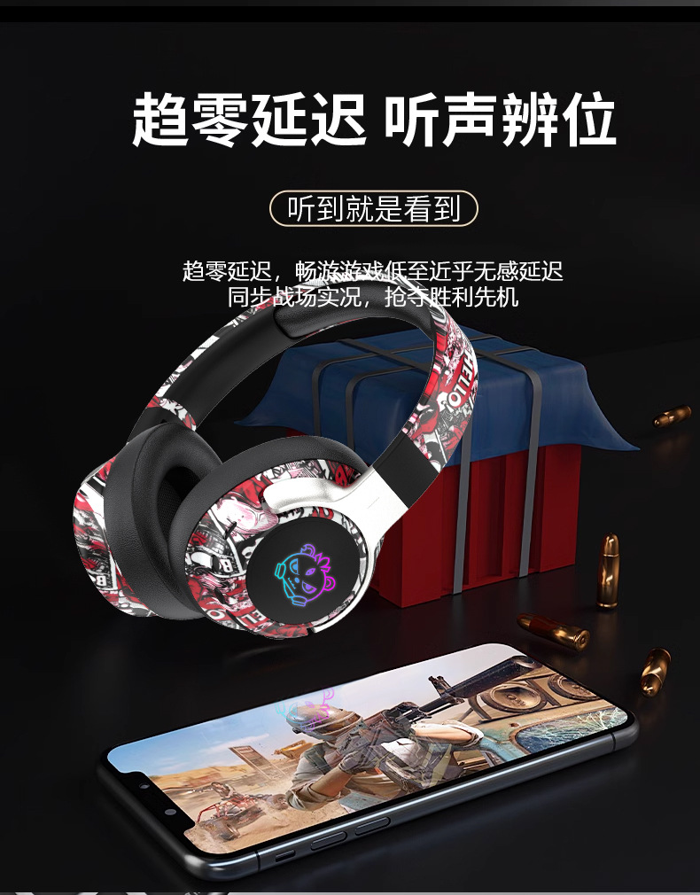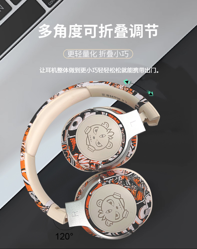 新款国潮涂鸦头戴式蓝牙耳机超长续航游戏真无线工厂批发跨境2026
