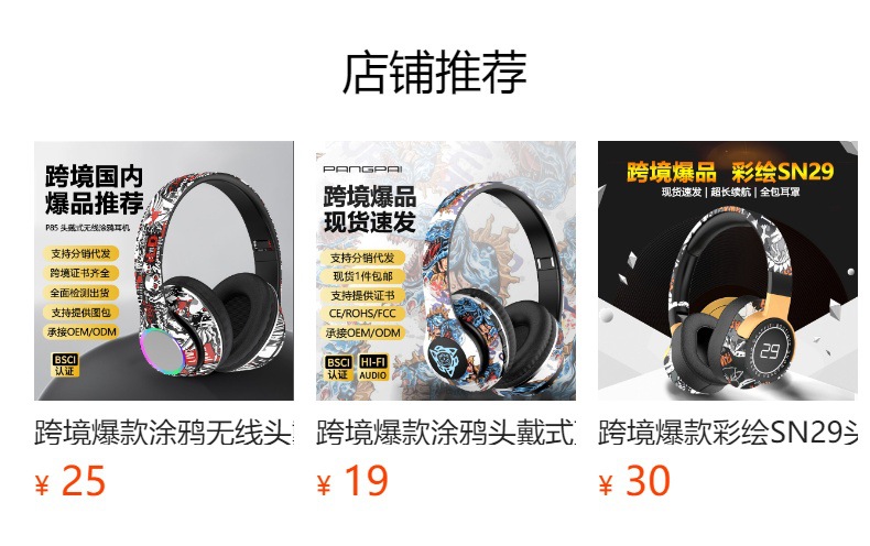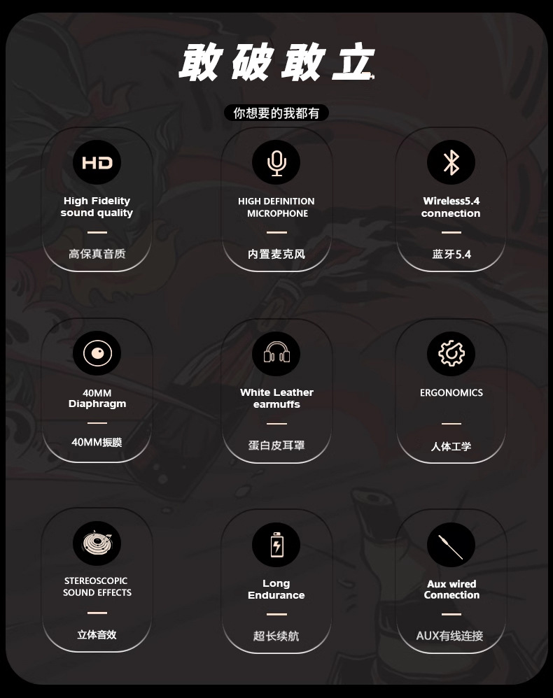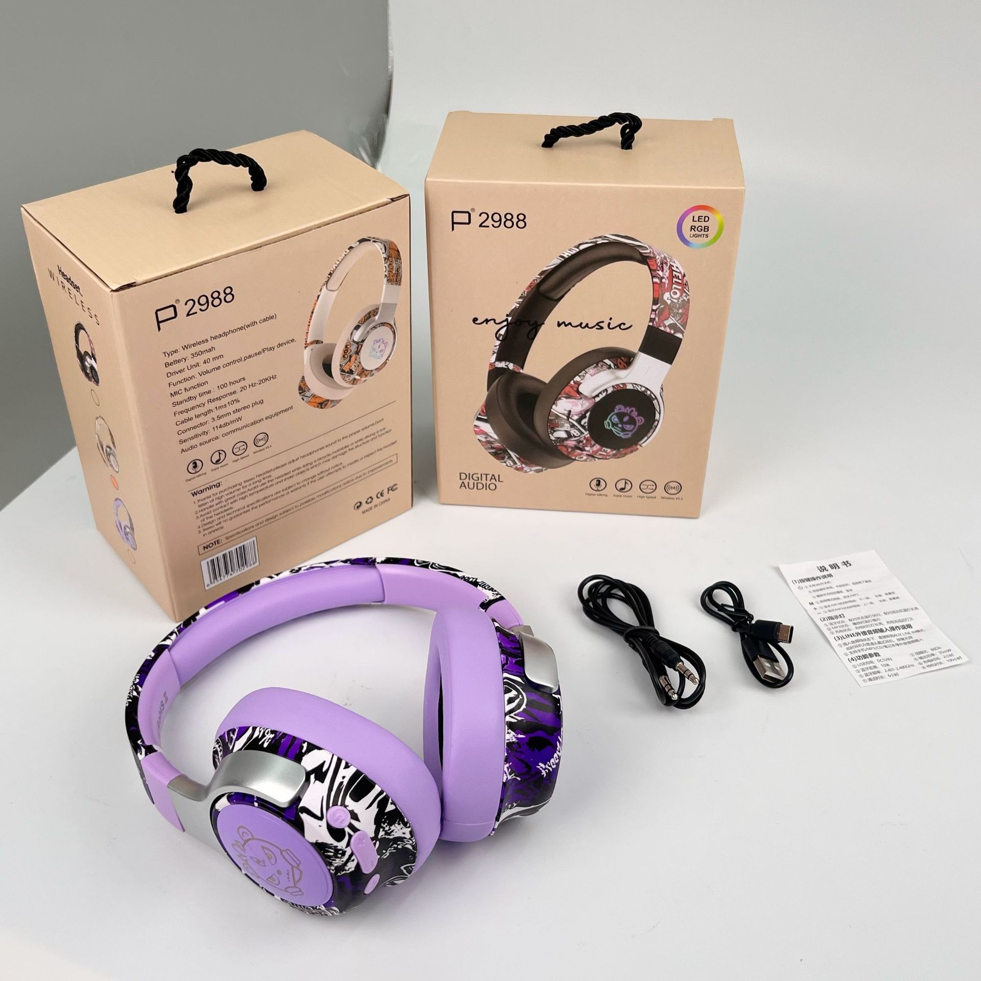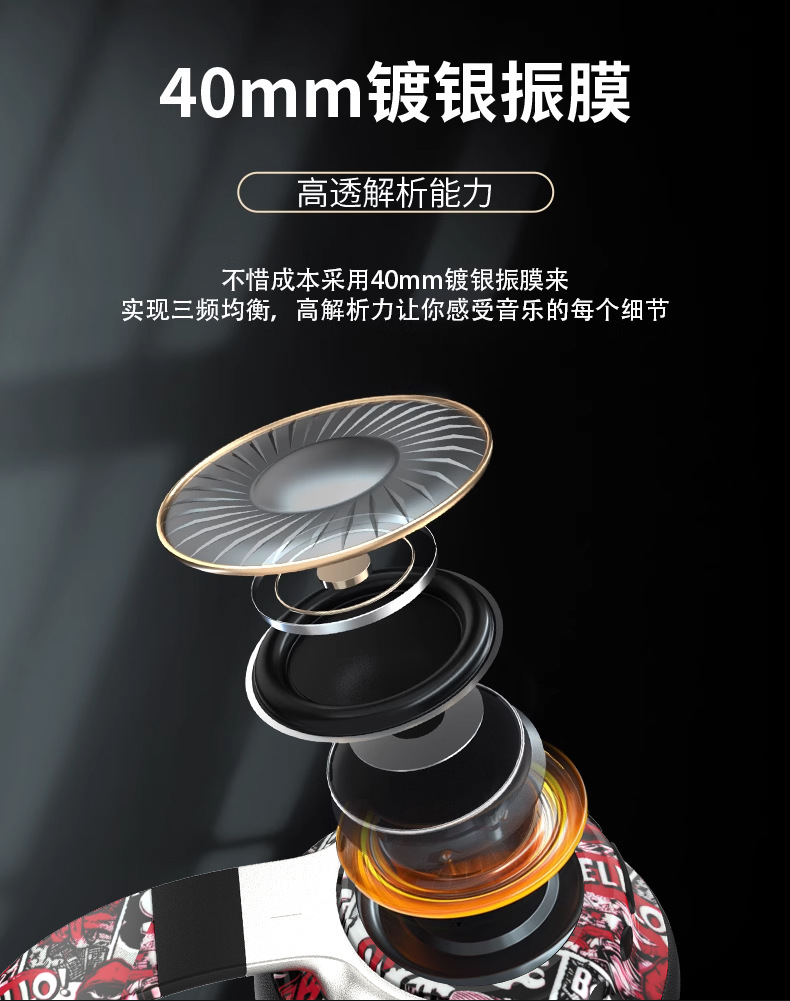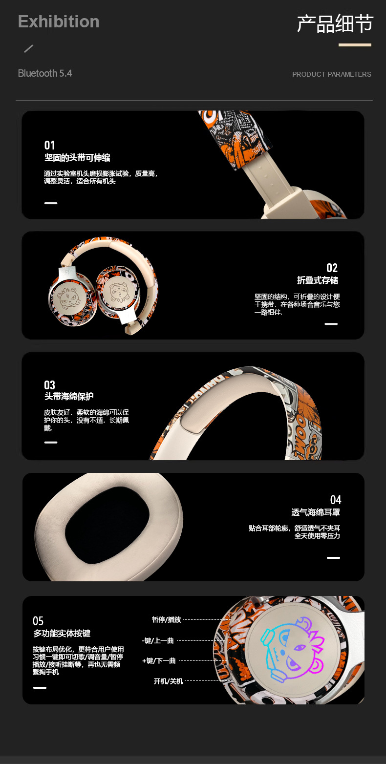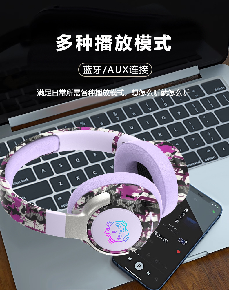 新款国潮涂鸦头戴式蓝牙耳机超长续航游戏真无线工厂批发跨境2026