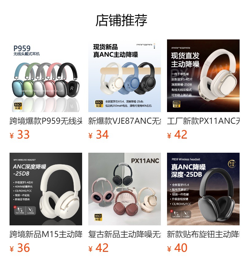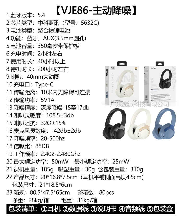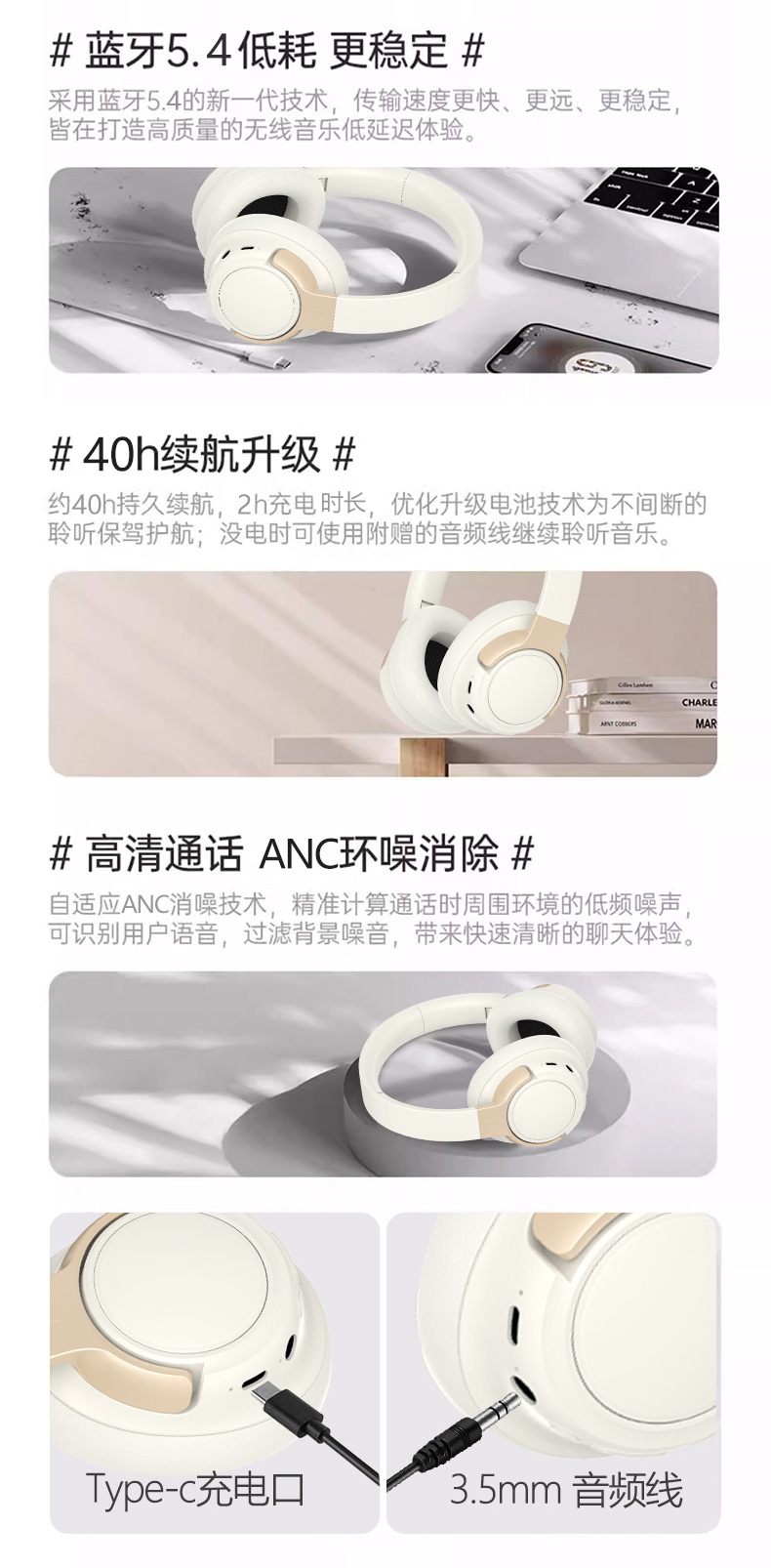 2025新爆款主动降噪头戴式蓝牙耳机低功耗大电量无线手机通用私模
