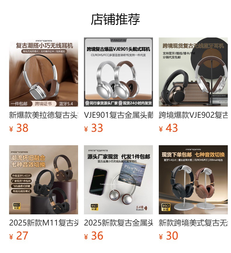 厂家新品金属复古无线蓝牙5.4头戴式耳机长续航通话音乐跨境批发