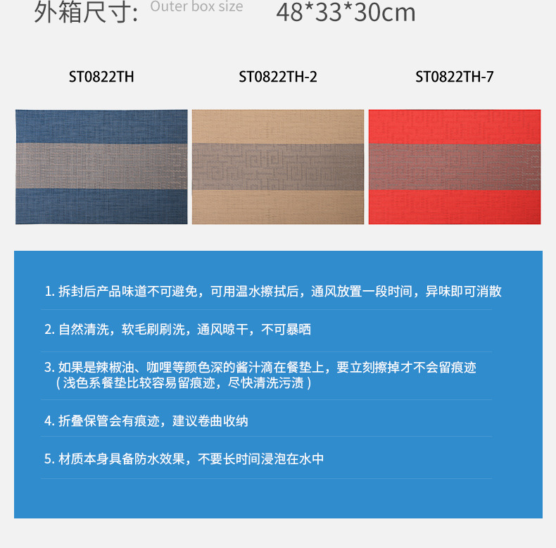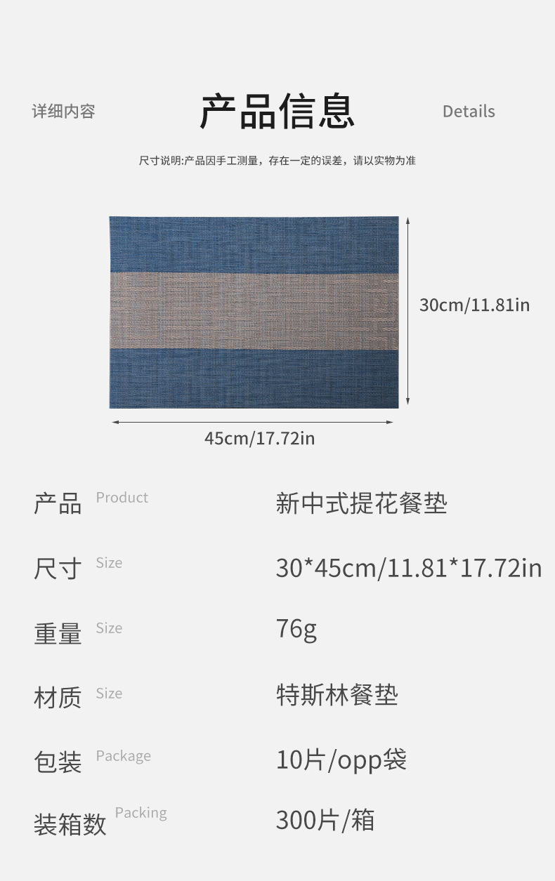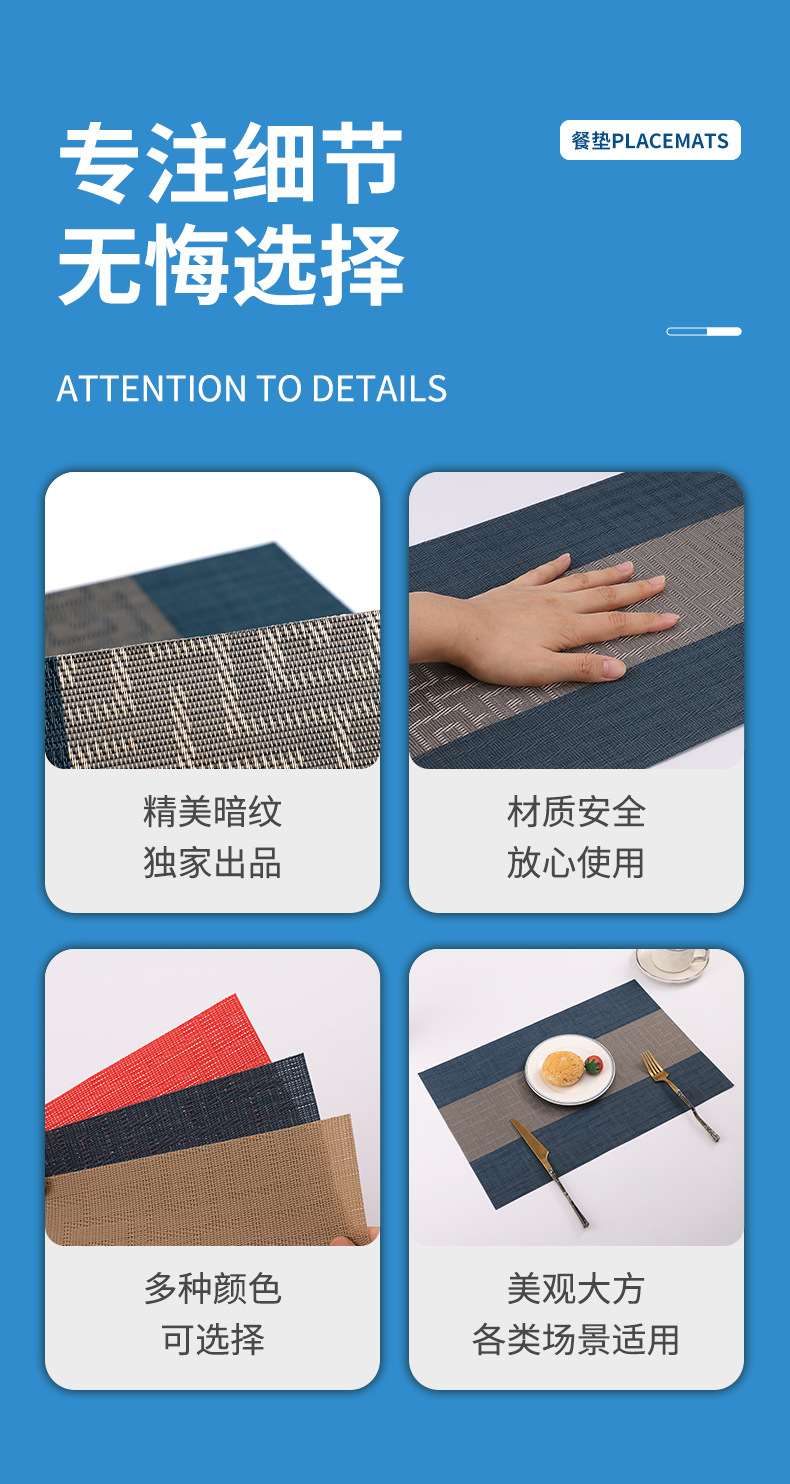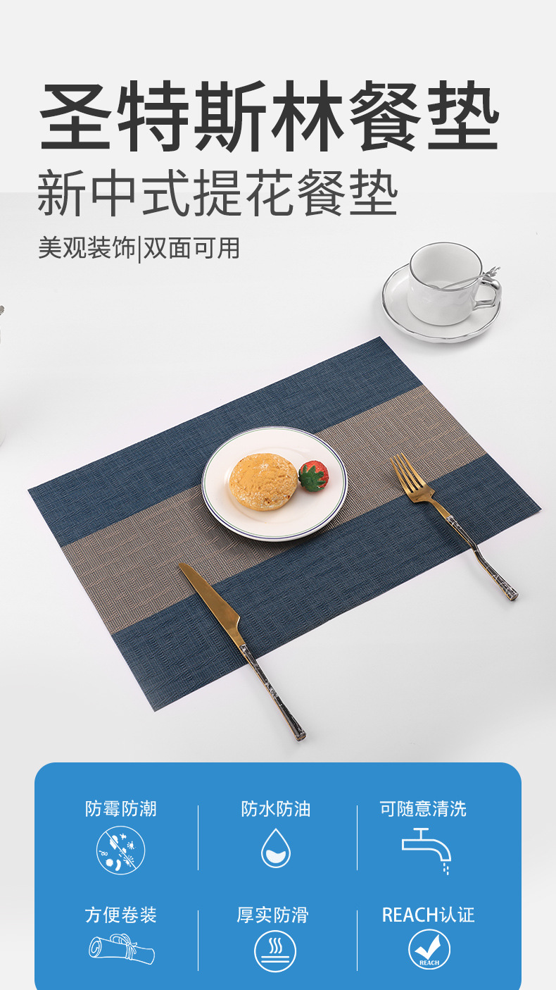 圣特ins家用北欧日式编织方形隔热简约餐桌垫pvc特斯林西餐垫网布