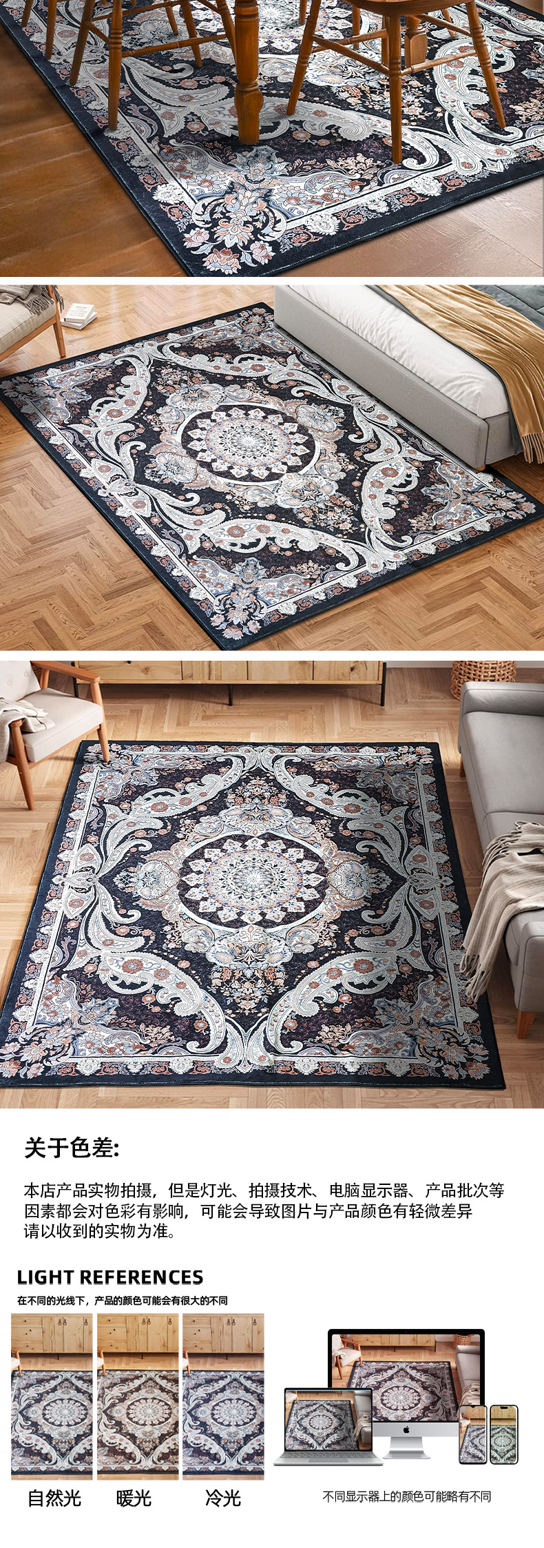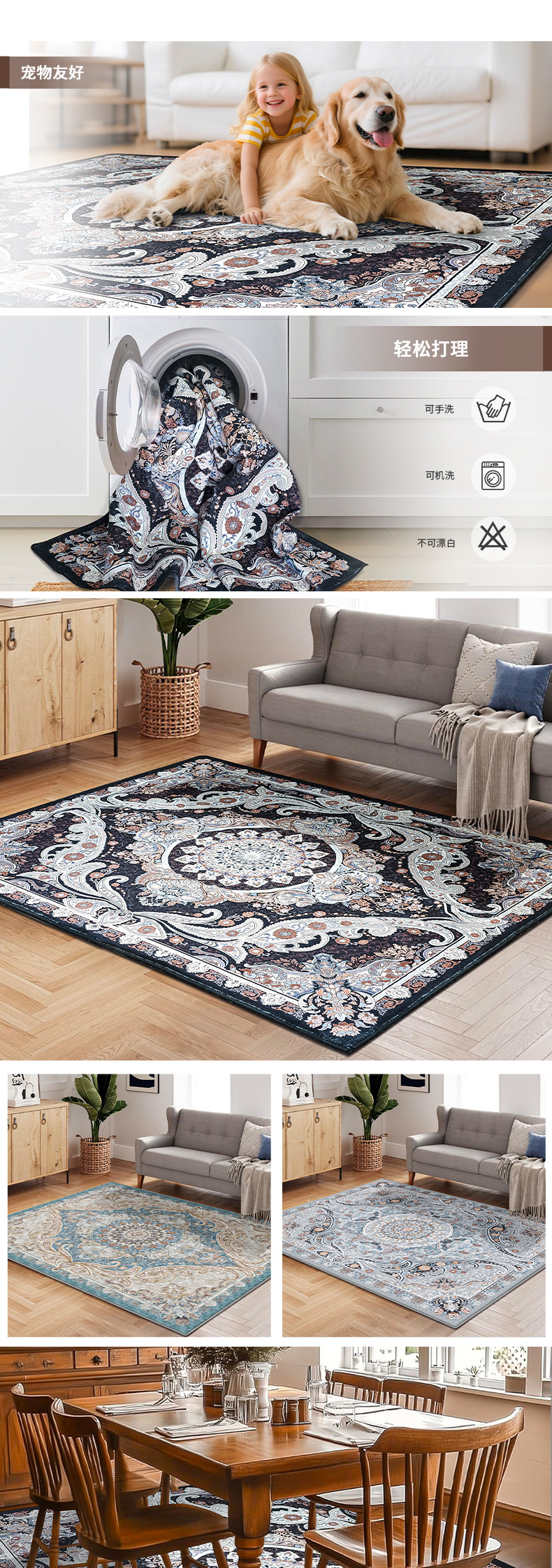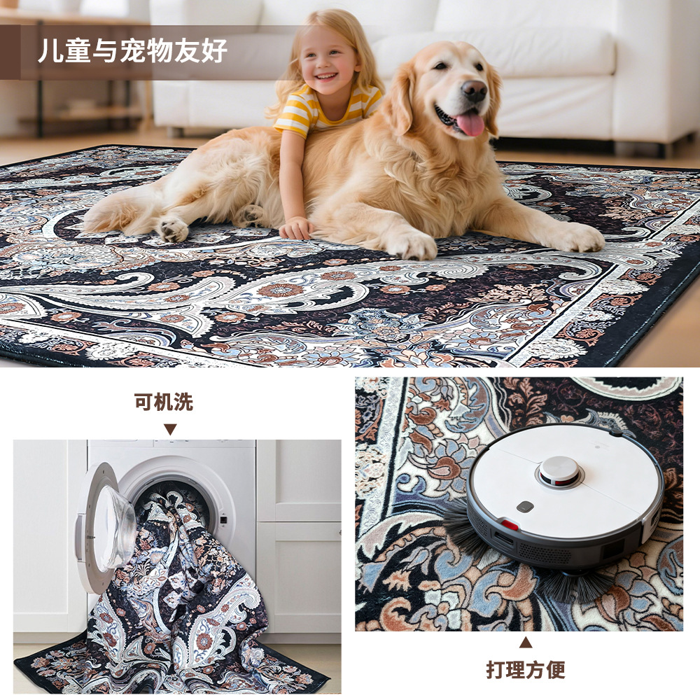 跨境定制复古地毯客厅仿羊绒波斯风沙发茶几地垫卧室床边毯可机洗
