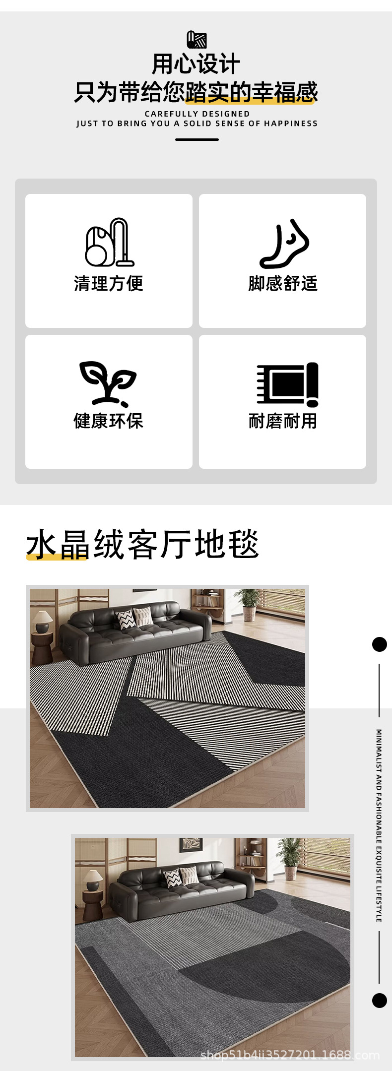 跨境水晶绒客厅地毯Polyester living room carpet客厅地毯地垫