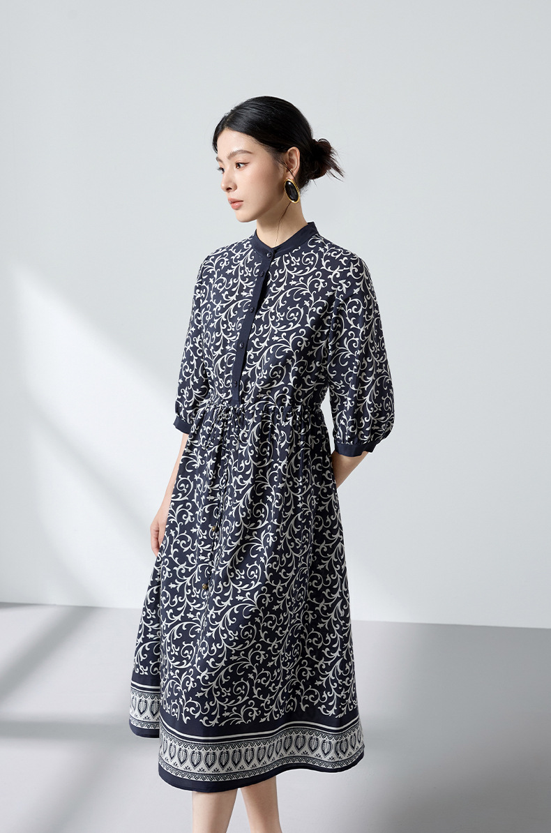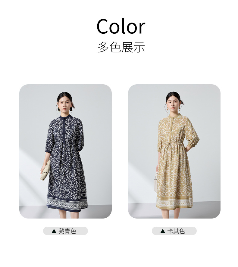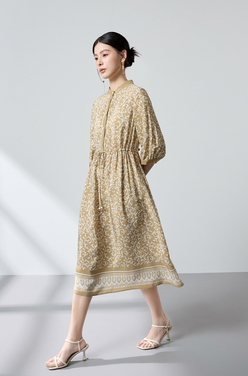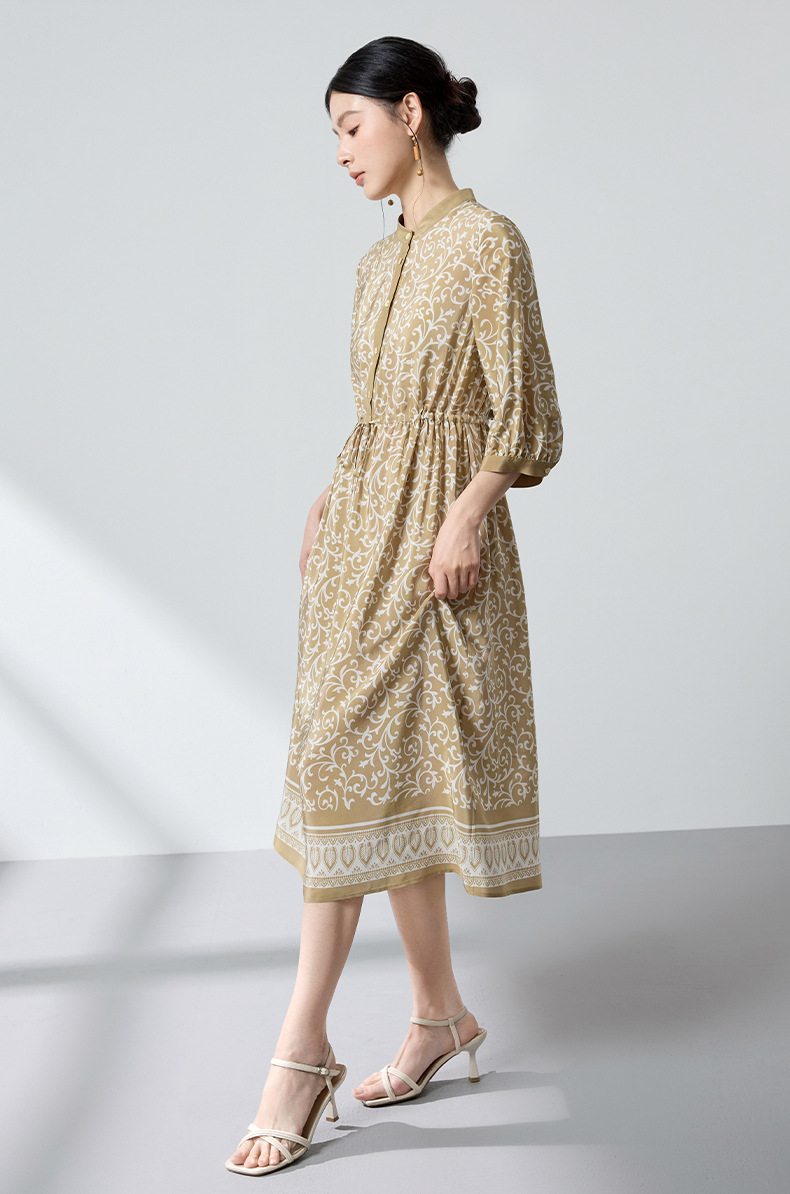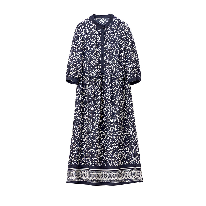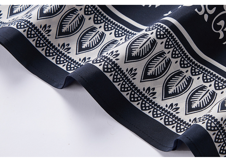 杭州重磅绸缎女士波西米亚印花真丝桑蚕丝连衣裙女长袖复古风春季