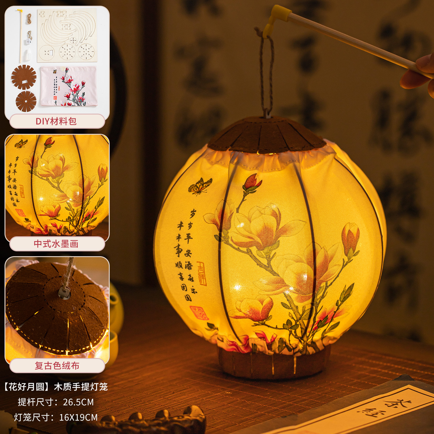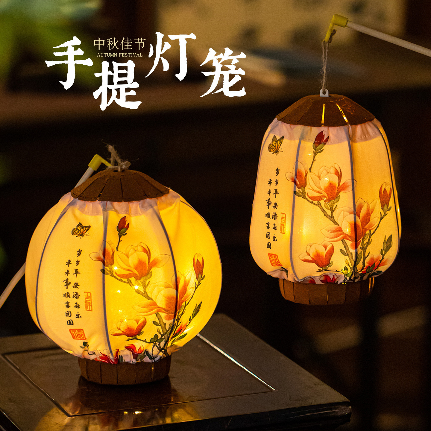 2026新年春节元宵儿童手提灯笼手工diy材料包古风小花灯发光宫灯