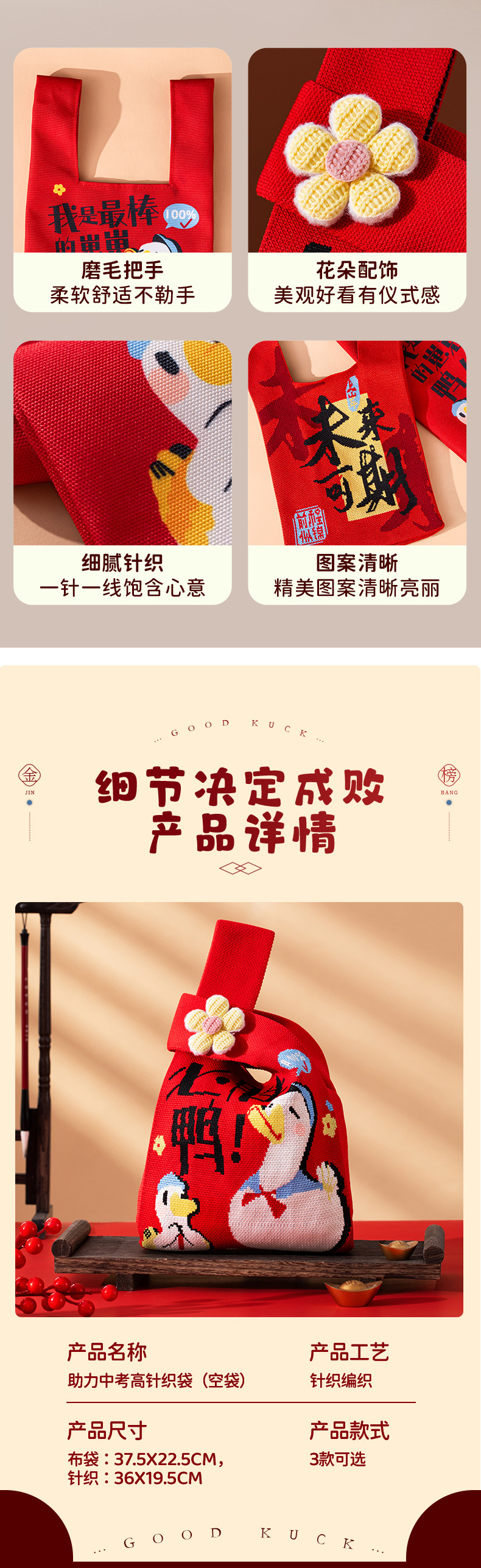 中考仪式感礼物高考金榜题名针织袋空袋加油励志小礼品毕业伴手礼
