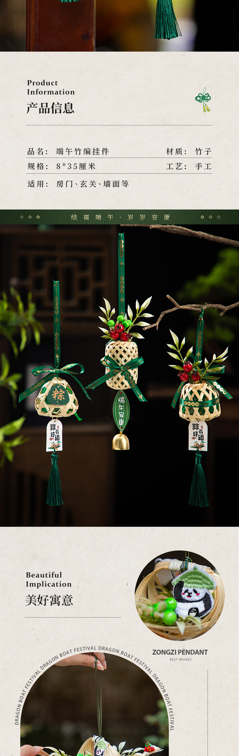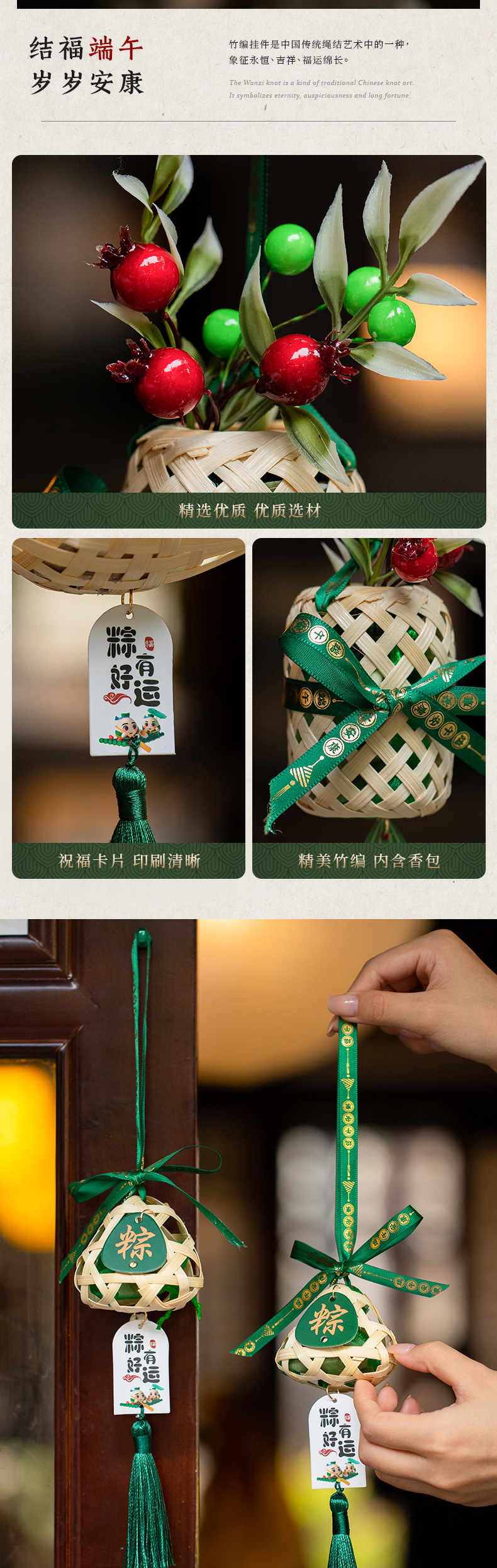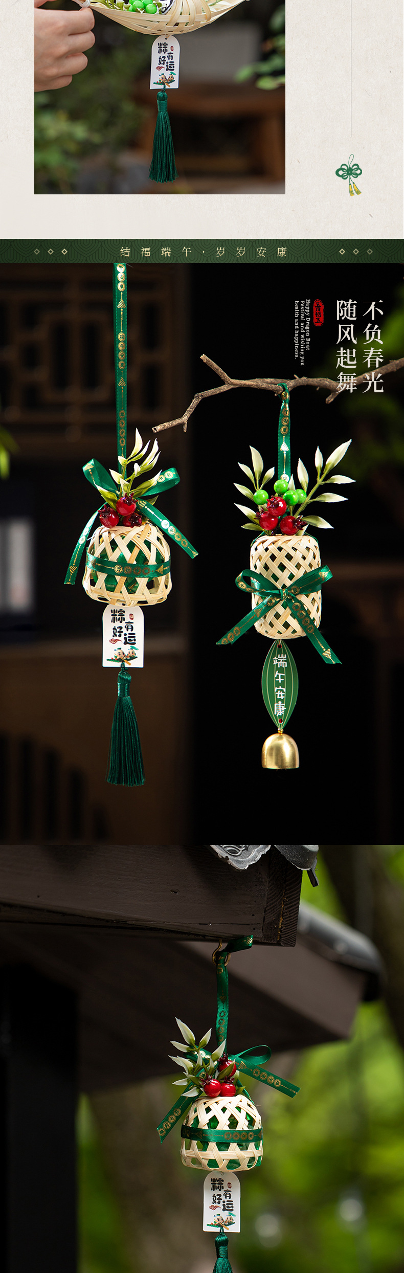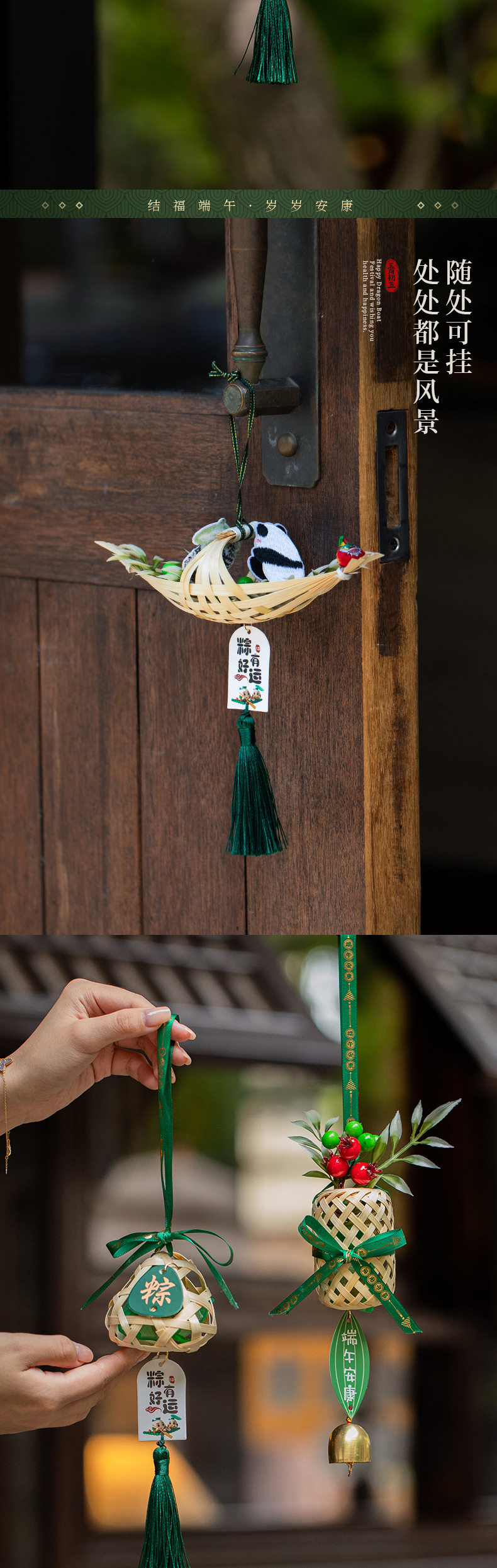 端午挂饰艾草门挂成品手工竹编粽子挂件香囊入户门口节庆装饰用品