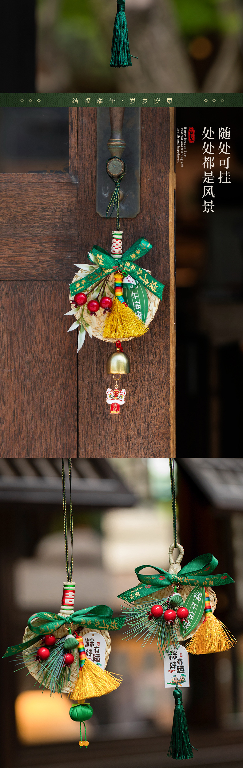 端午节蒲扇艾草扫把挂件手工竹编香囊挂饰入户门挂装饰节庆用品