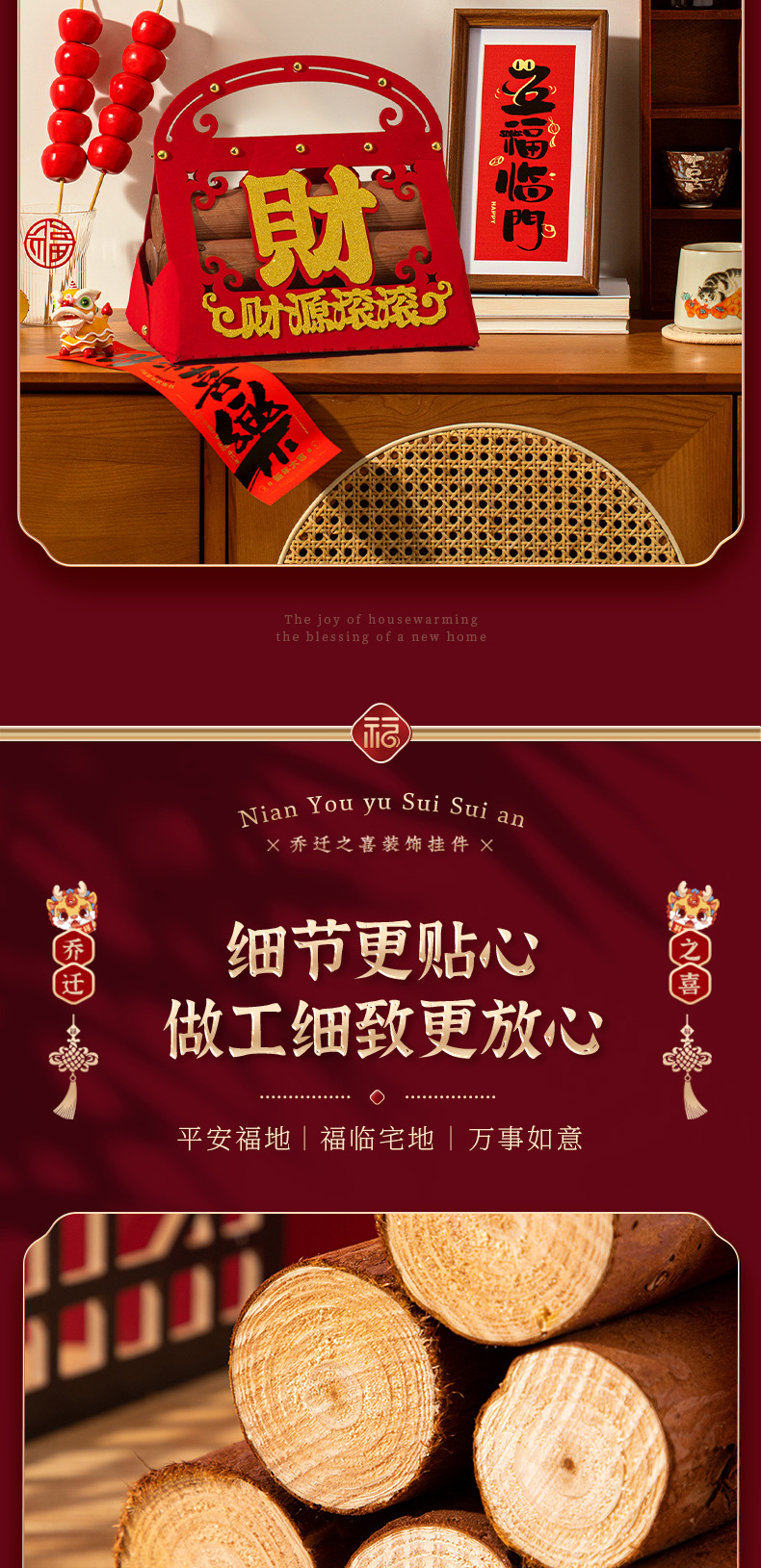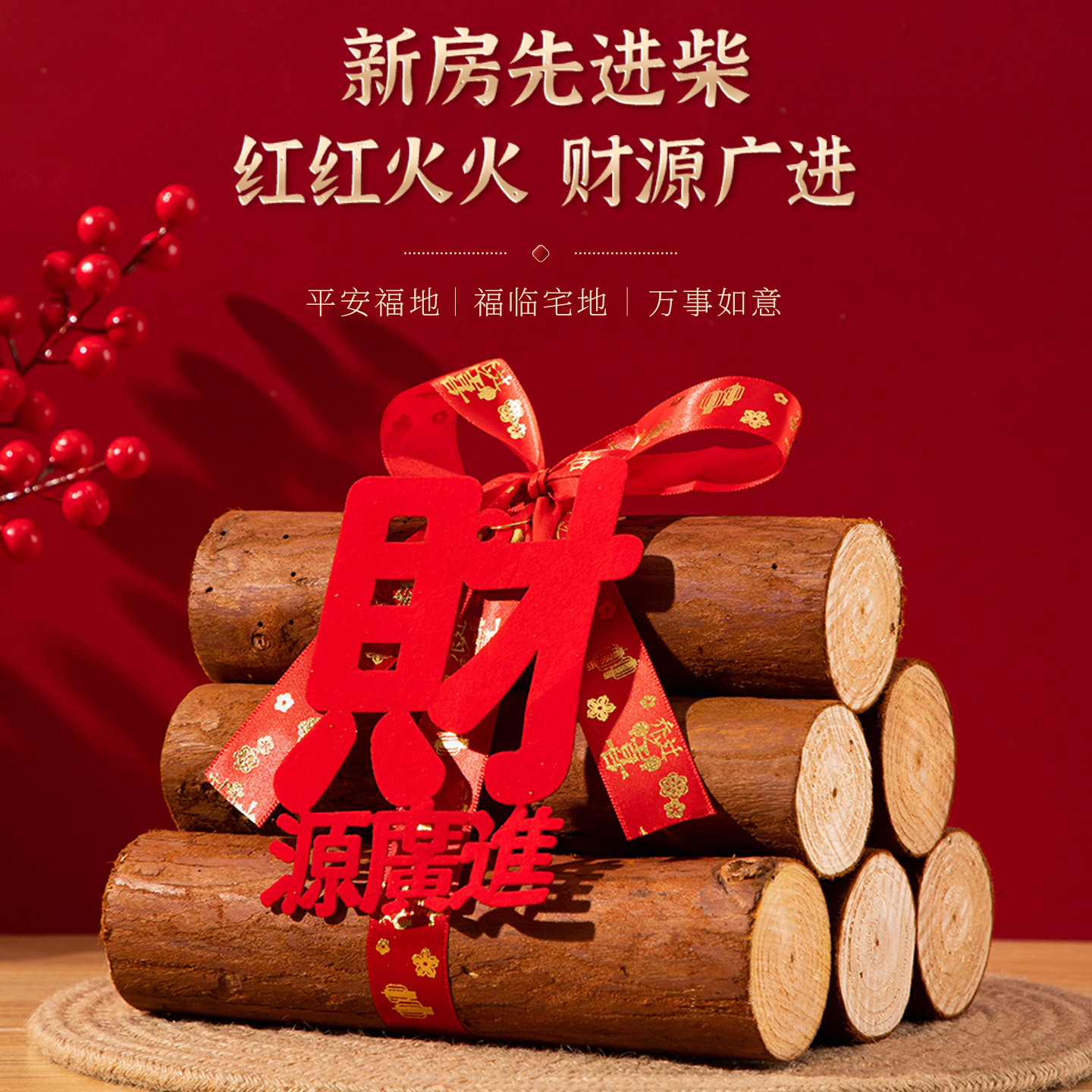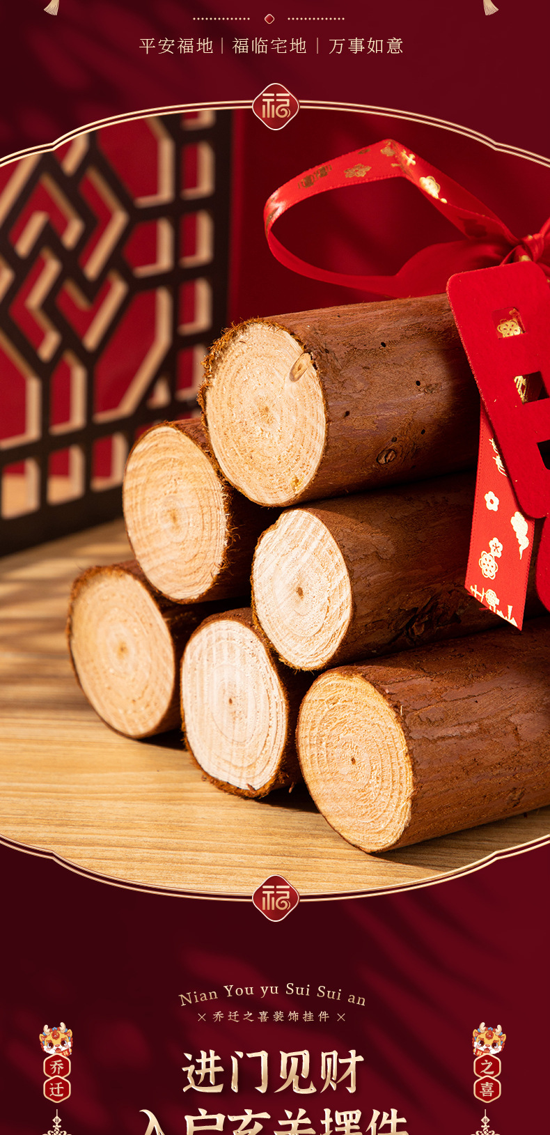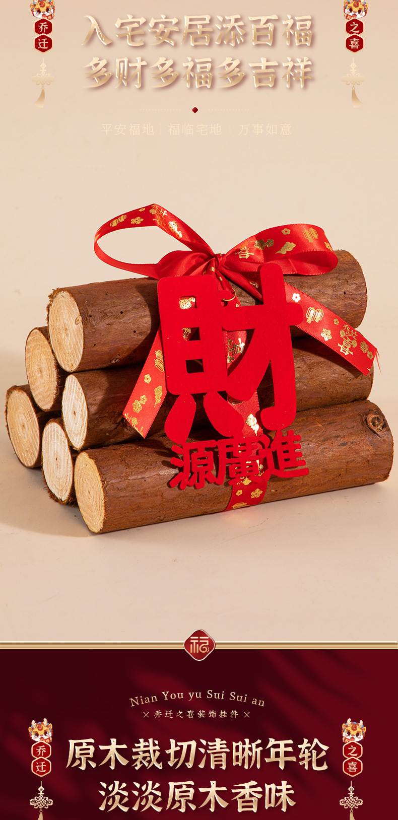 乔迁柴火摆件木材松木装饰搬新家布置新房入宅入户礼物仪式感用品