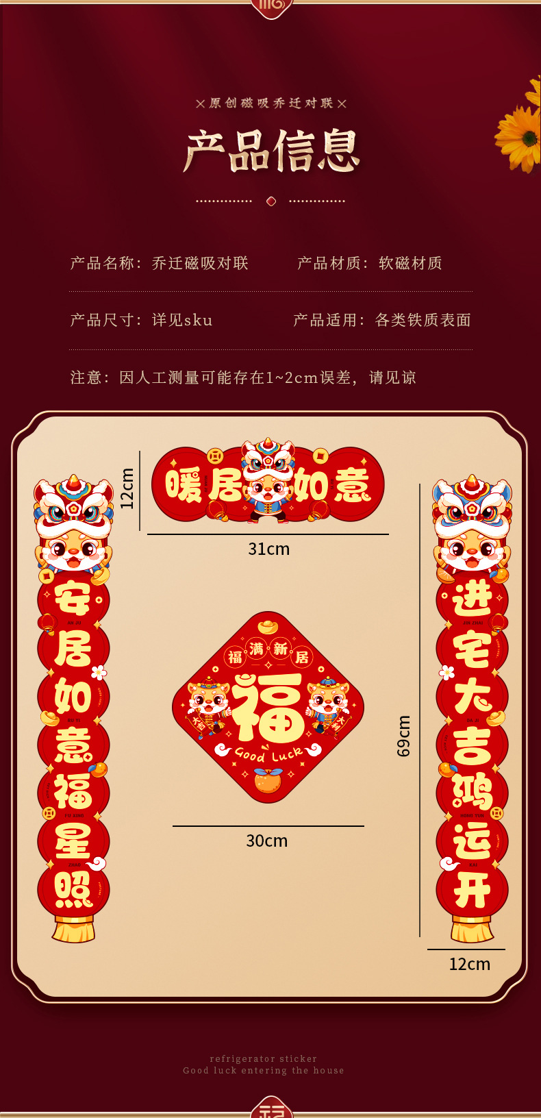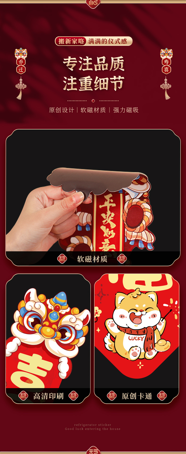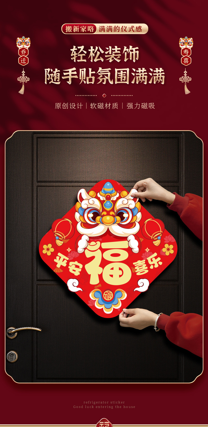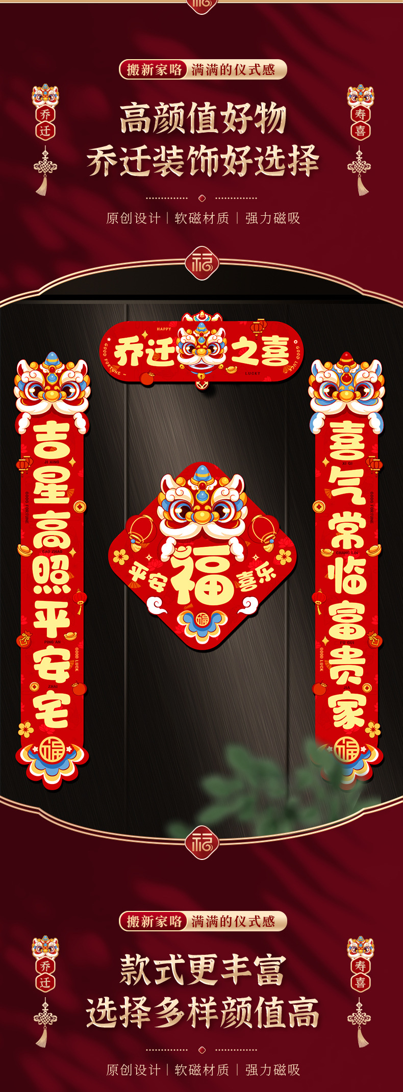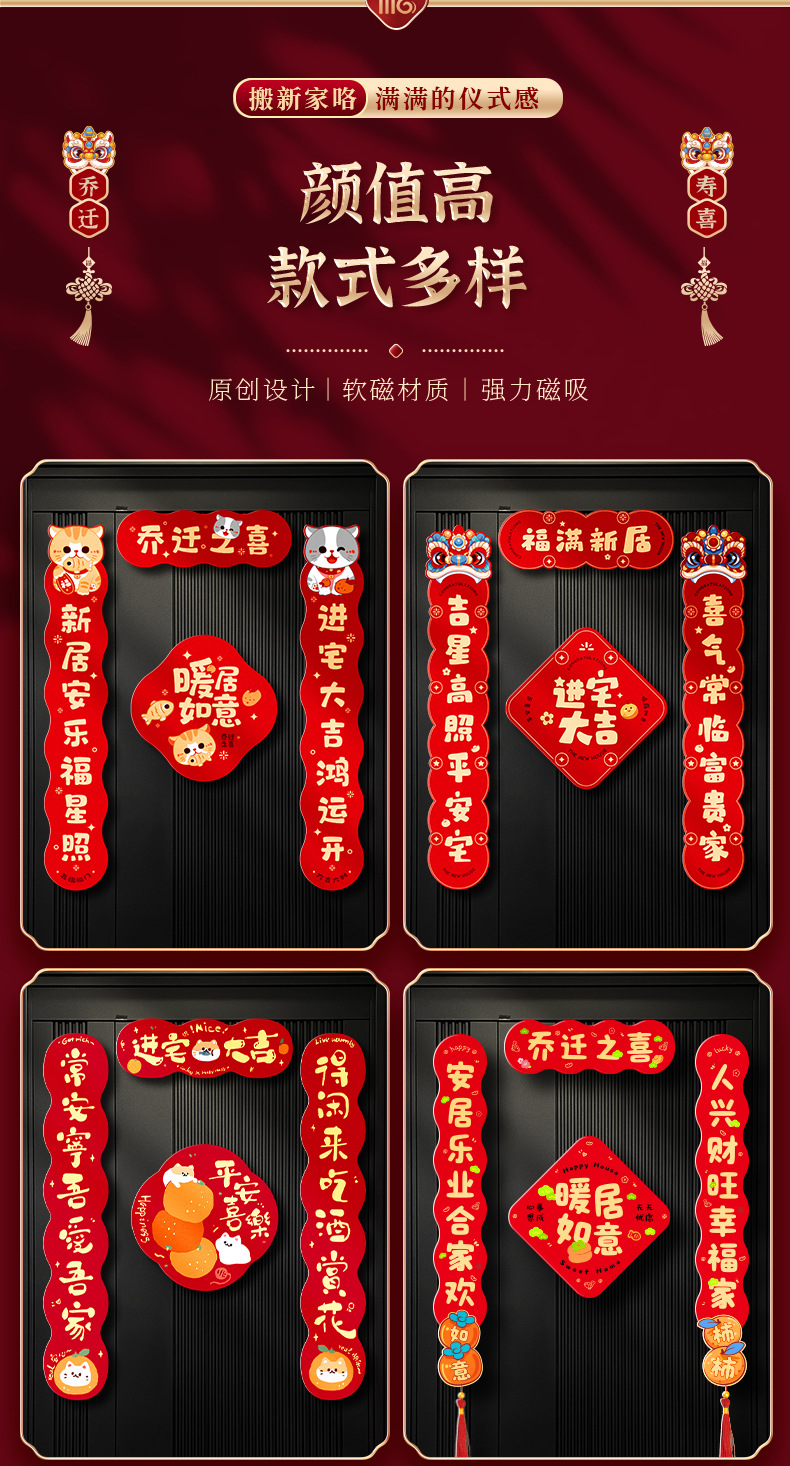 乔迁之喜磁吸对联新居装饰用品新房搬家入宅入户门贴仪式礼物全套