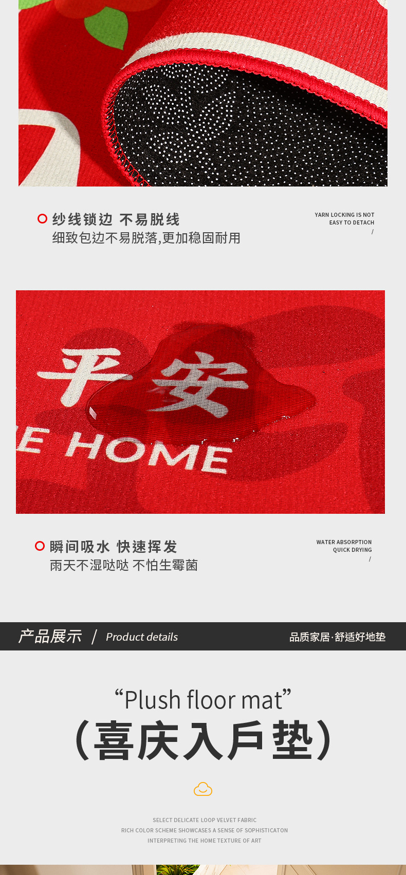进宅大吉入户门地垫乔迁之喜庆进门红地毯门口换鞋脚垫子新居搬家