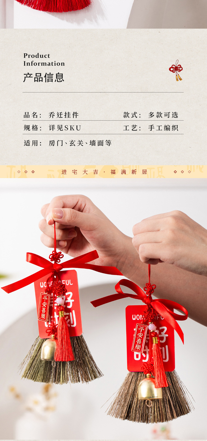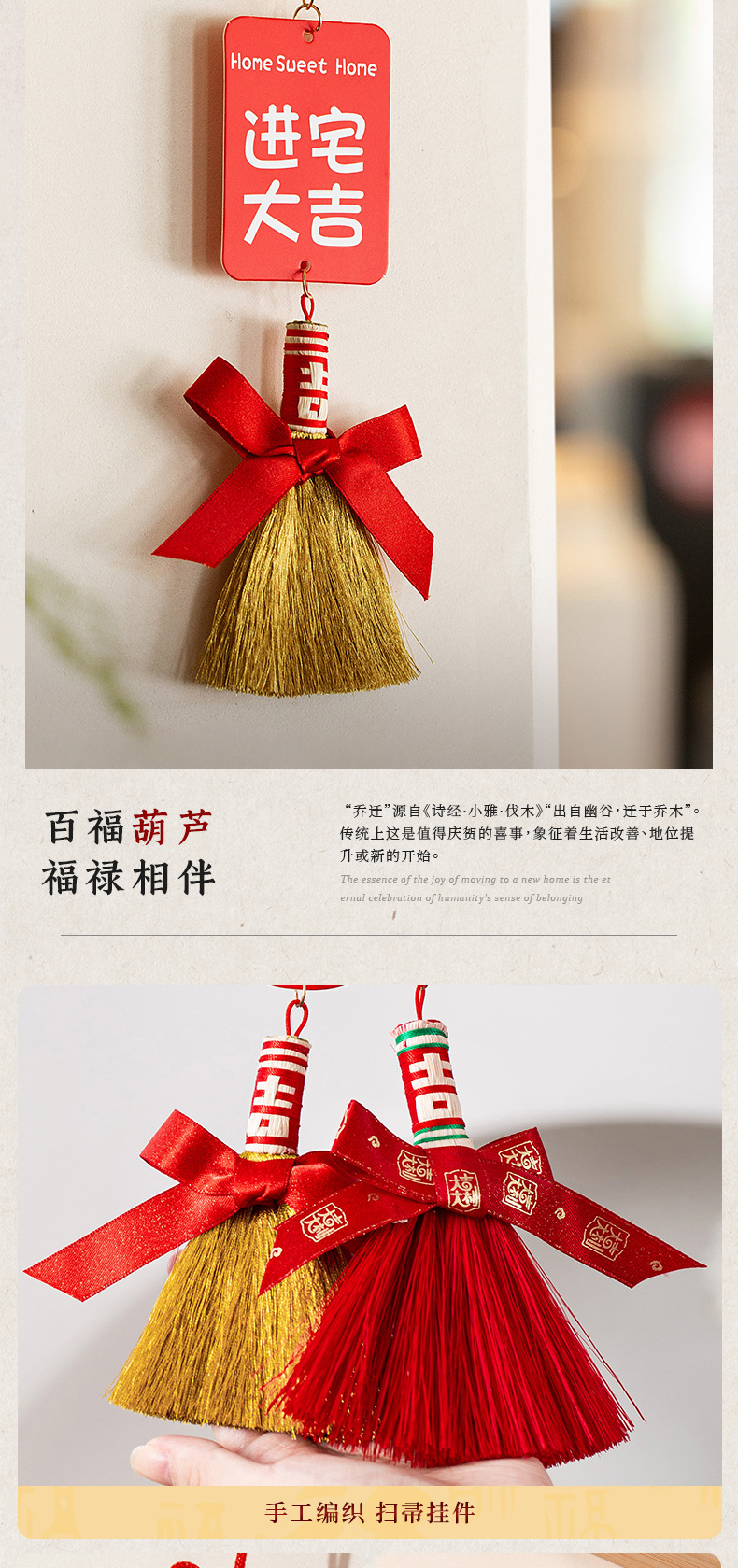 乔迁之喜装饰入户门挂玄关扫帚挂件新房搬家入宅仪式用品礼物全套