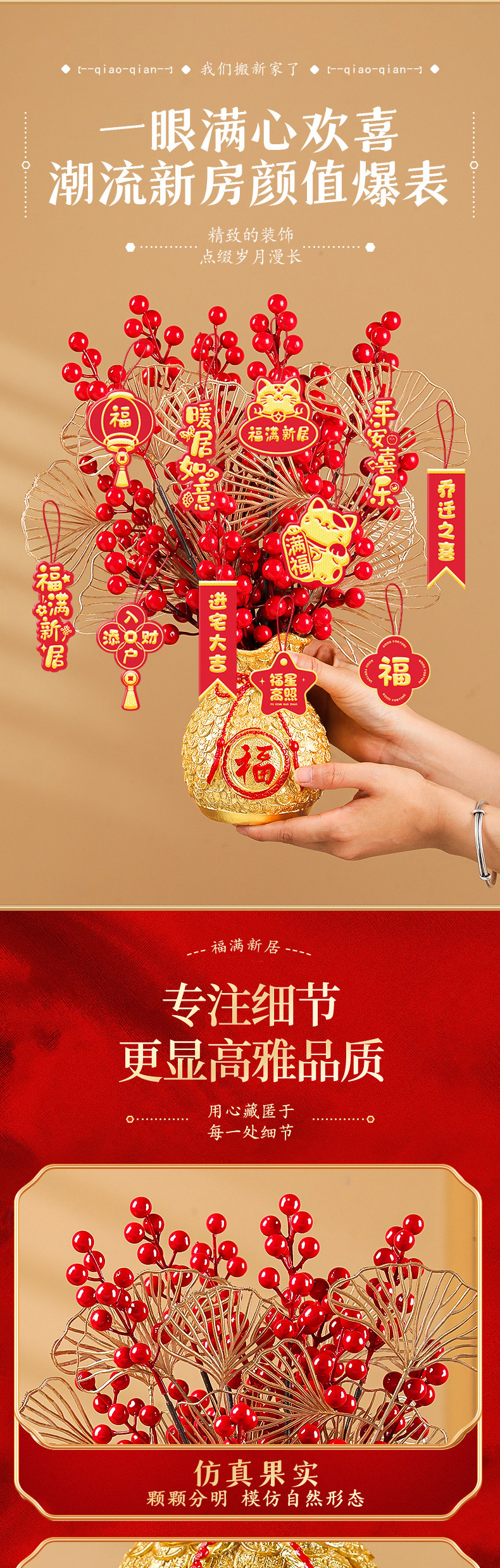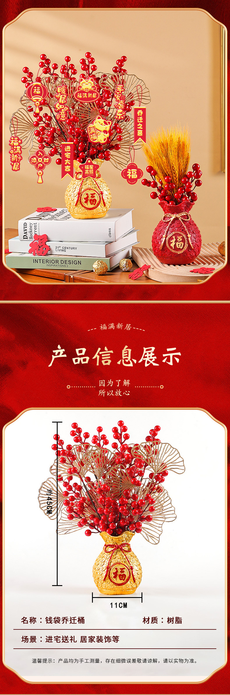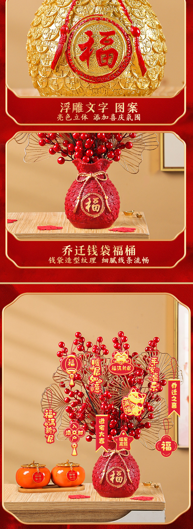 乔迁之喜发财果福袋桶摆件新居装饰搬家仪式新年客厅布置入宅用品