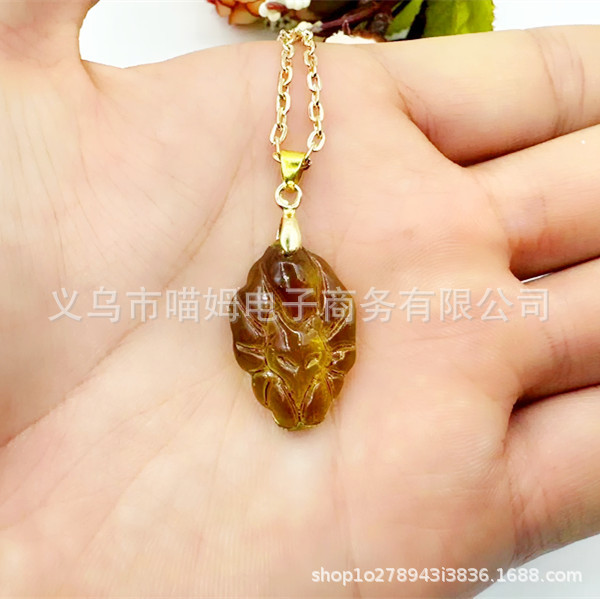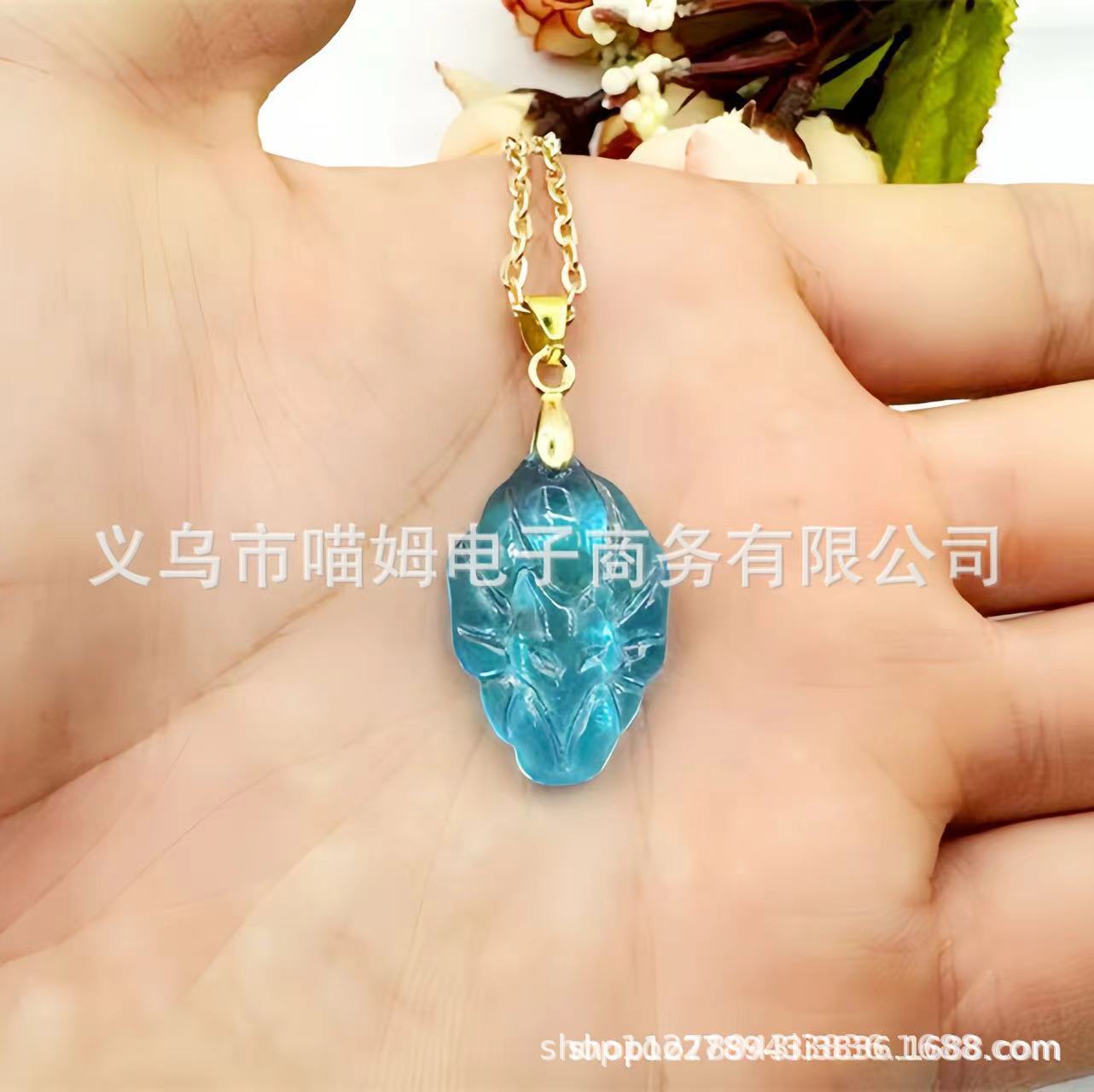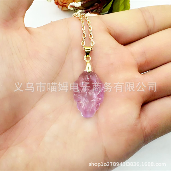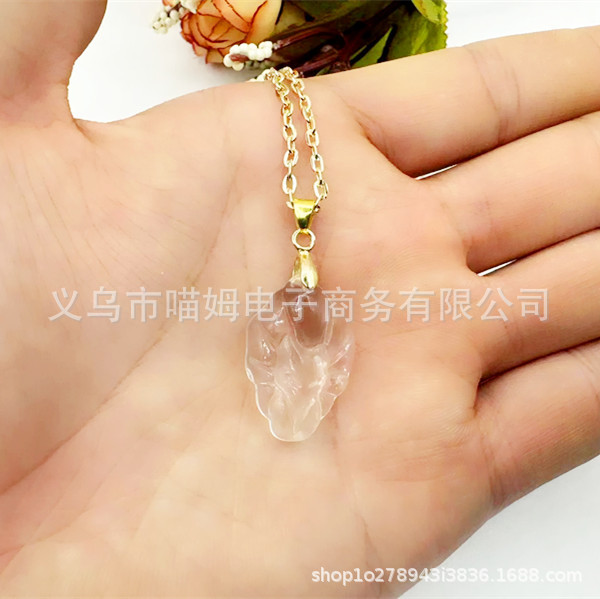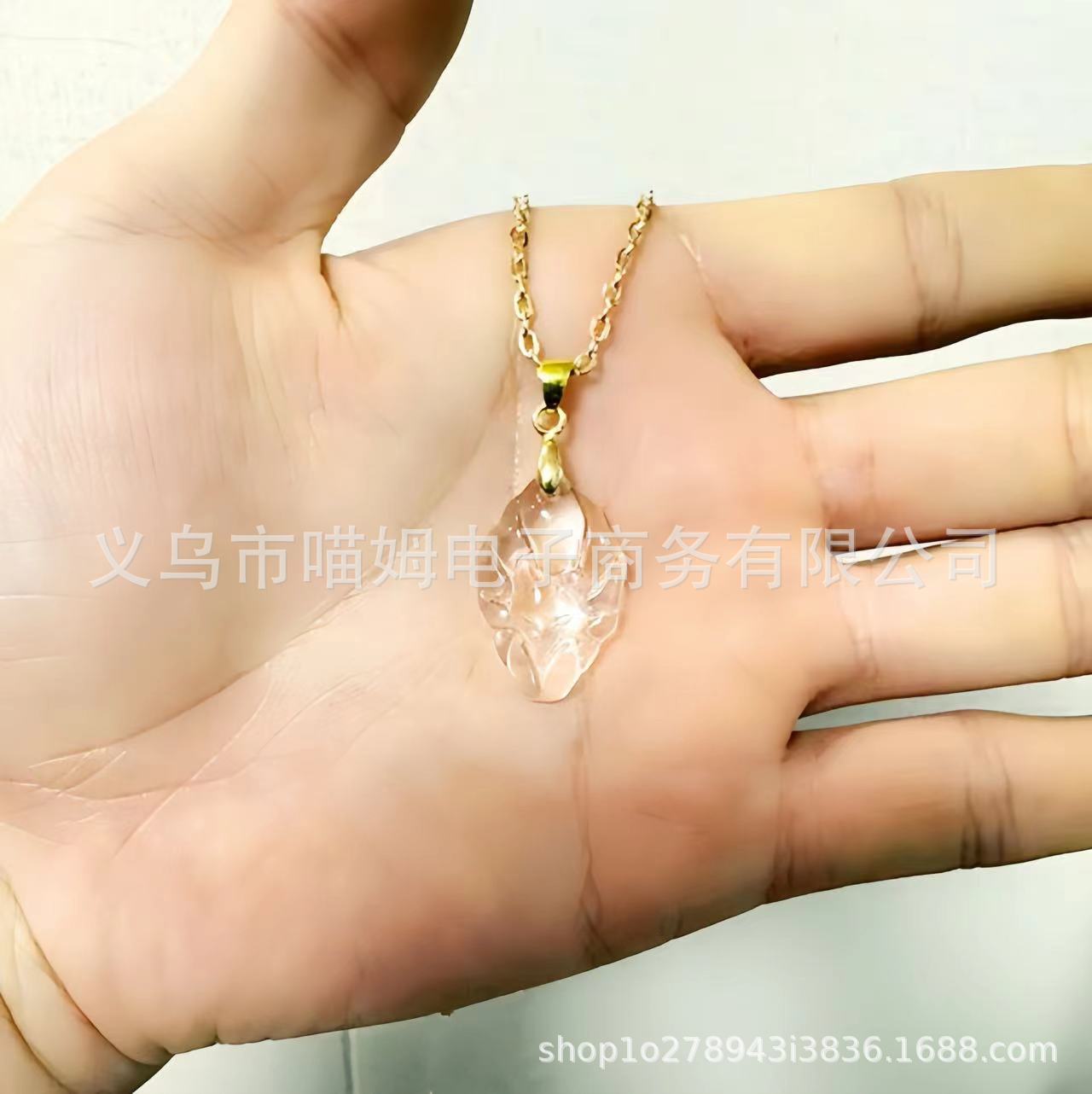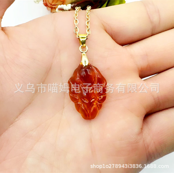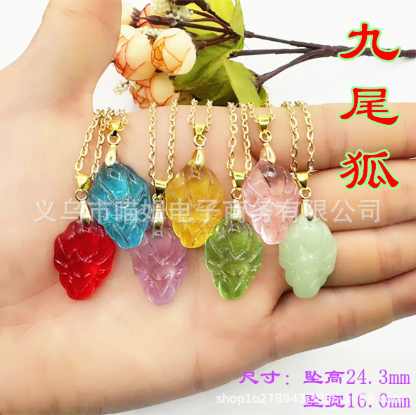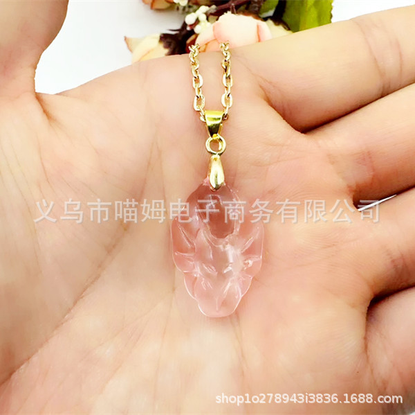 粉晶狐狸吊坠黑曜石九尾狐项链仿玉秋冬款男女百搭长款毛衣链批发