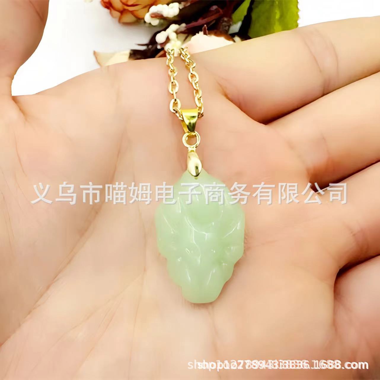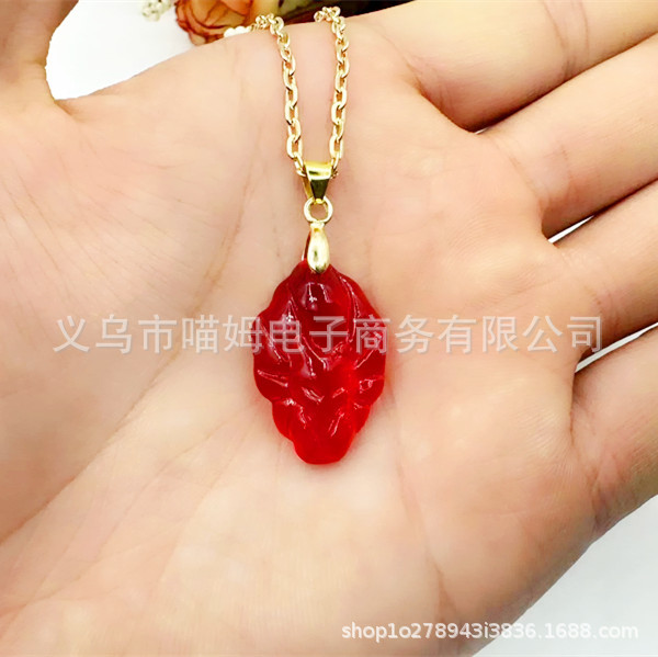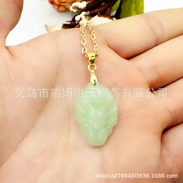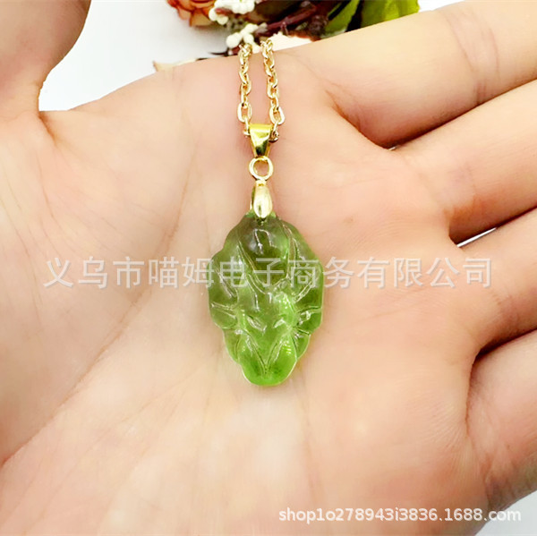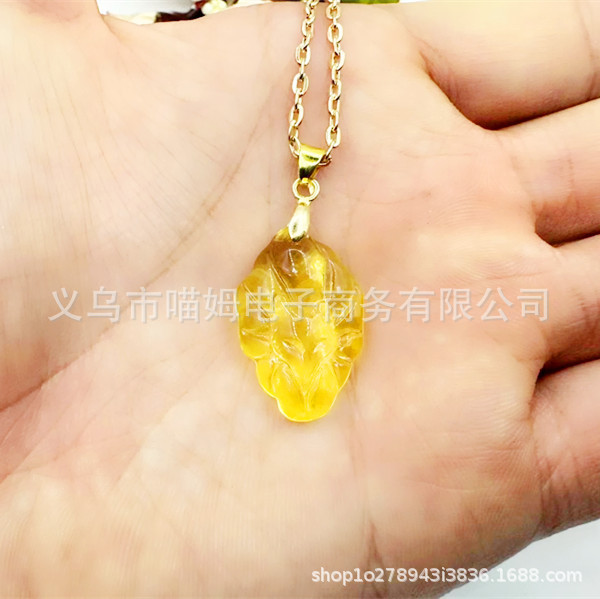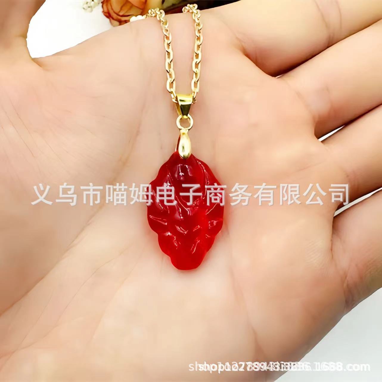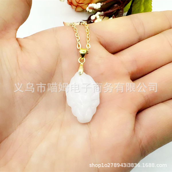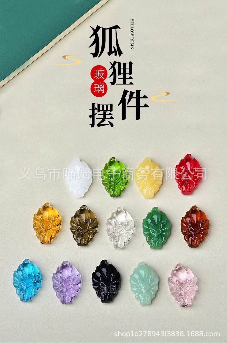 粉晶狐狸吊坠黑曜石九尾狐项链仿玉秋冬款男女百搭长款毛衣链批发