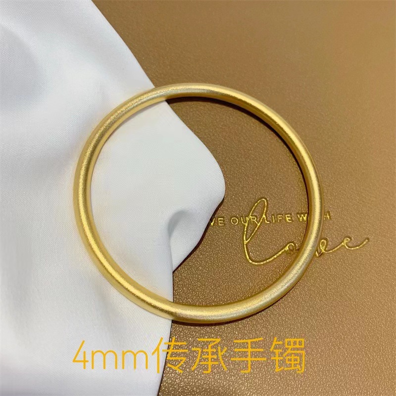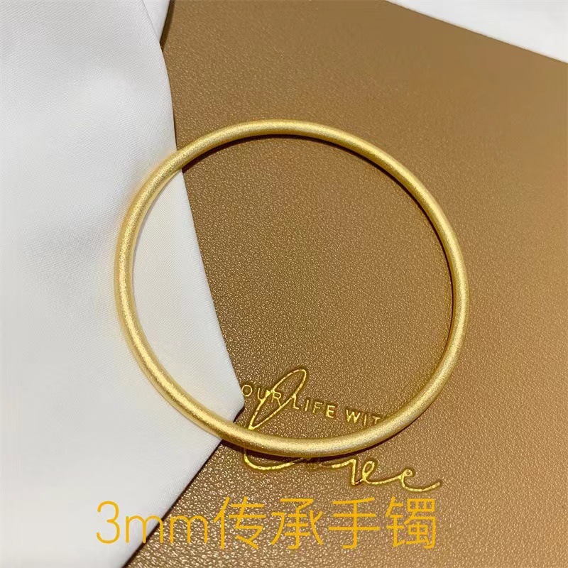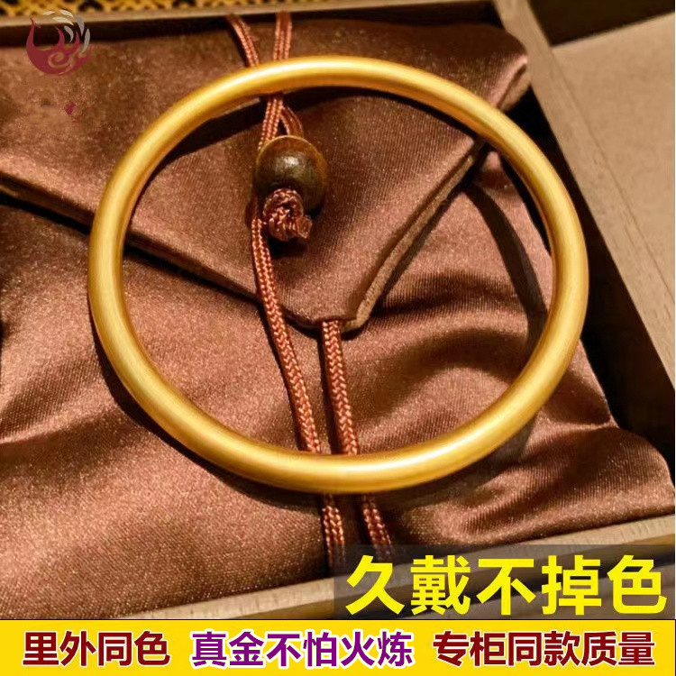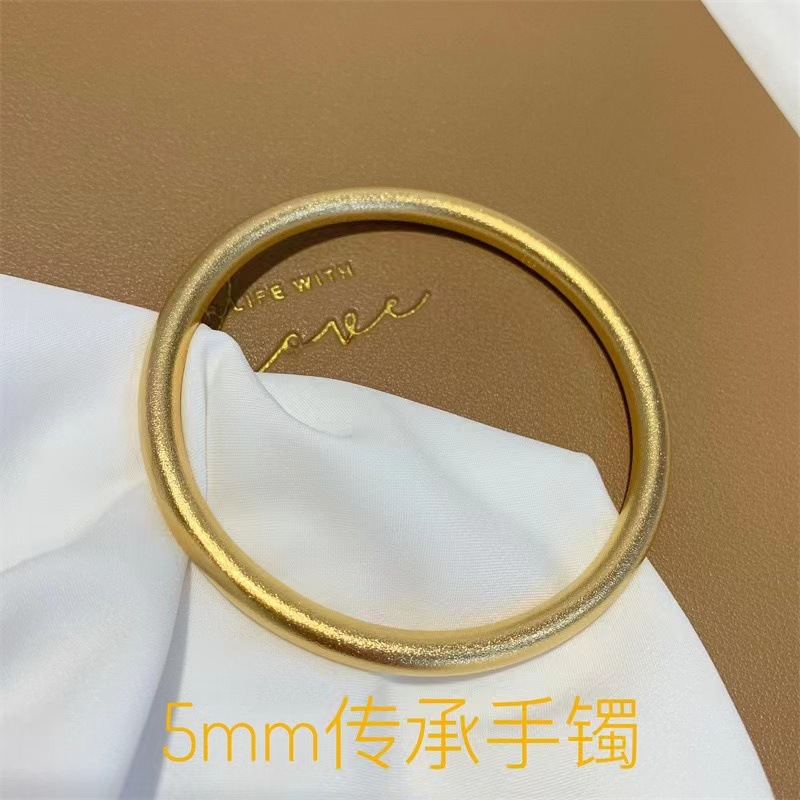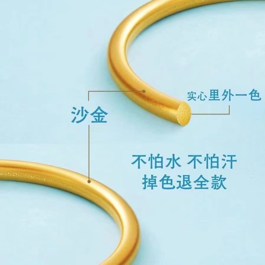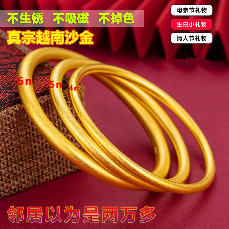 越南沙金手镯古法传承女小红书同款仿黄金磨砂素圈手环镯子不掉色