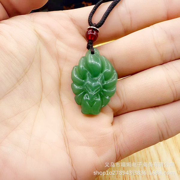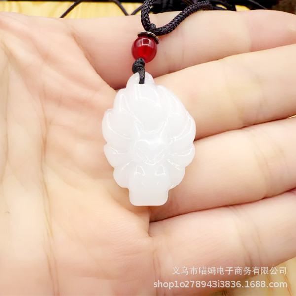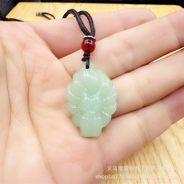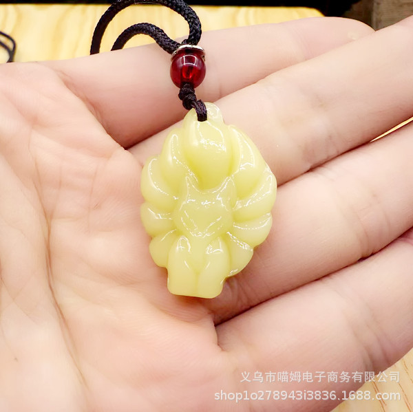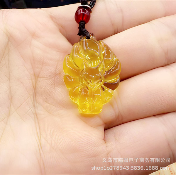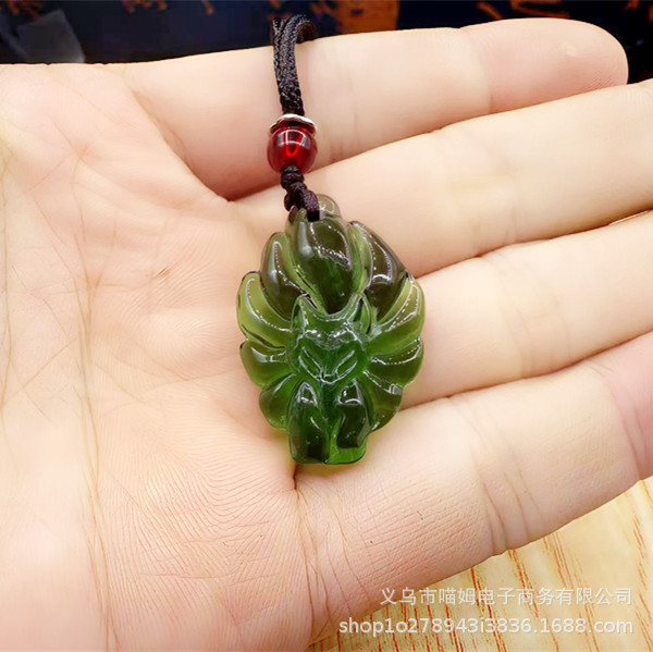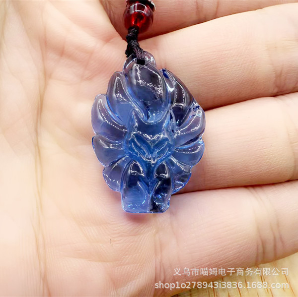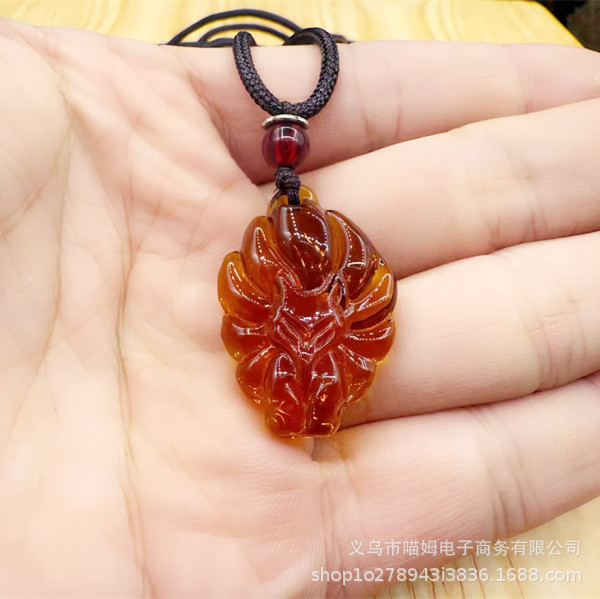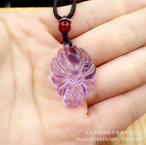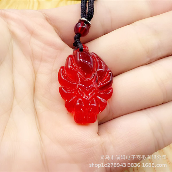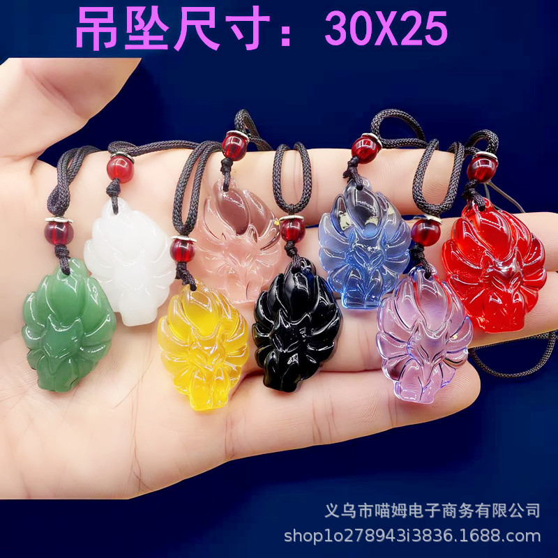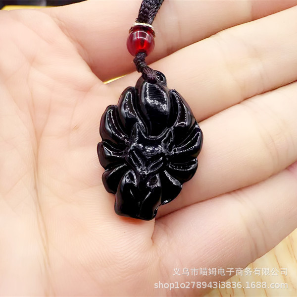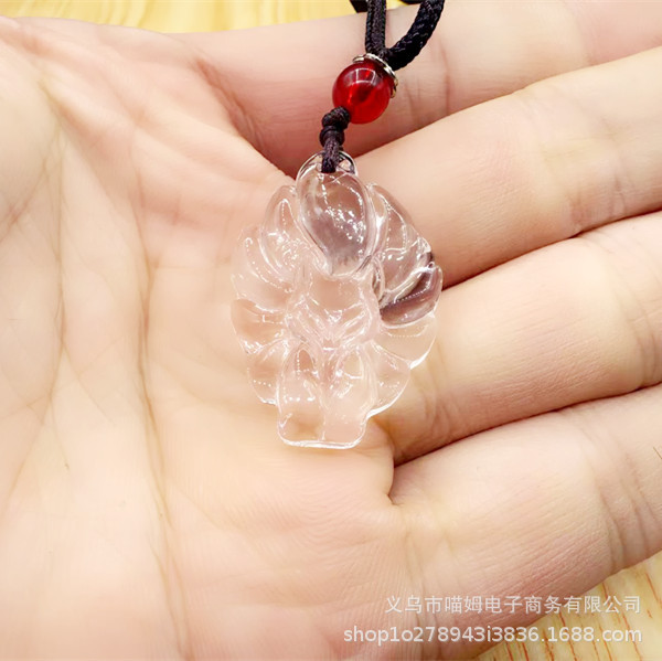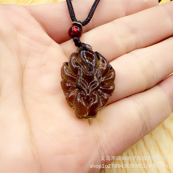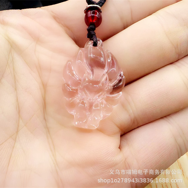 粉晶狐狸吊坠黑曜石九尾狐项链仿玉秋冬款男女百搭长款毛衣链批发