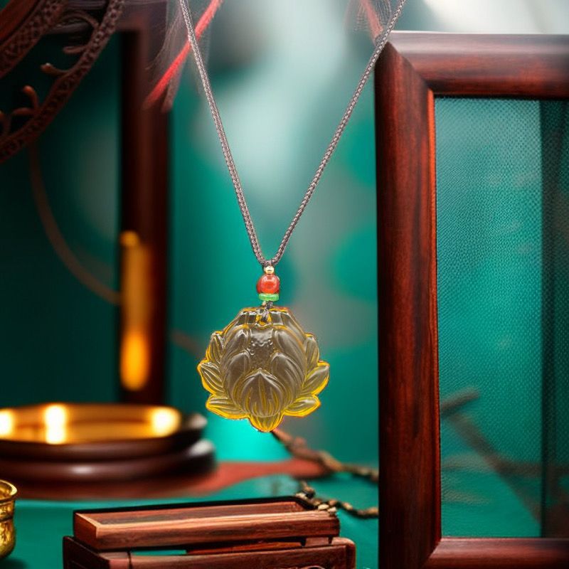 复古莲花吊坠女款民族文艺荷花项链挂饰莲花批发古法