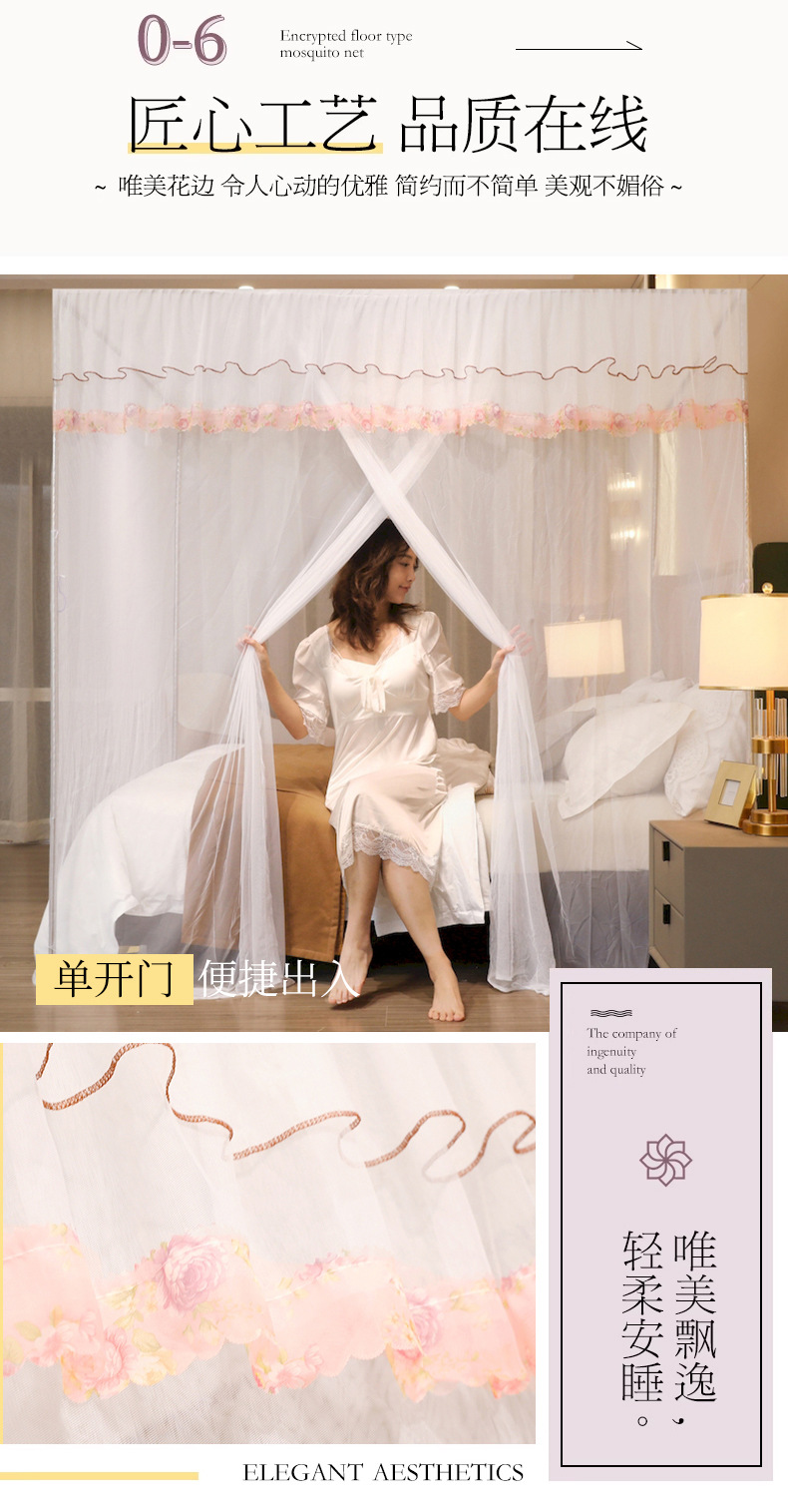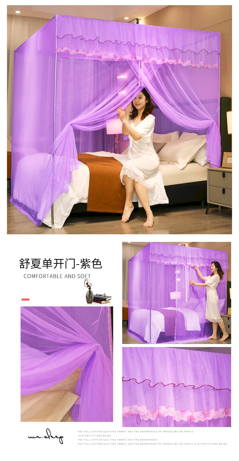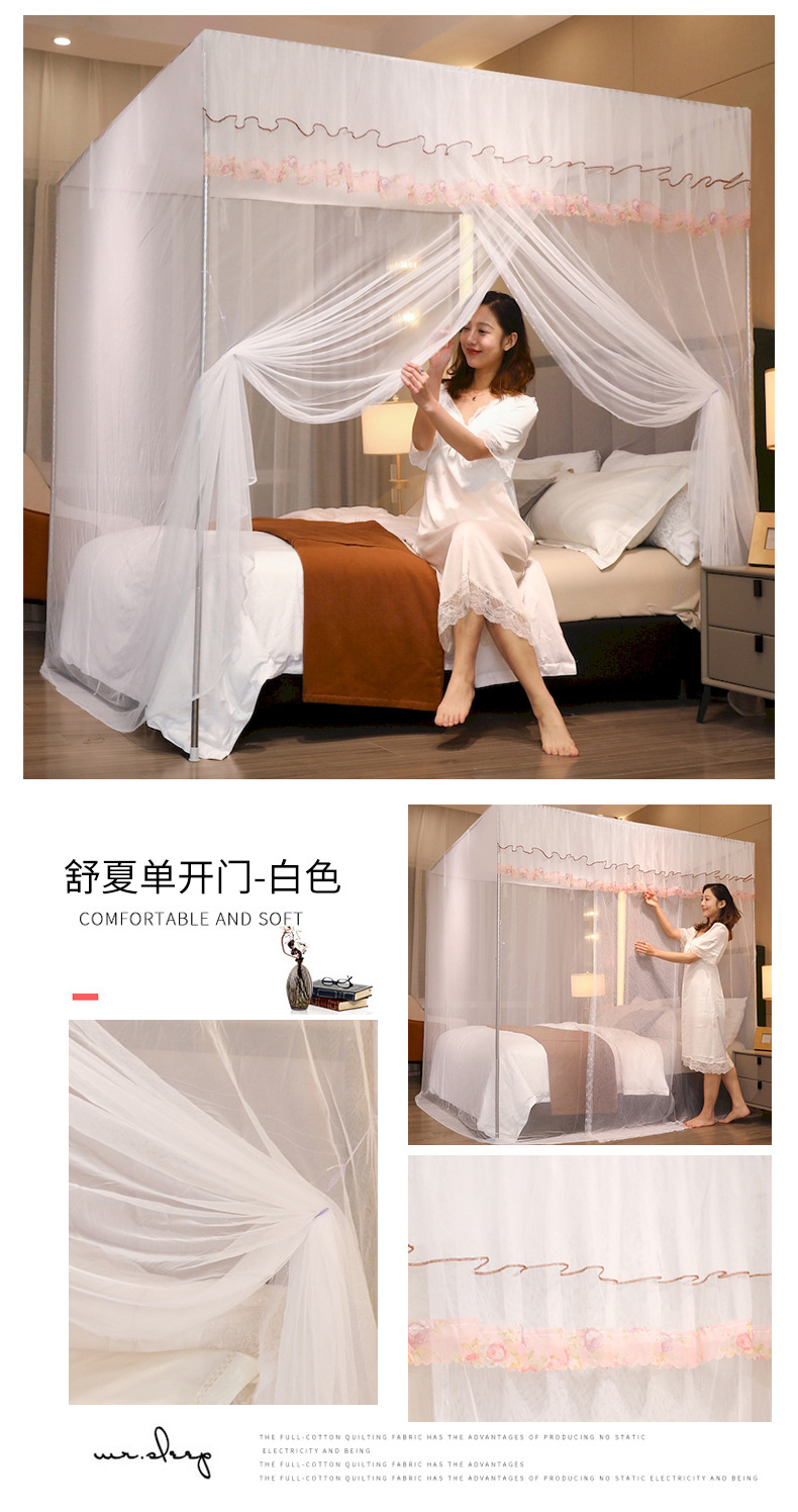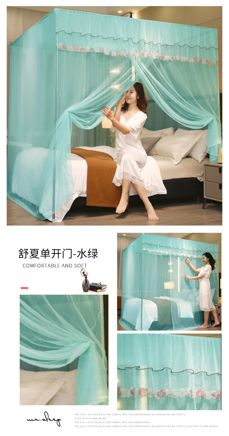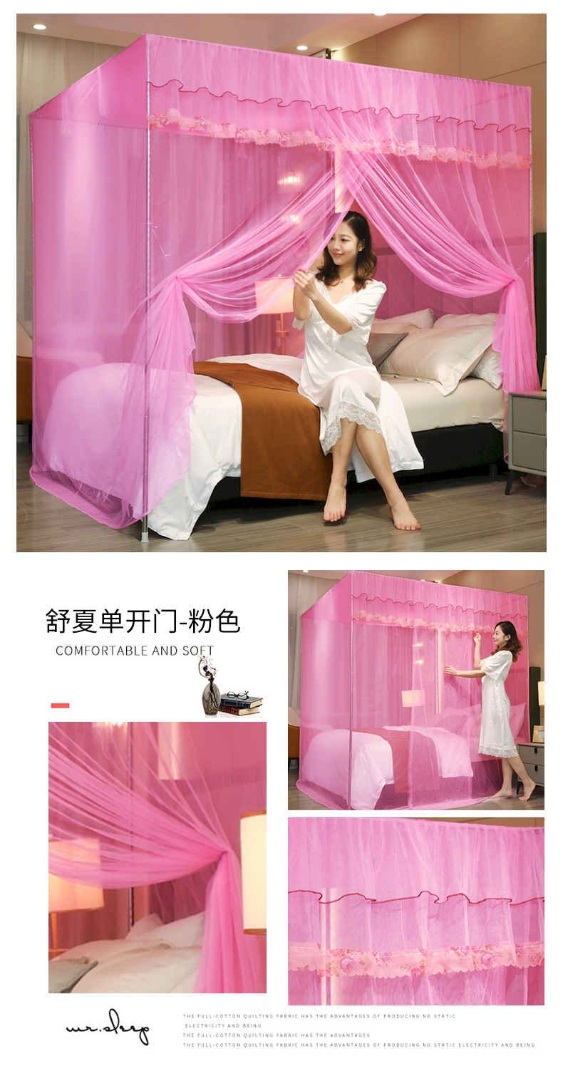 跨境外贸单开门蚊帐加密新款落地简约风家居卧室帐纱新款带支架