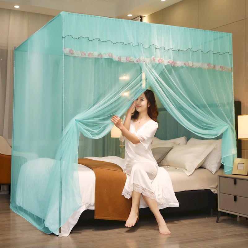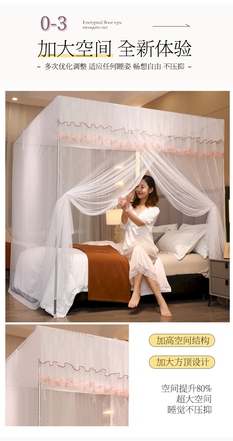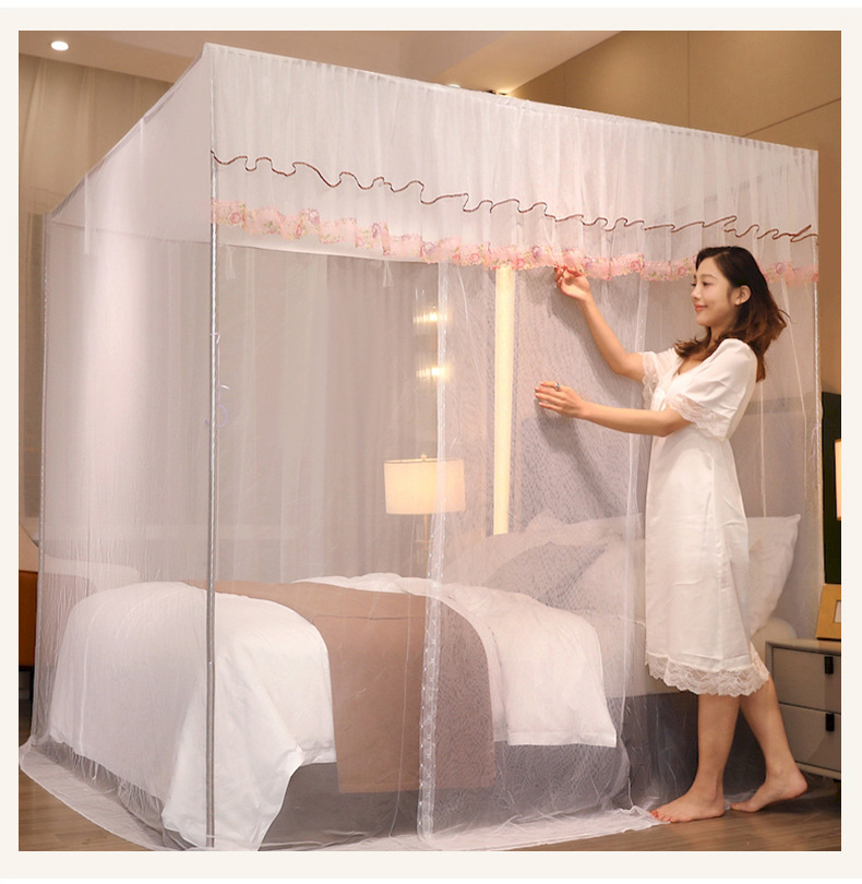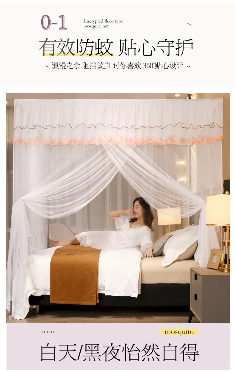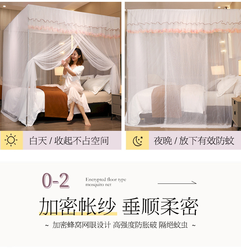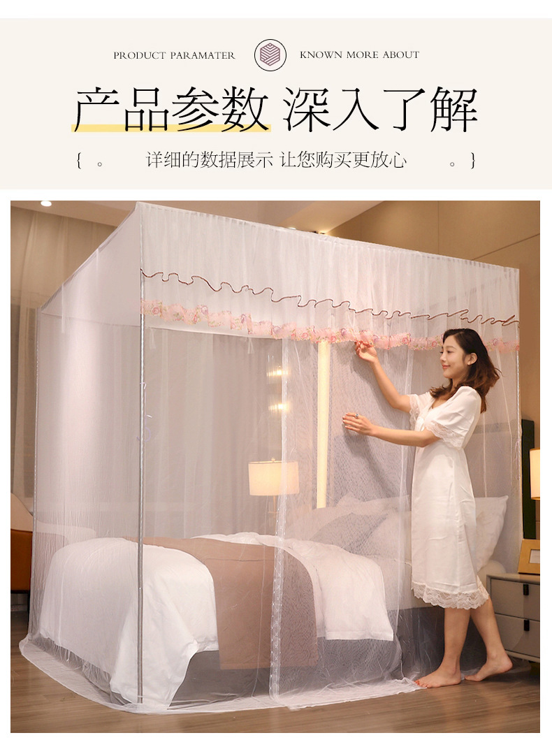 跨境外贸单开门蚊帐加密新款落地简约风家居卧室帐纱新款带支架