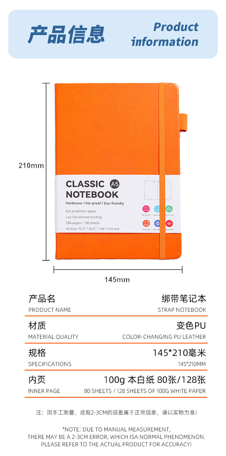跨境亚马逊A5会议办公本记事本子贴芯绑带本学生手账本笔记本
