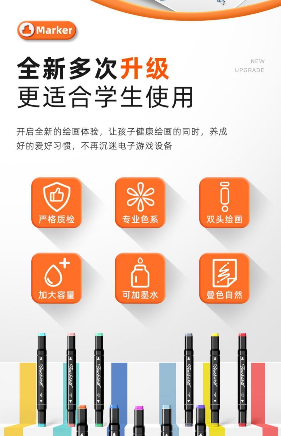 touch油性马克笔24色美术专用儿童36/48色双头水彩笔小学生画画笔