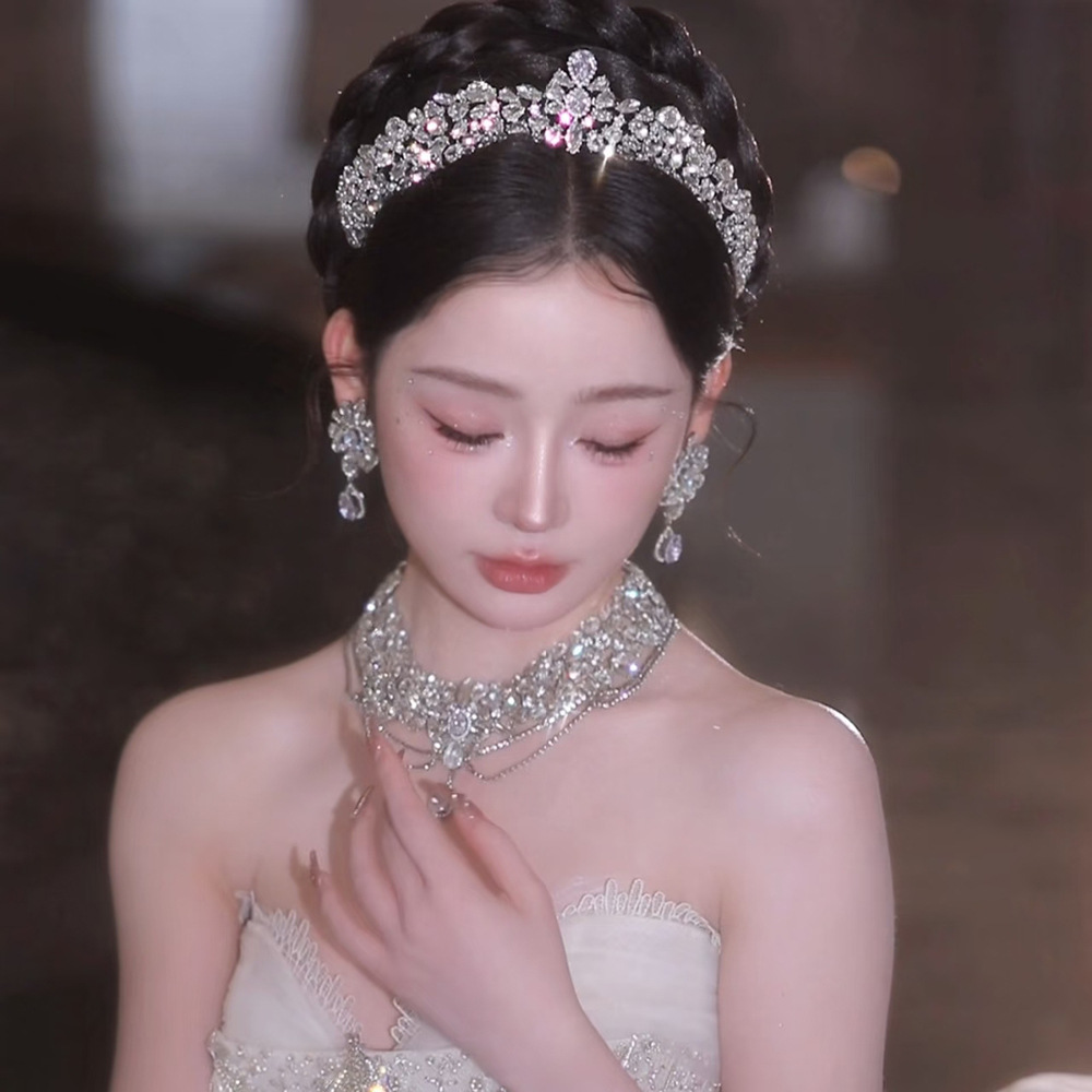 韩式简约新娘皇冠套装新款高级感大气轻奢主婚纱甜美减龄百搭王冠