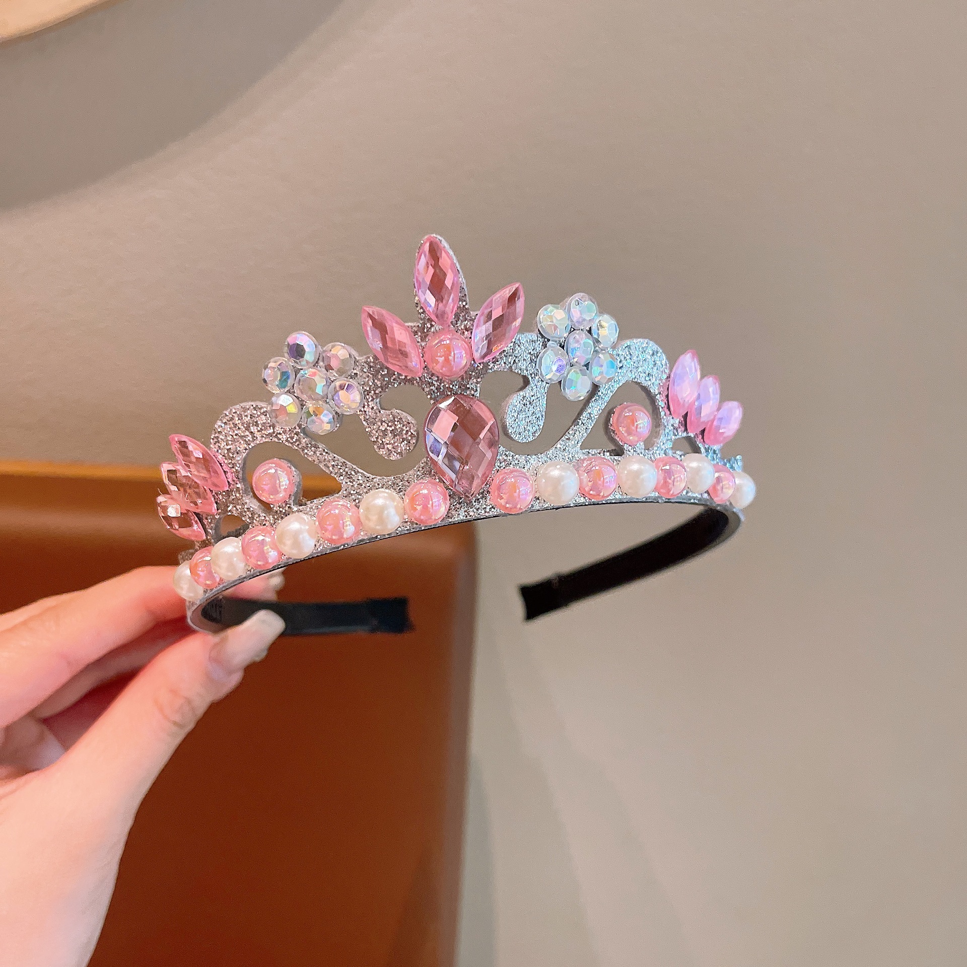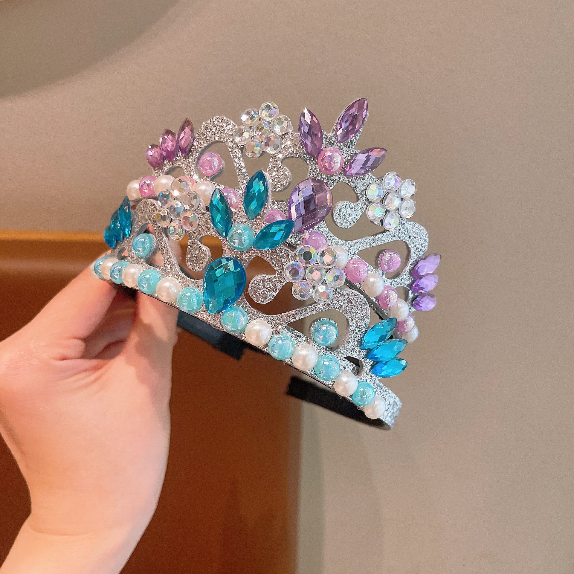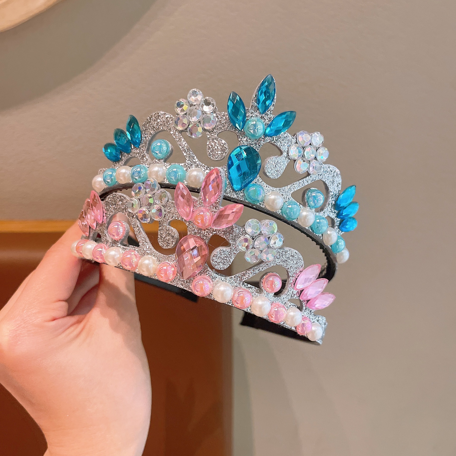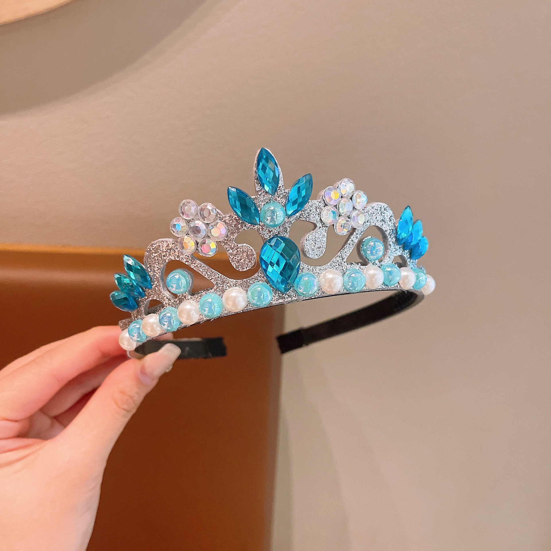 厂家现货冰雪公主粉色皇冠儿童简约闪亮钻发箍女童蓝色服装配饰品