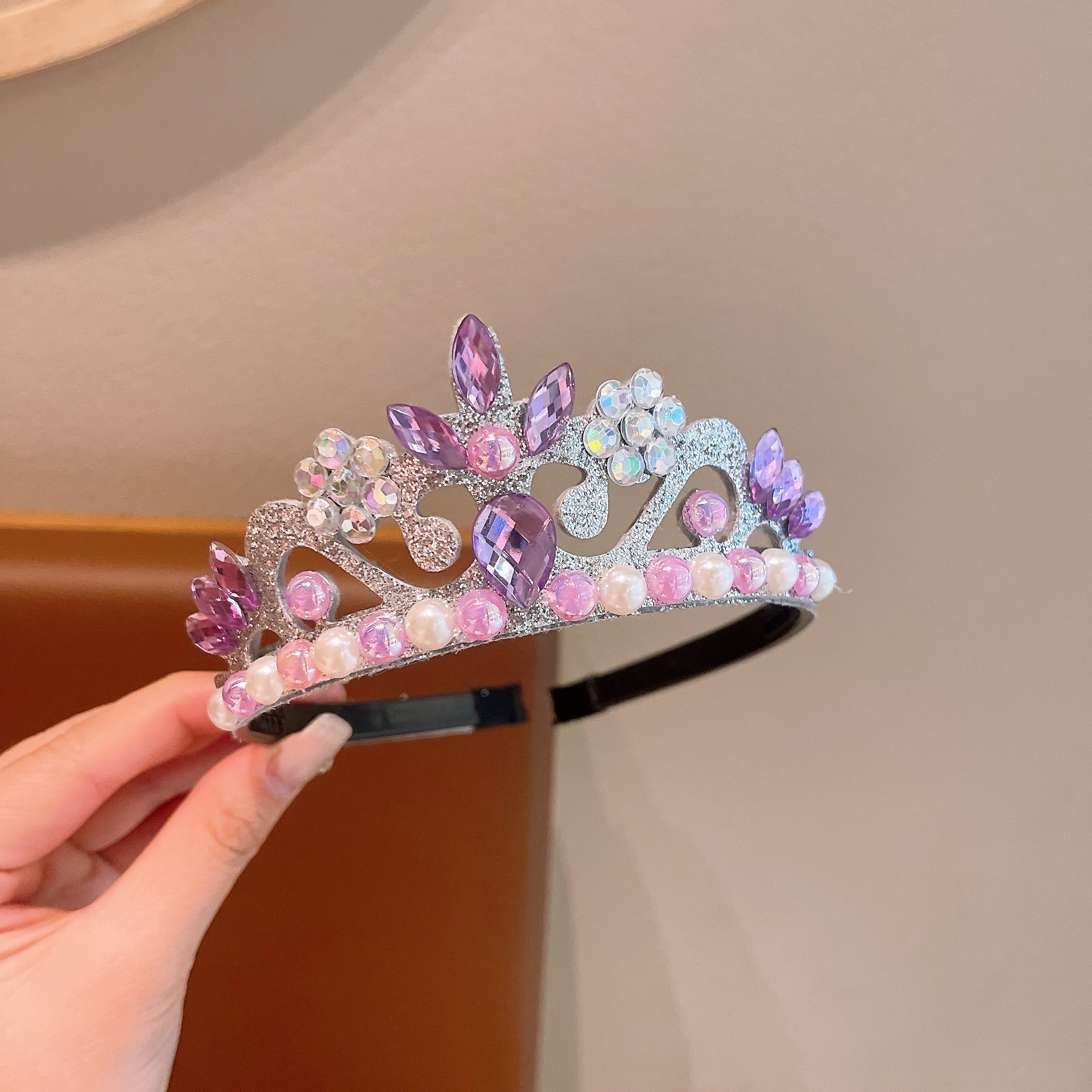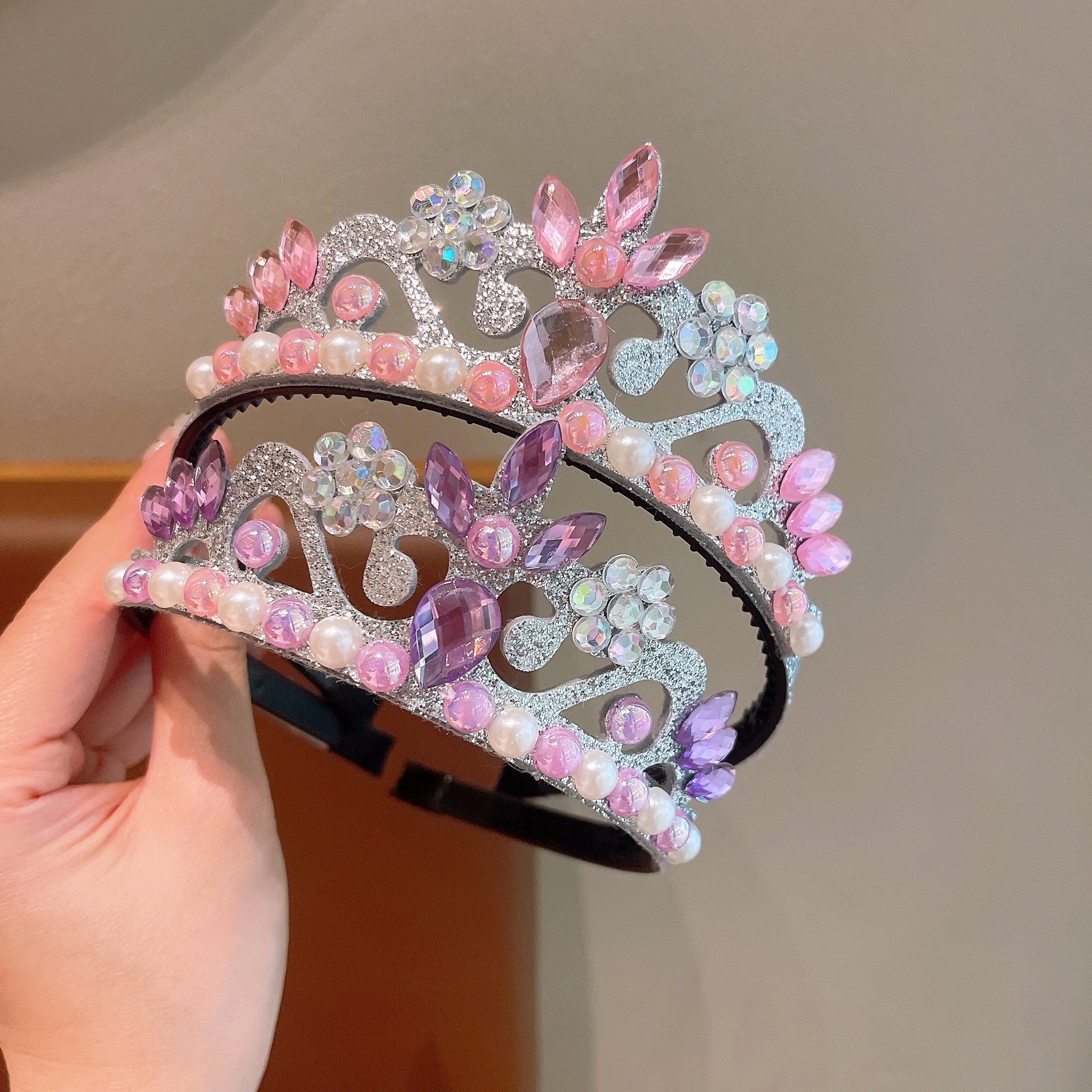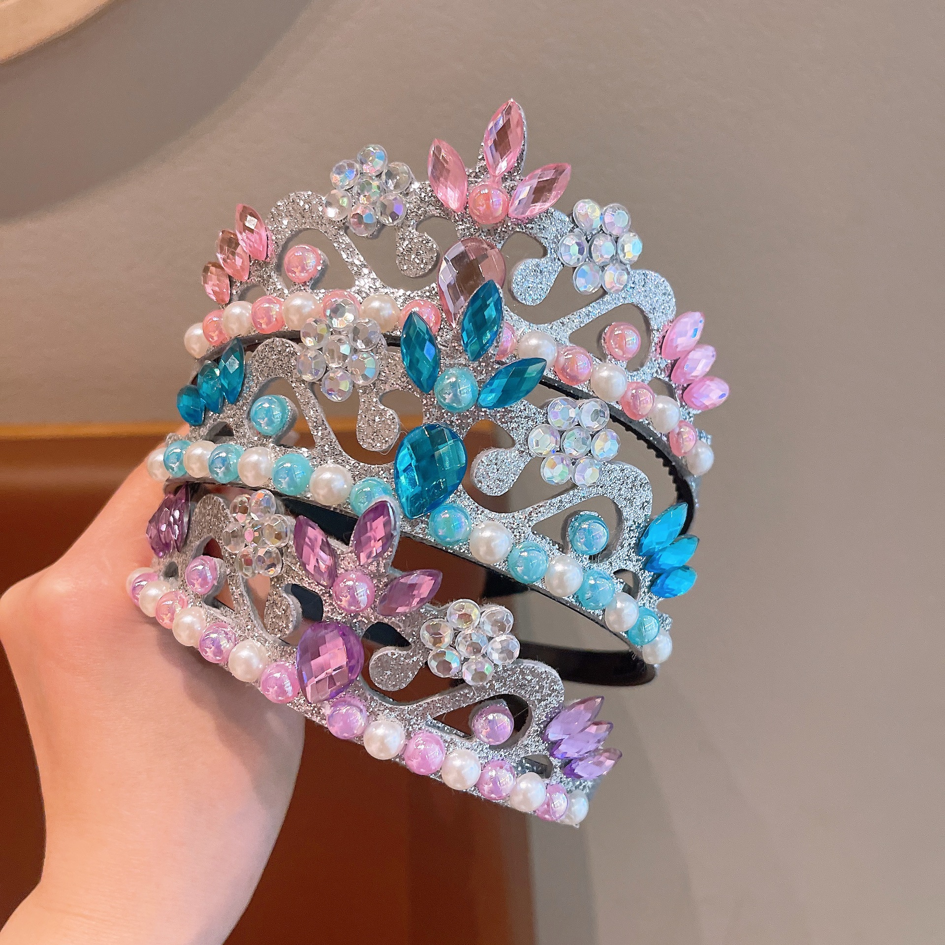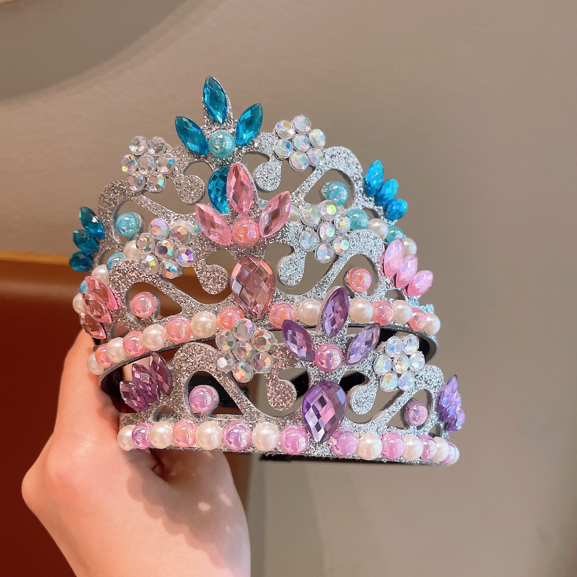 厂家现货冰雪公主粉色皇冠儿童简约闪亮钻发箍女童蓝色服装配饰品
