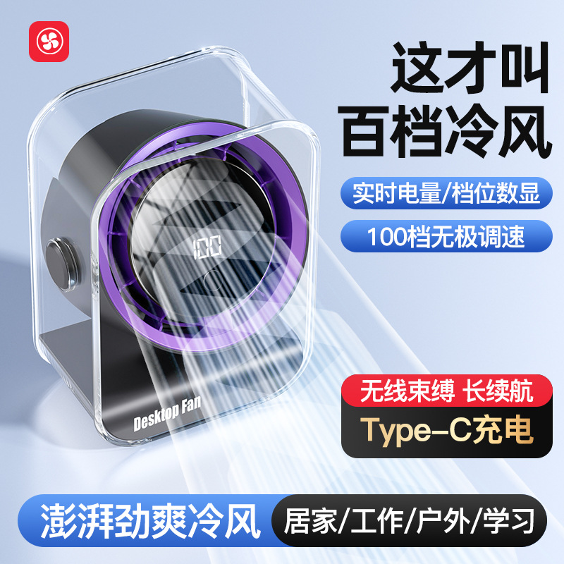 2026新款桌面风扇智能循环扇家用办公桌面电风扇充电小型台式风扇