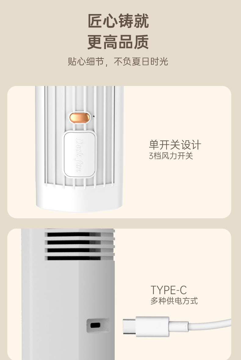 严选爆款2025新款桌面风扇办公室学生宿舍大风力长续航跨境电风扇