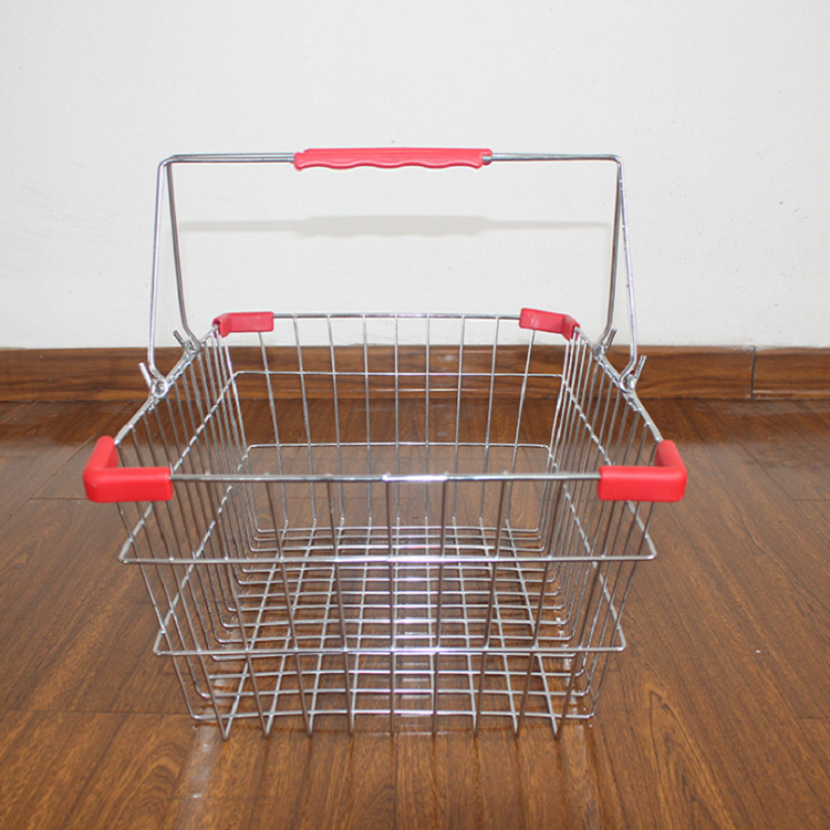 超市金属购物篮 精品店专用铁丝双手柄购物篮 镀铬购物篮 直销