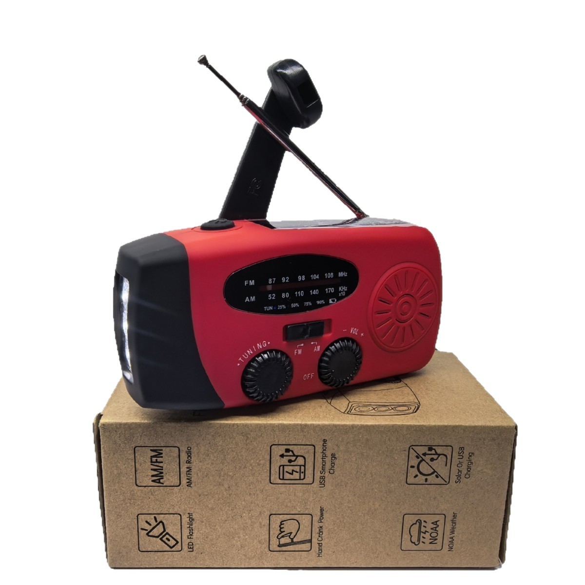 | Wholesale Rechargeable Hand Crank Emergency Weather Radio & Flashlight with 2000mAh Power Bank Solar Panel ABS Material |