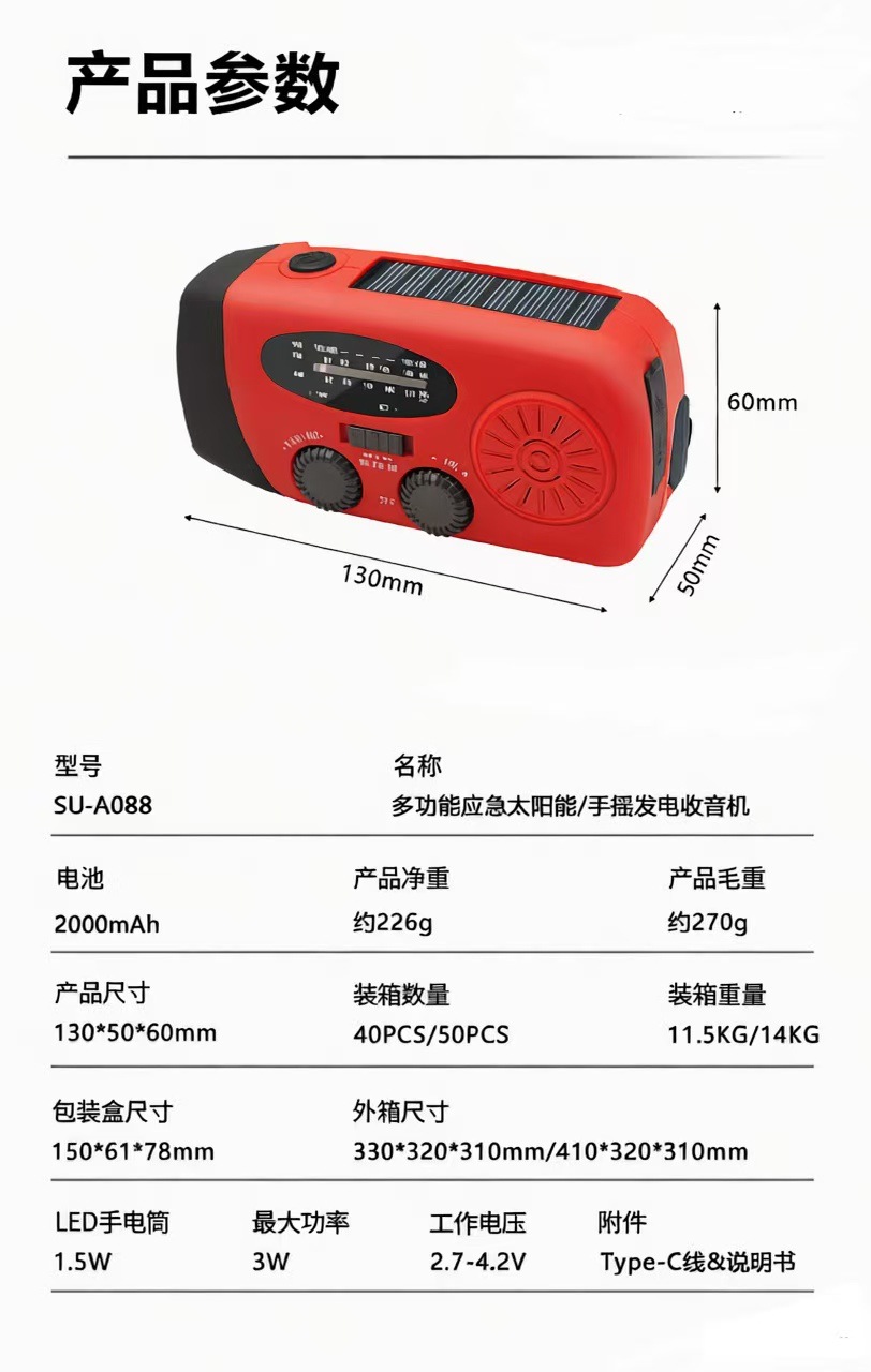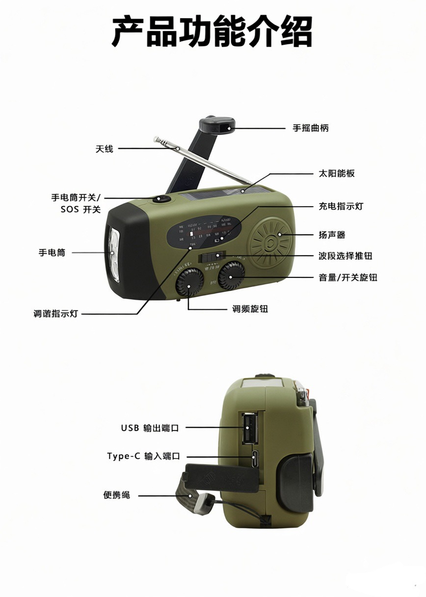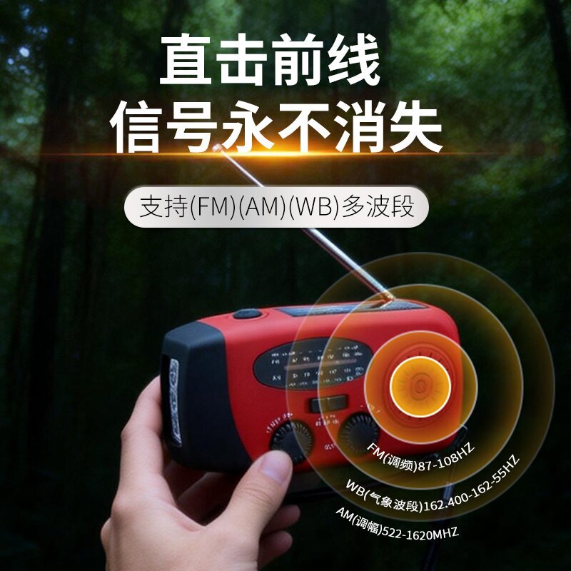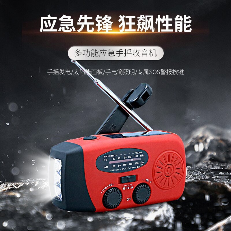 手摇发电太阳能应急收音机 三波段FM/AM/WB 防灾战备多功能收音机